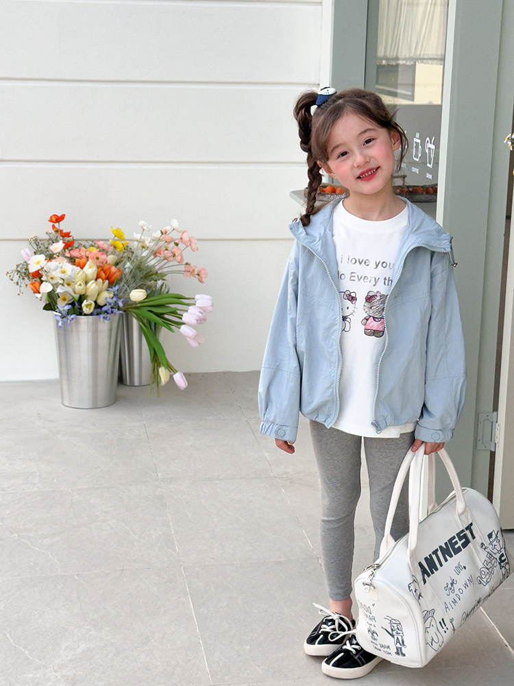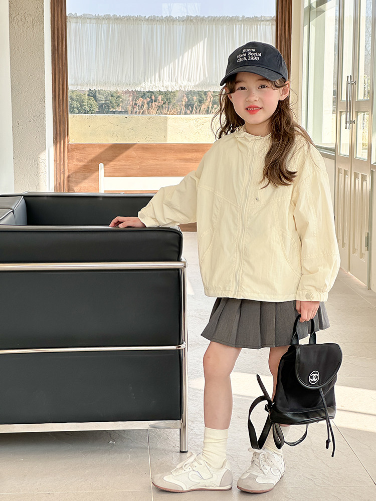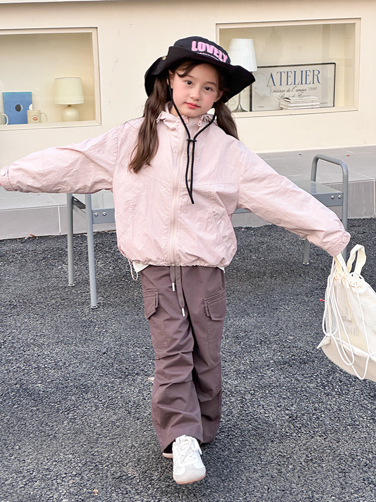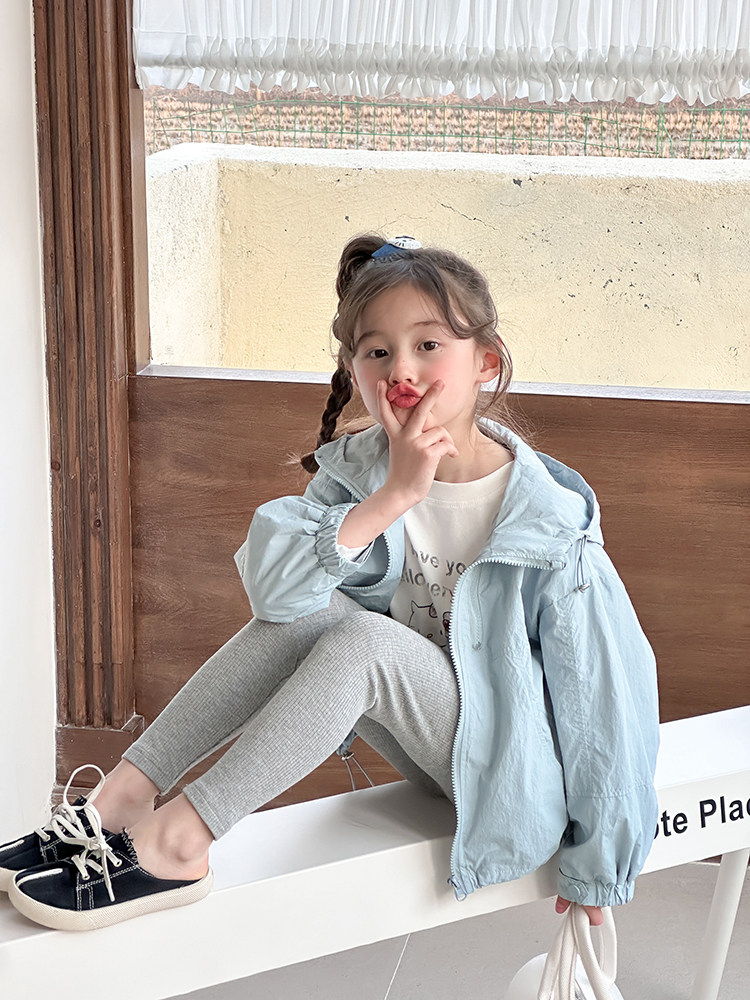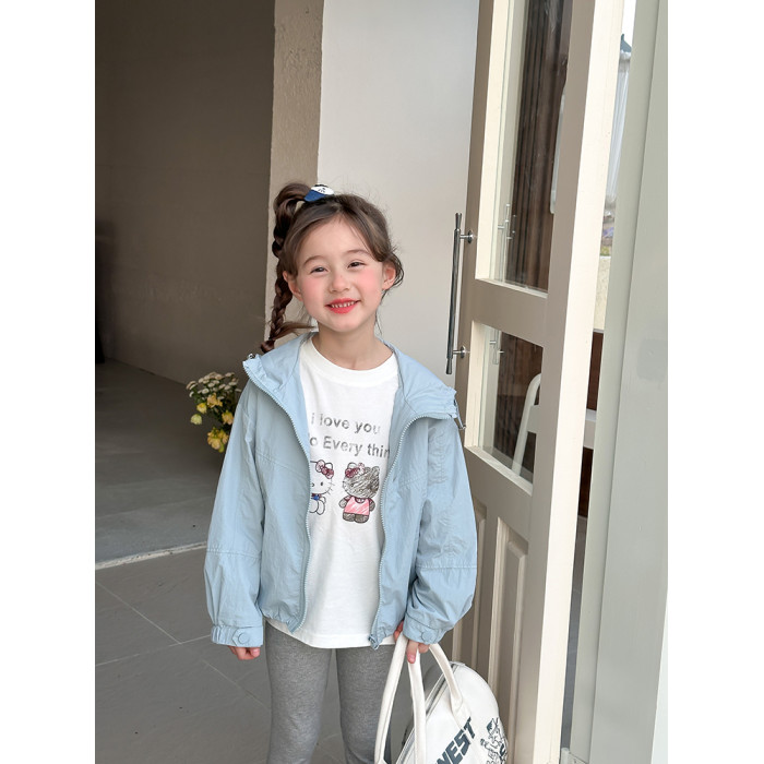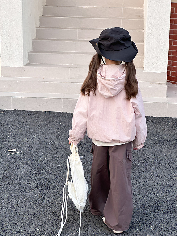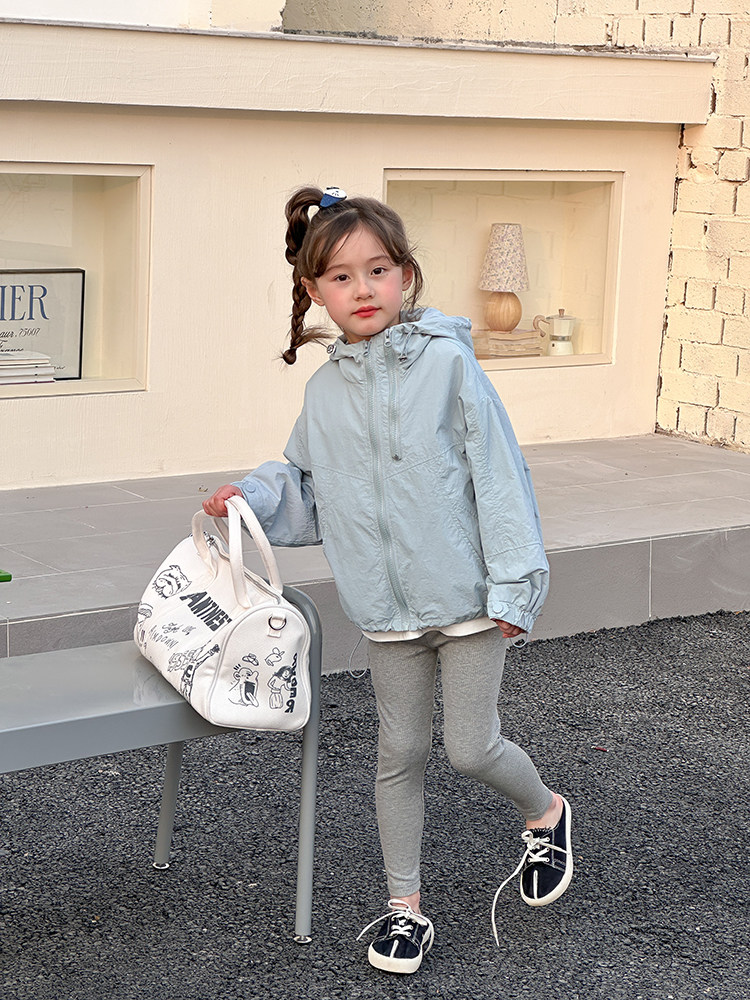 女童韓版休閒寬鬆春秋薄款拉鍊外套兒童純色連帽防曬衣中大童上衣
