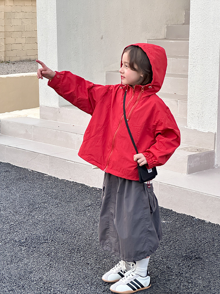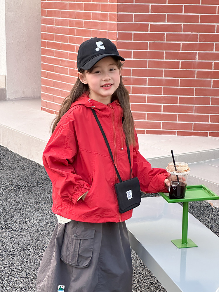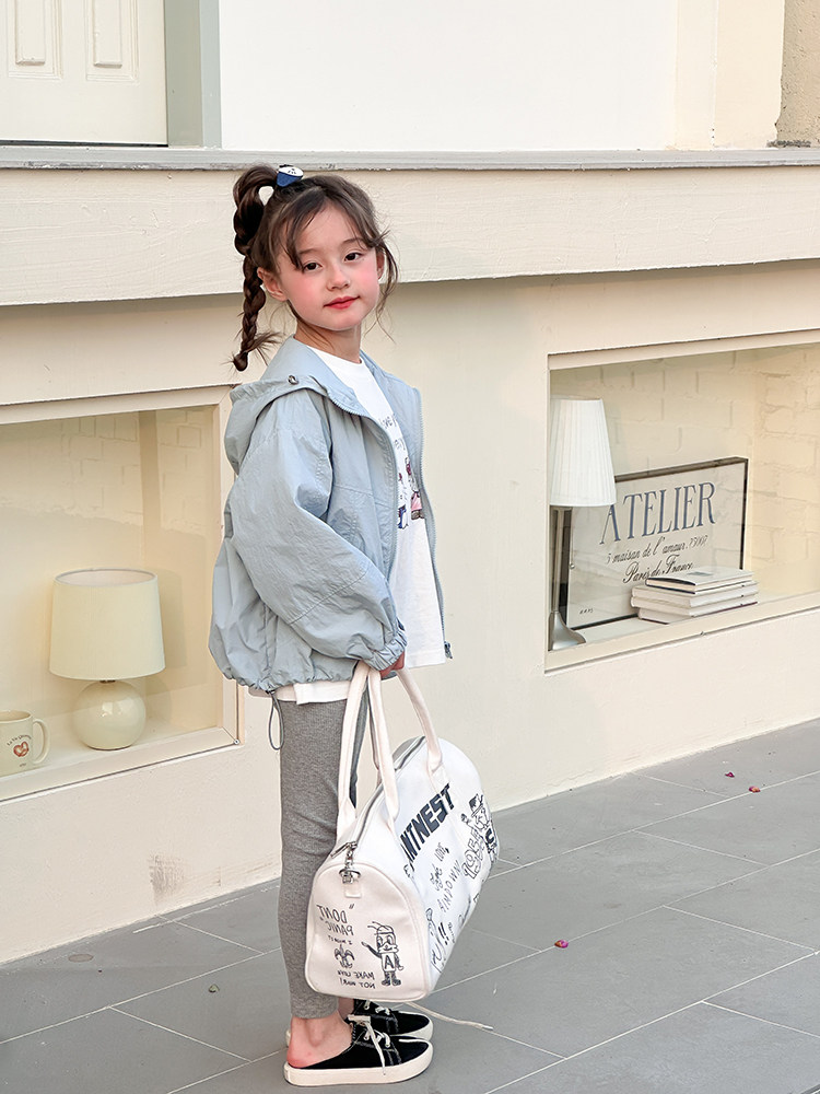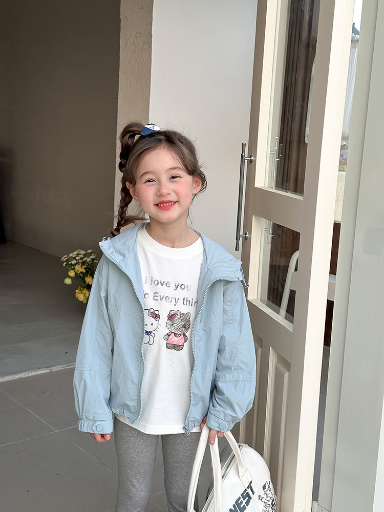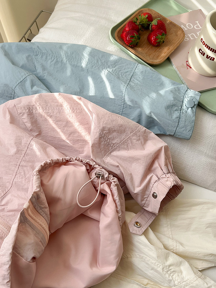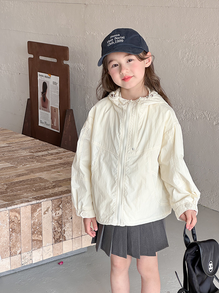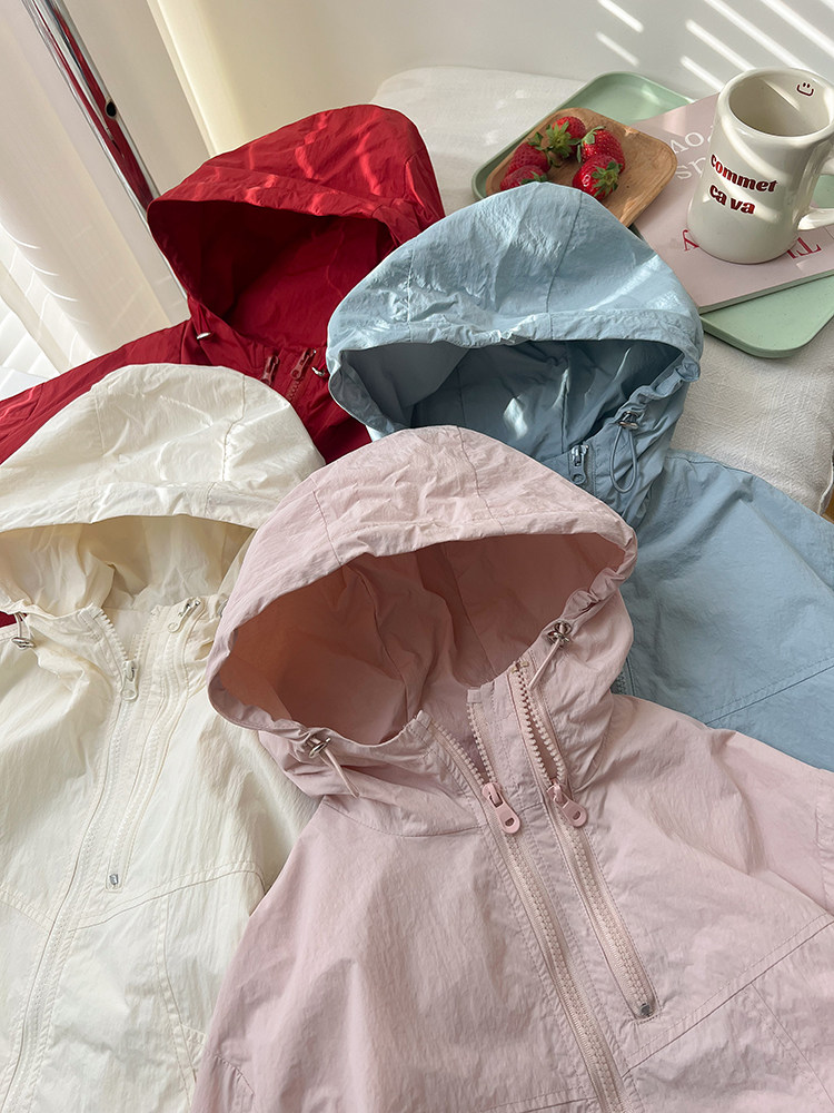 女童韓版休閒寬鬆春秋薄款拉鍊外套兒童純色連帽防曬衣中大童上衣
