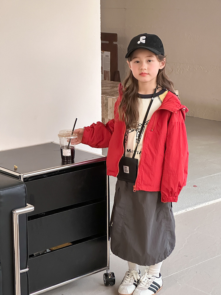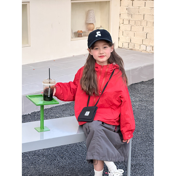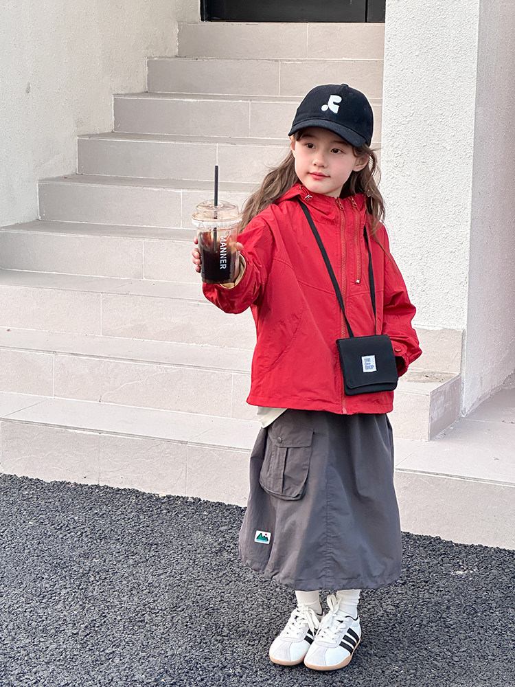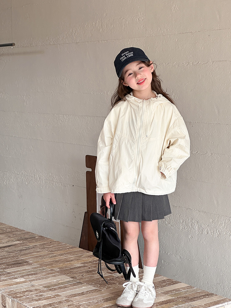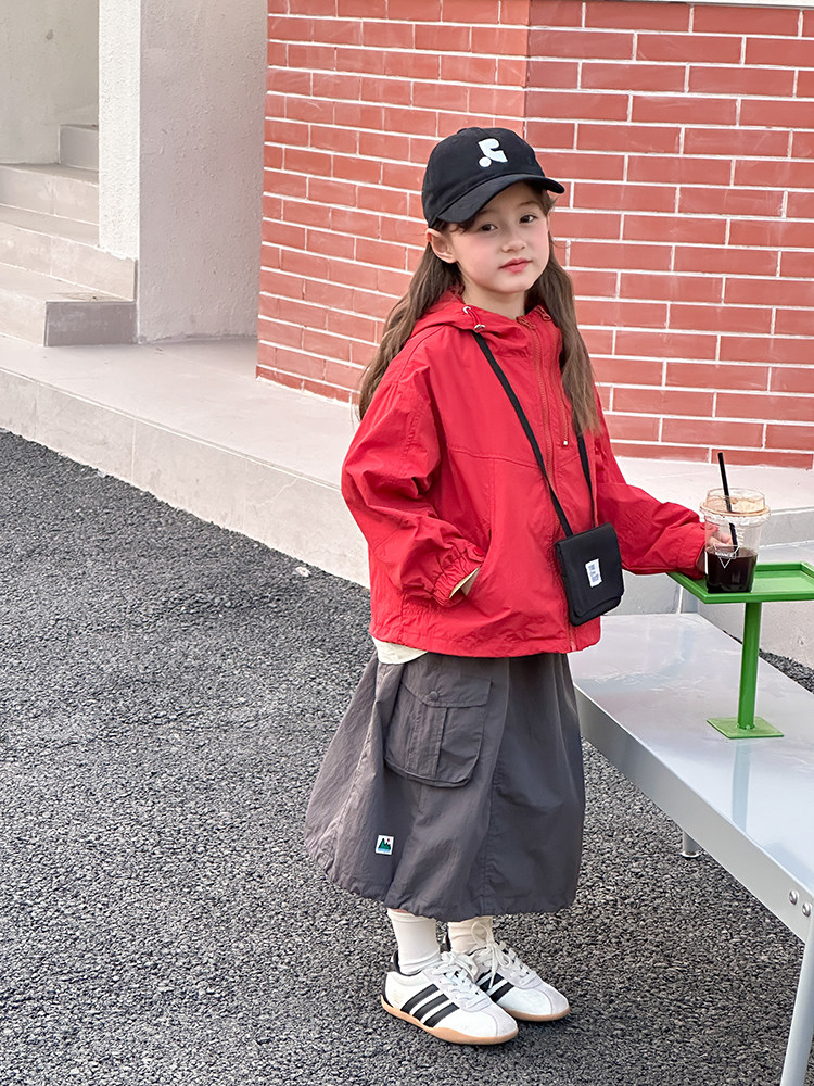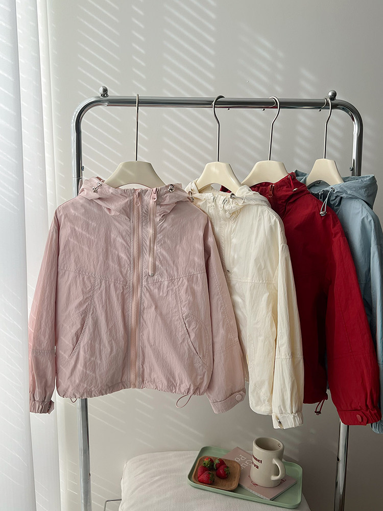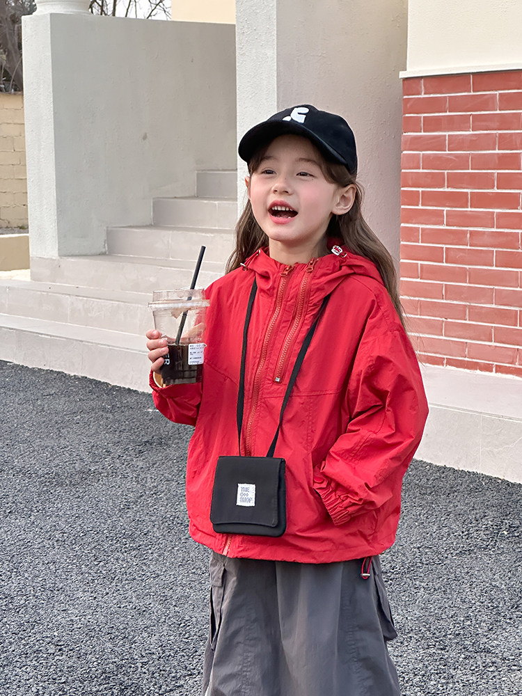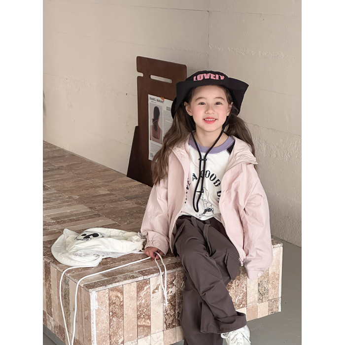 女童韓版休閒寬鬆春秋薄款拉鍊外套兒童純色連帽防曬衣中大童上衣