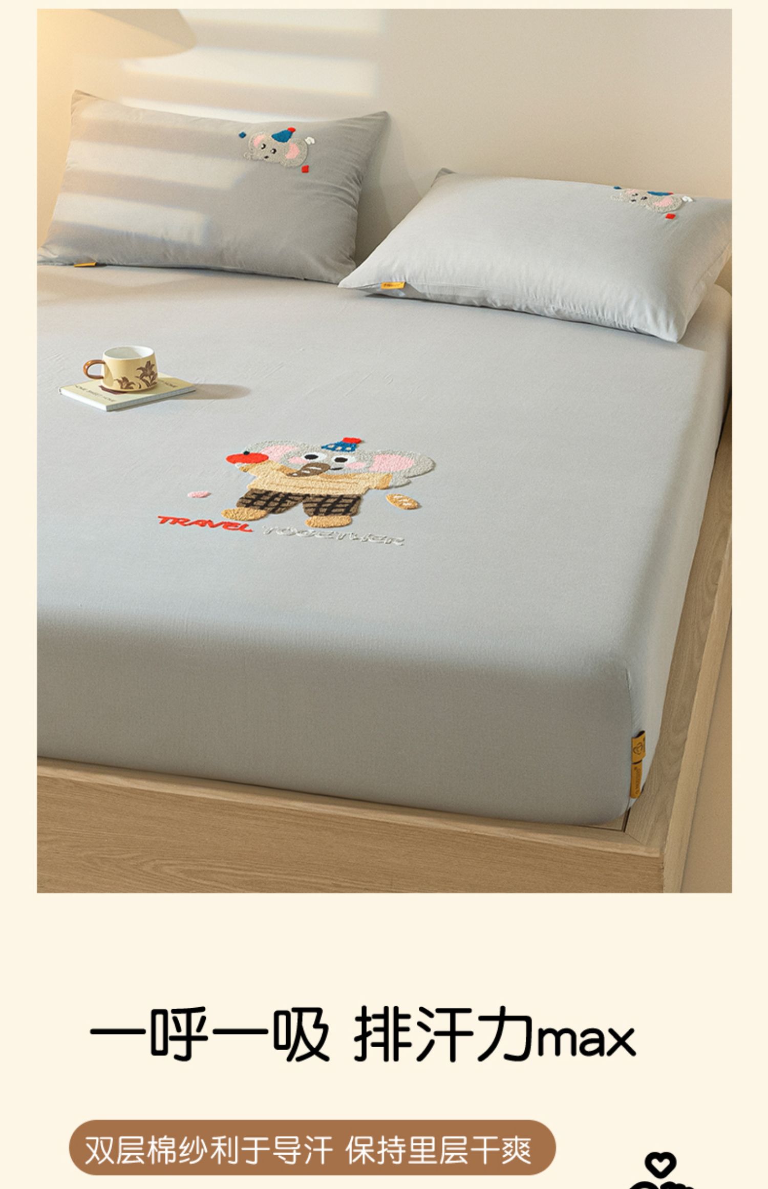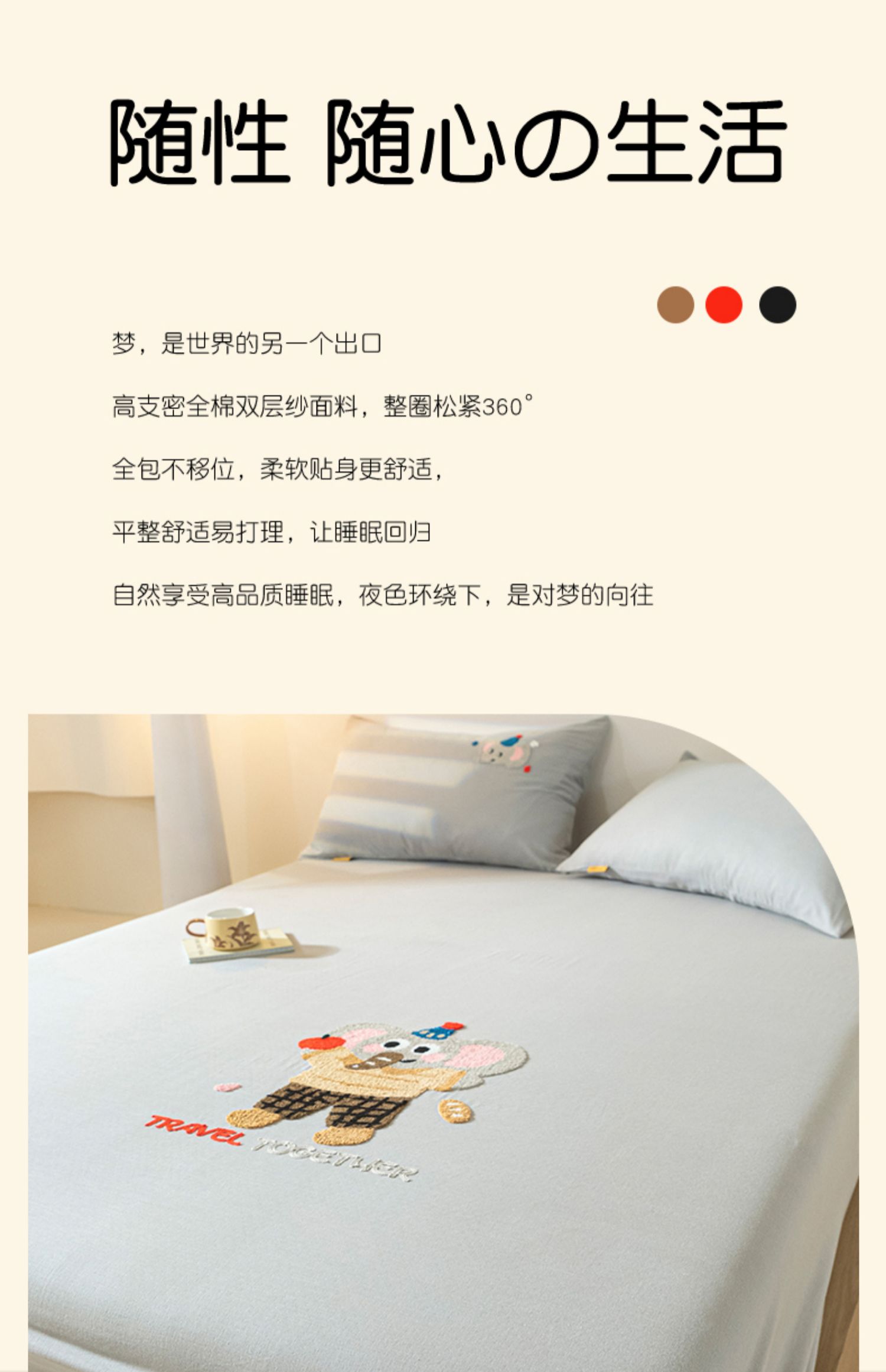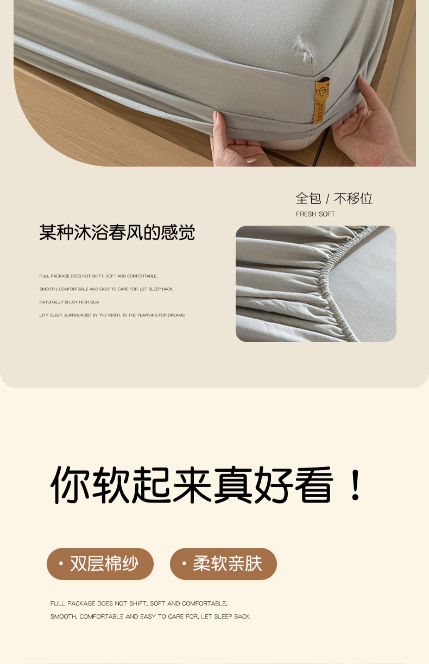 A類全棉雙層紗床笠罩2025新款四季通用全棉100床罩全包床套三件套