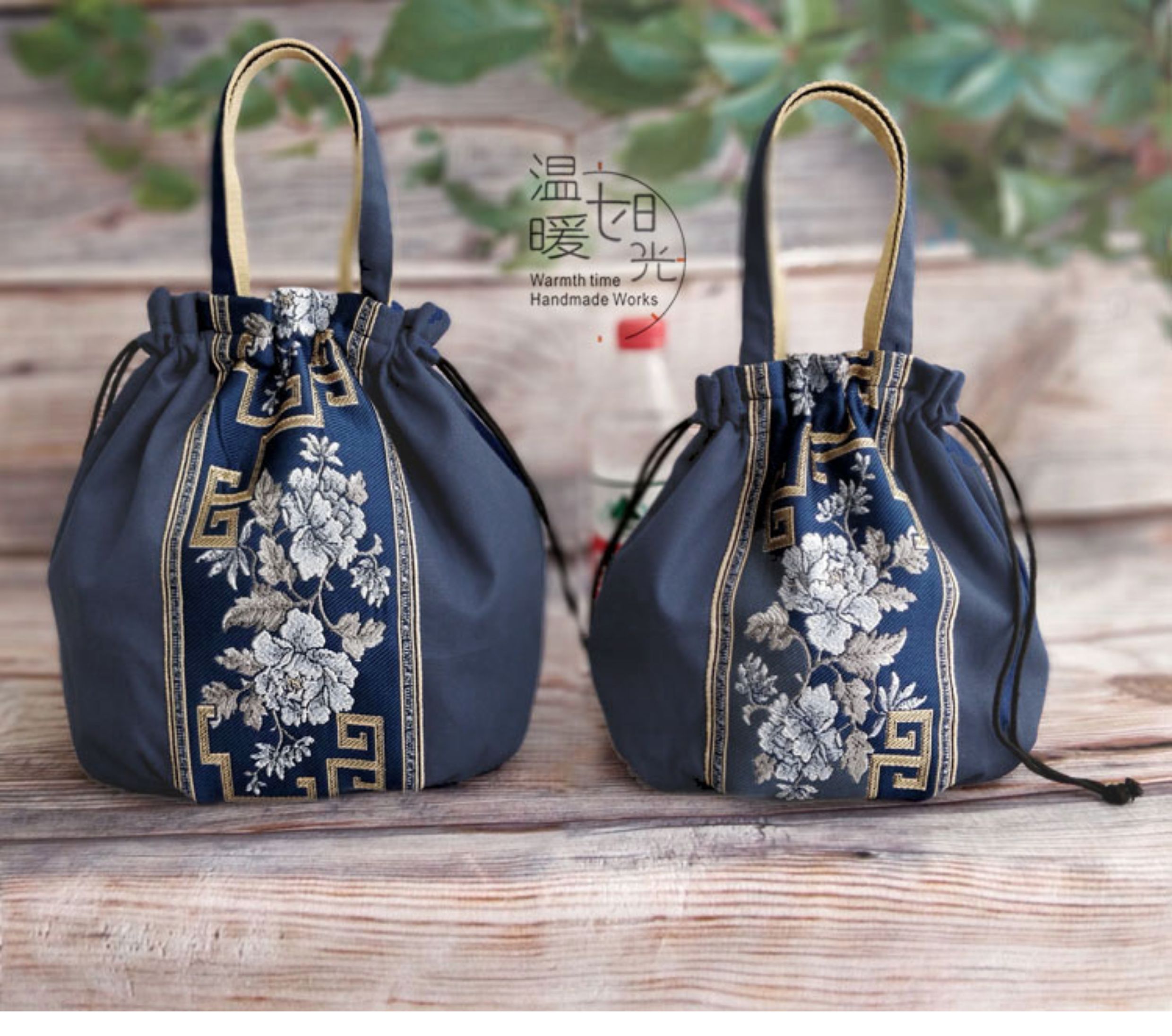 溫暖時光原創國風手提包中式青花瓷束口女包