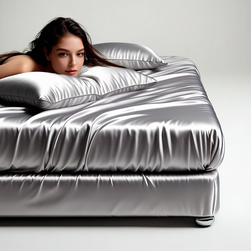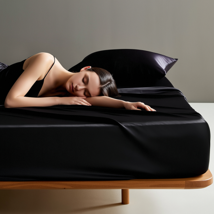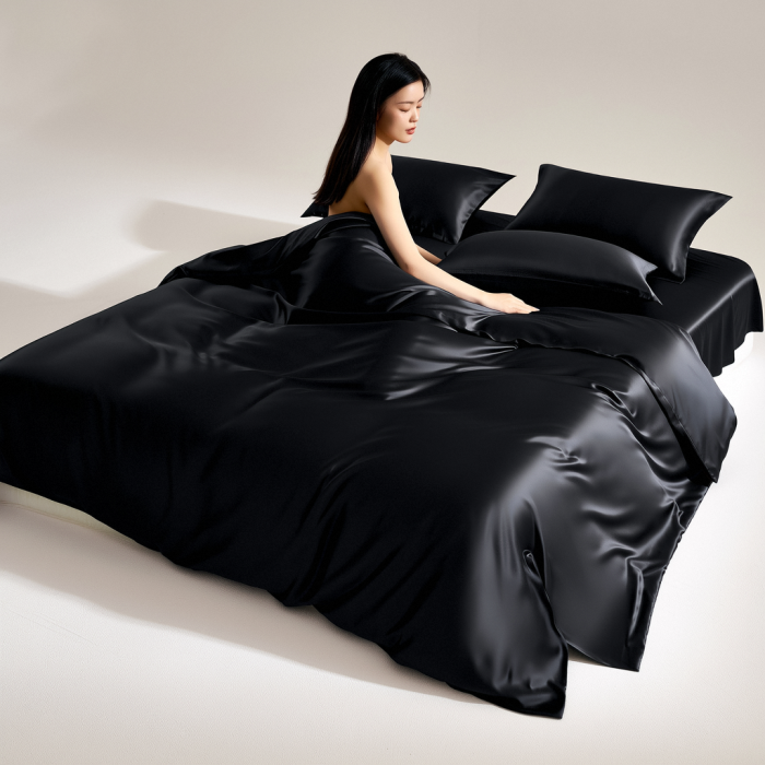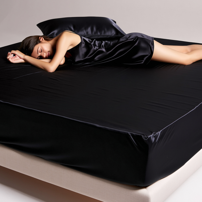 黑色水洗真絲床笠單件男士高級單人冰絲涼感天絲絲綢床單套罩夏季