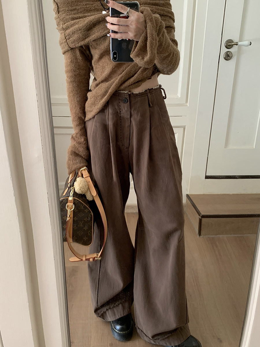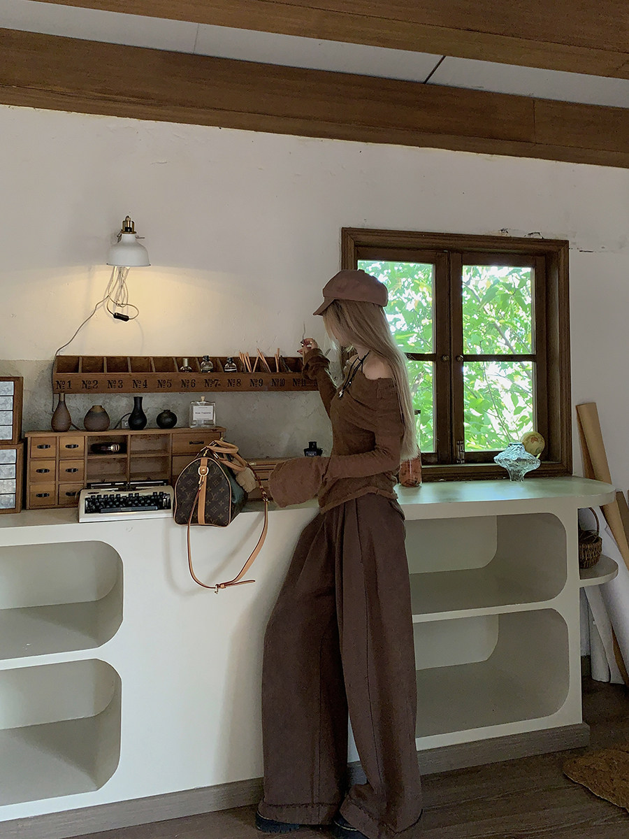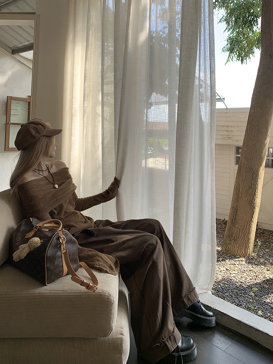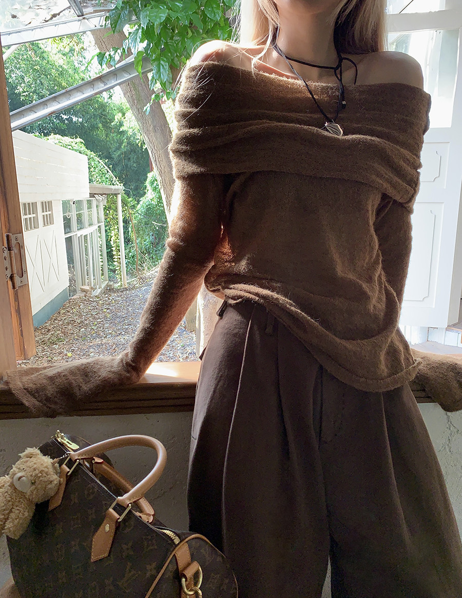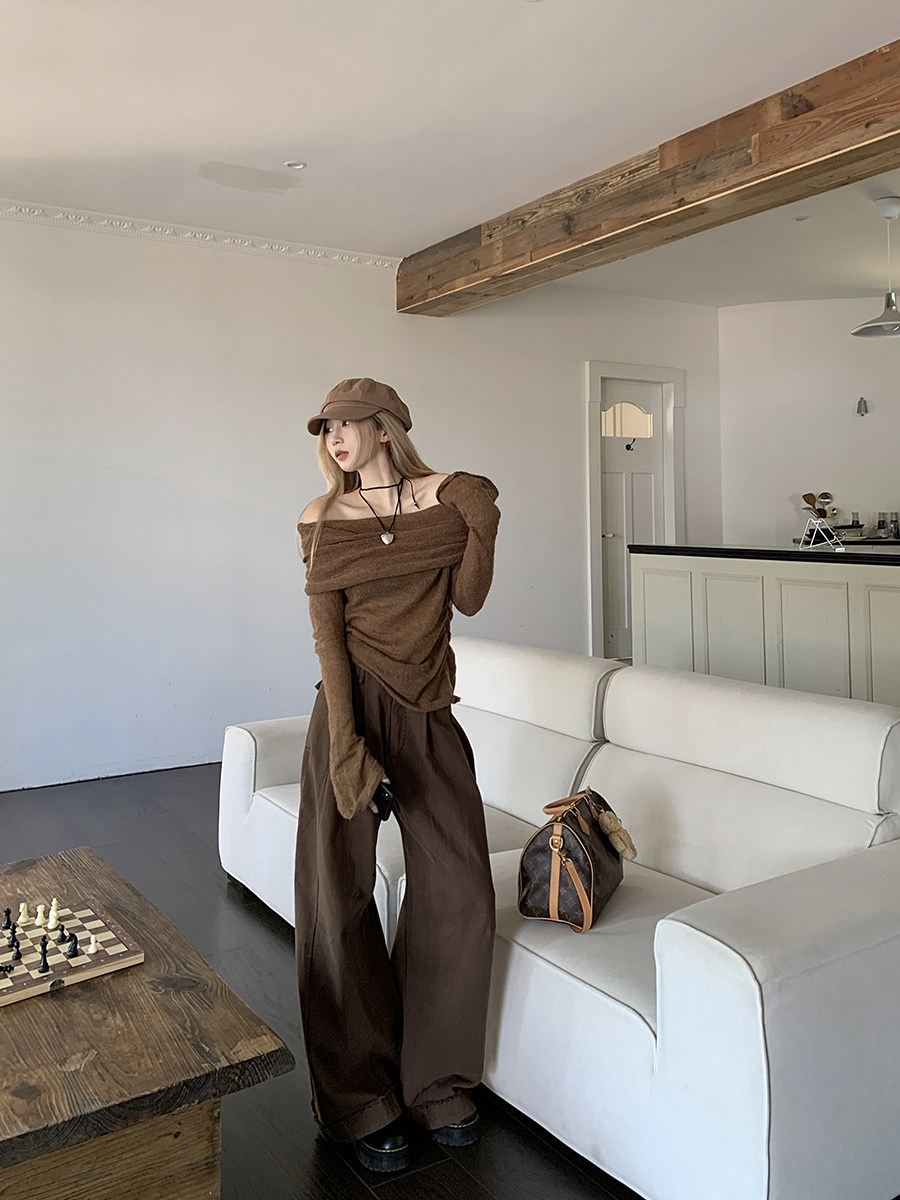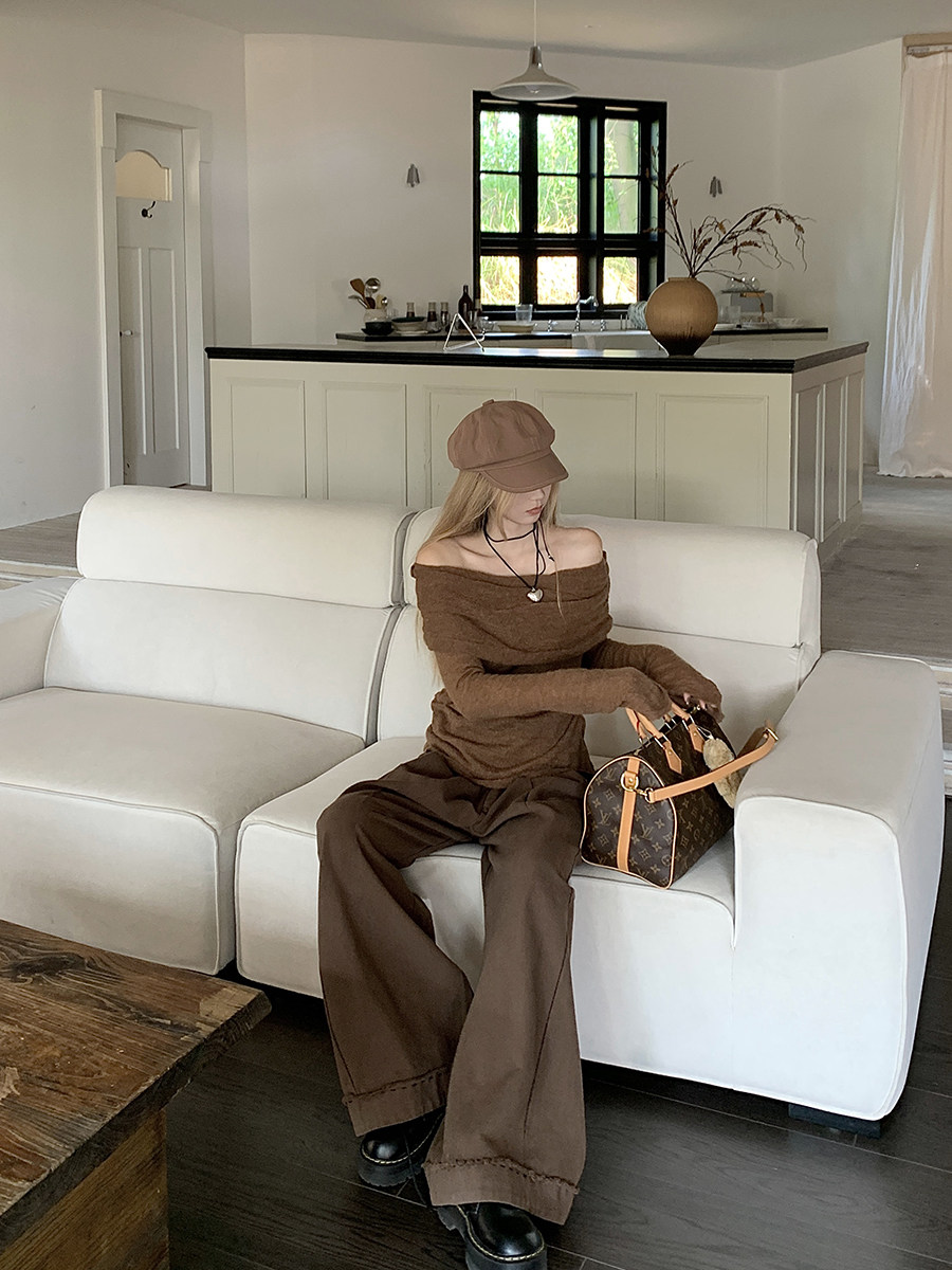 初秋氛圍感美拉德穿搭一字肩打底衫女秋季露肩高級感針織衫上衣