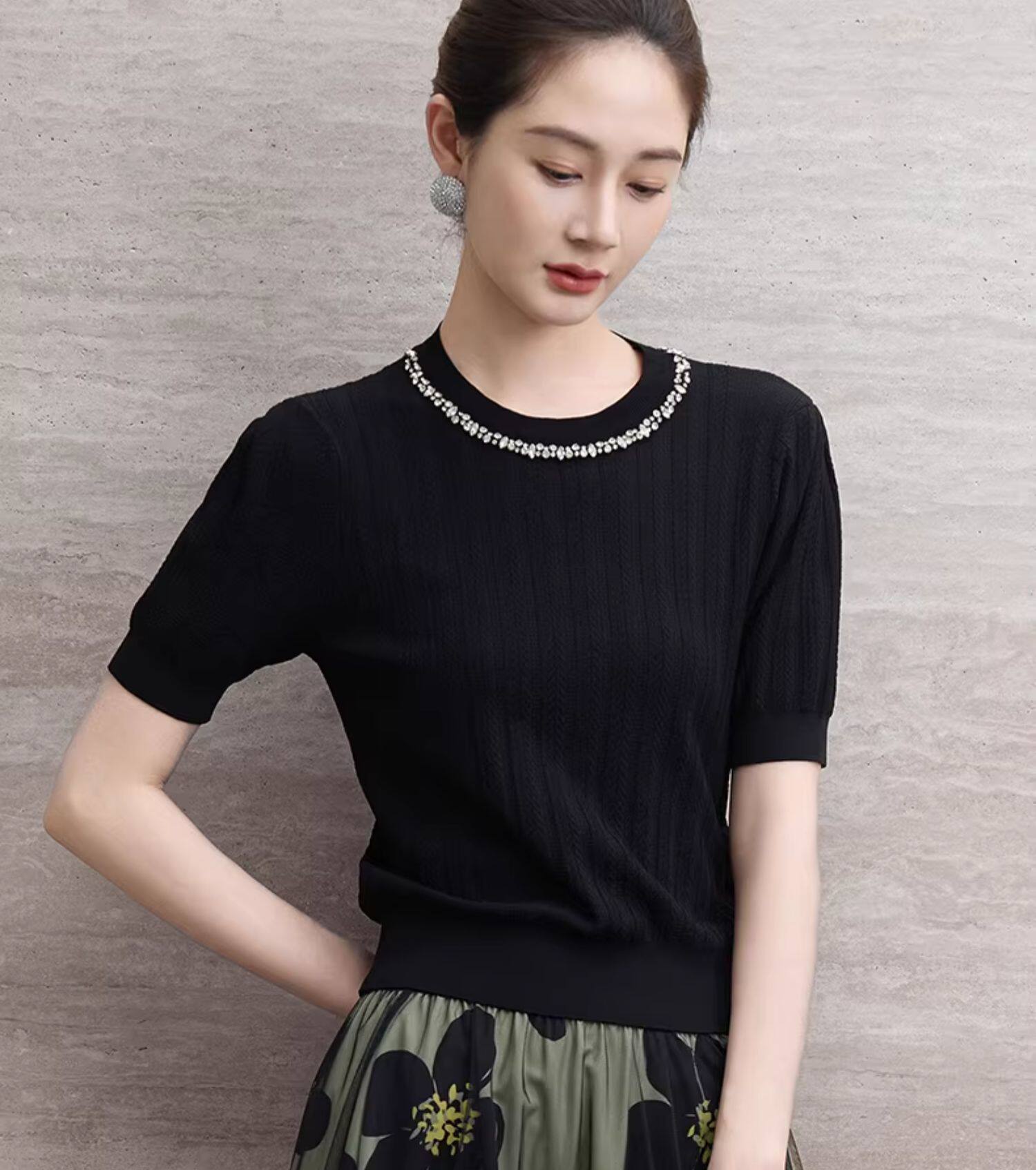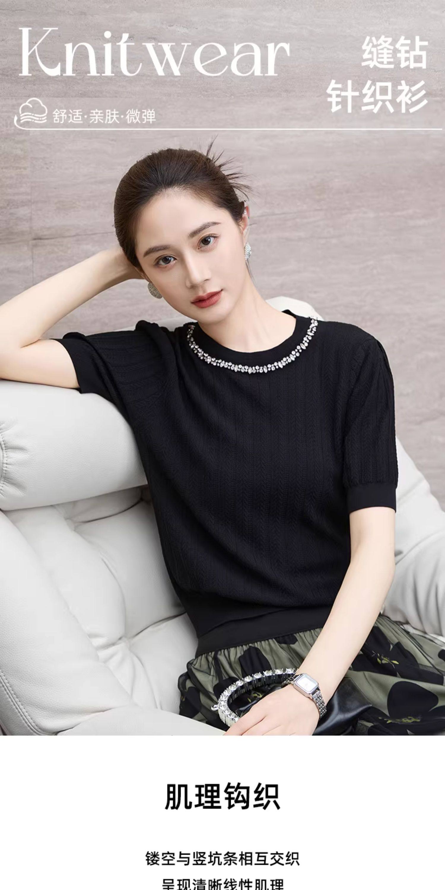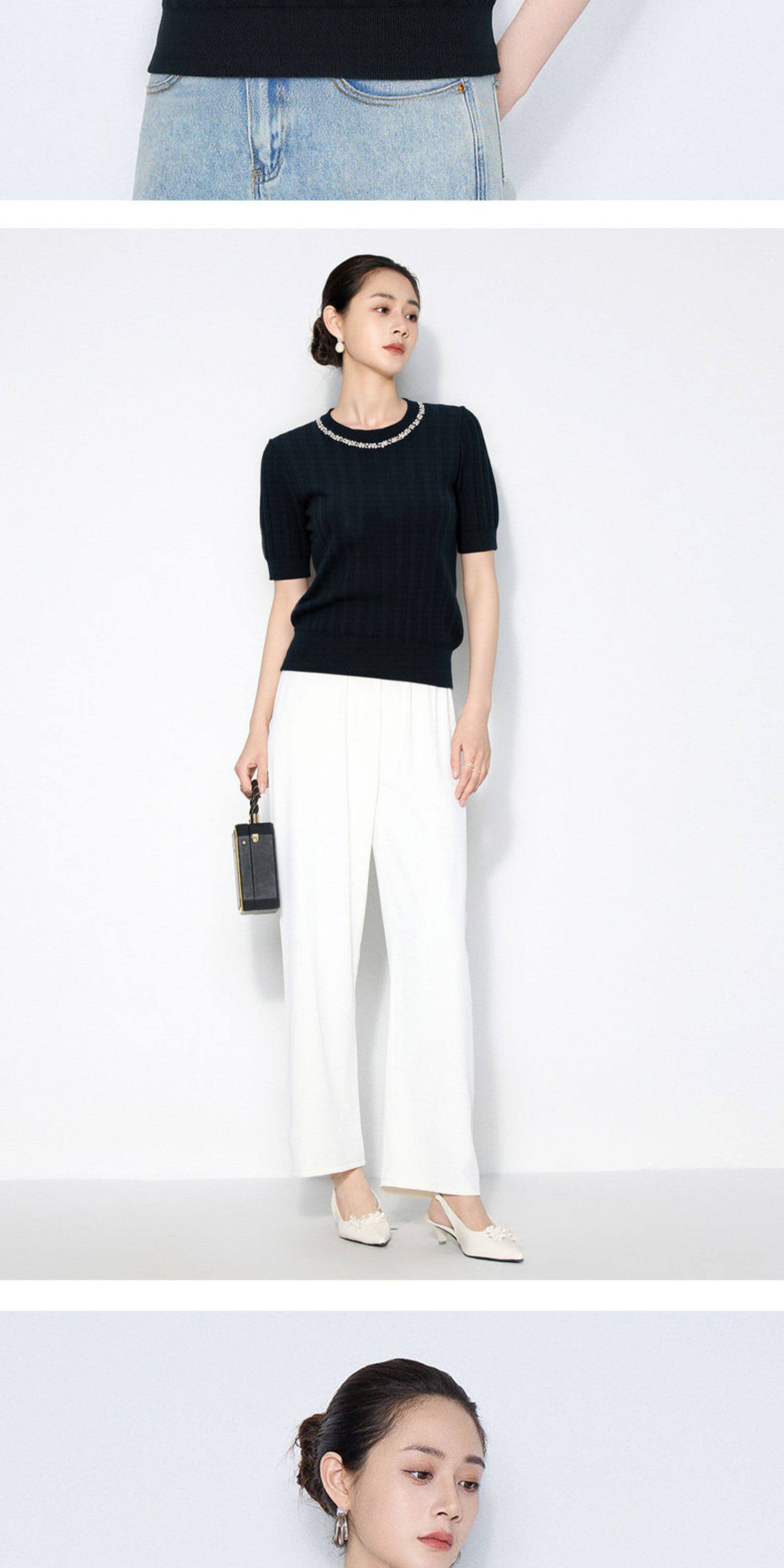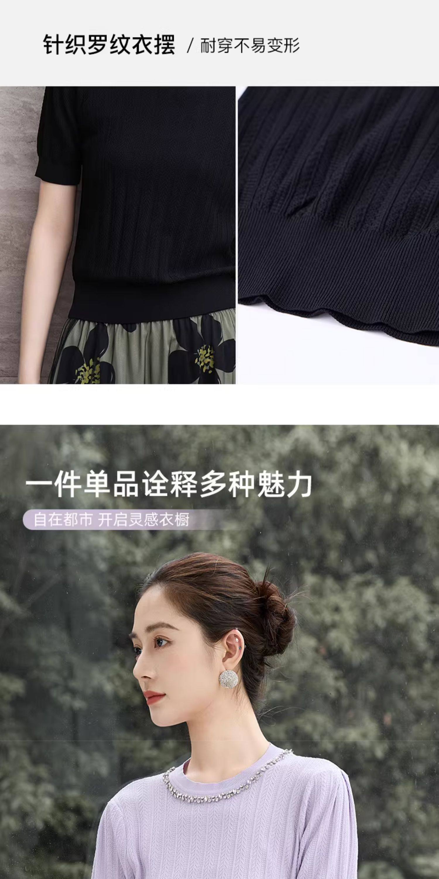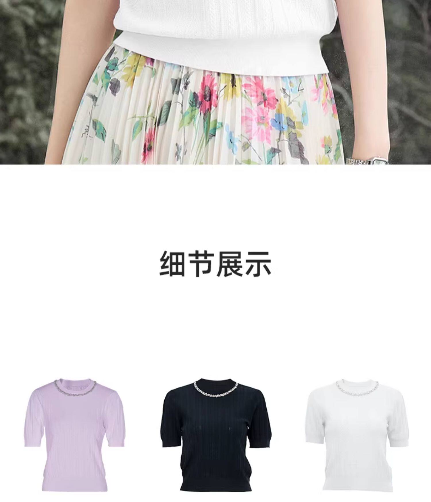 商場同款馬天奴春夏新款黑色短袖針織衫白小衫高級感上衣女士T恤