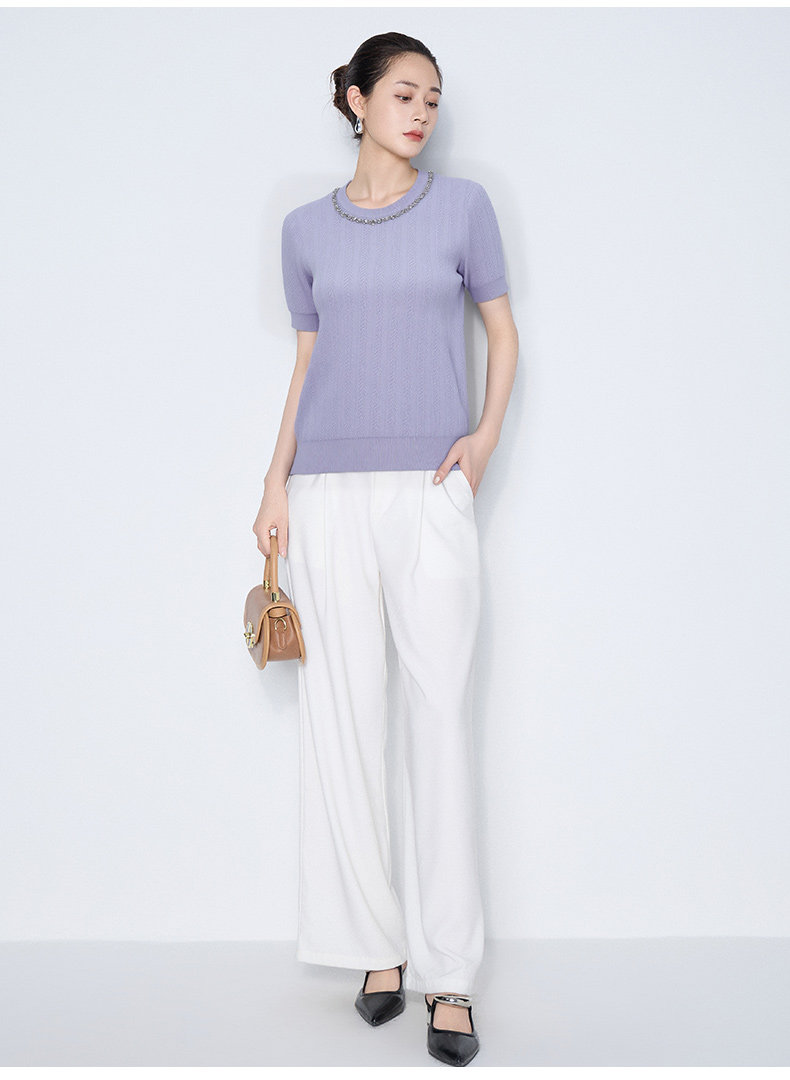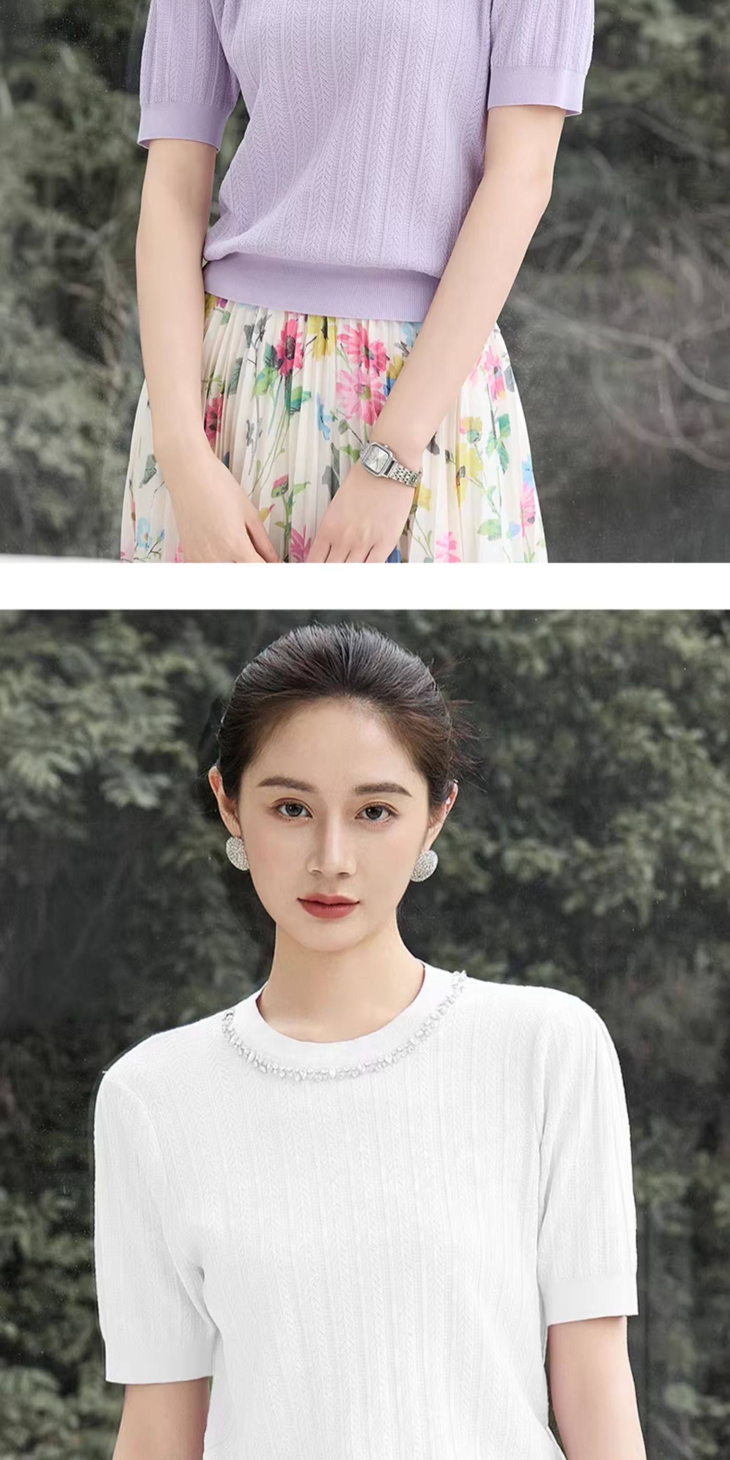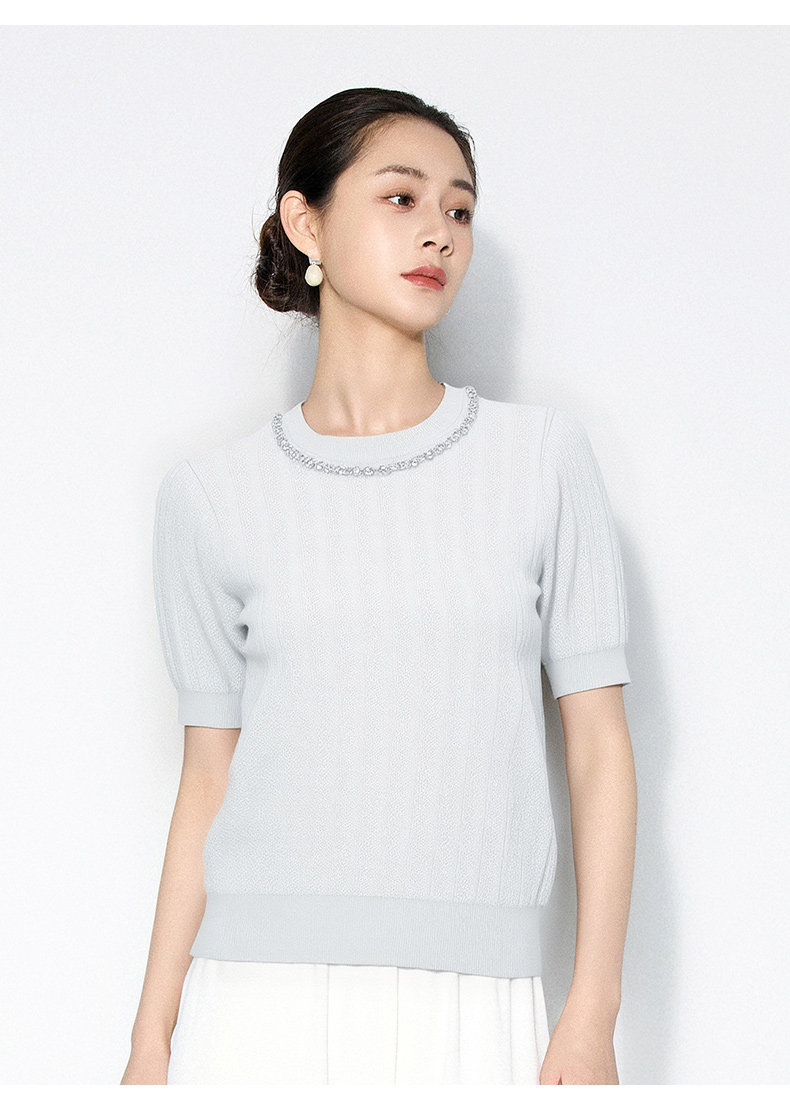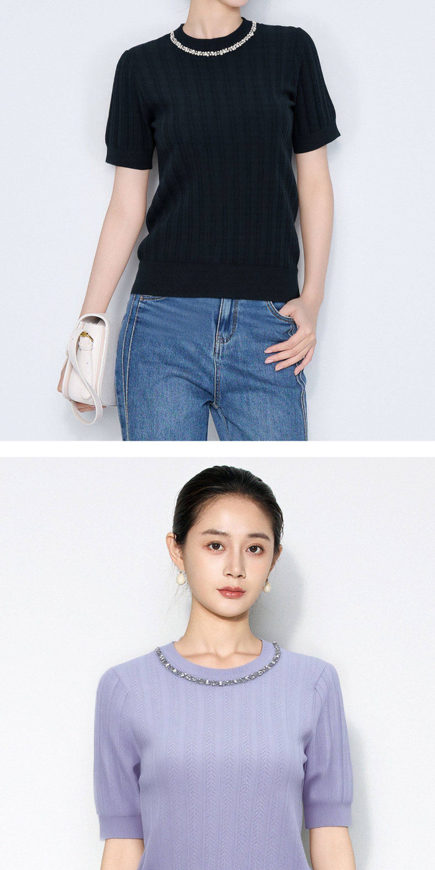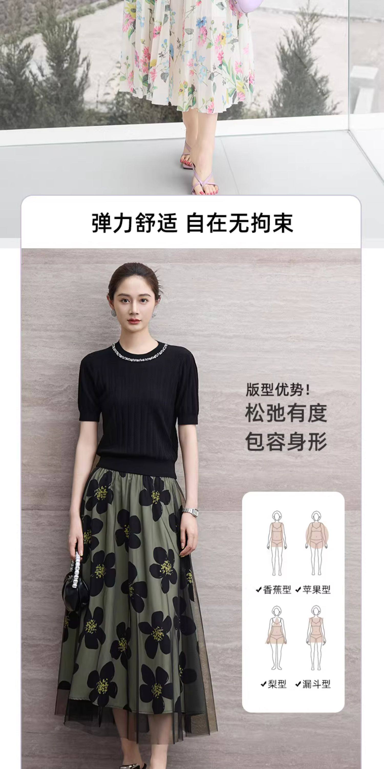 商場同款馬天奴春夏新款黑色短袖針織衫白小衫高級感上衣女士T恤