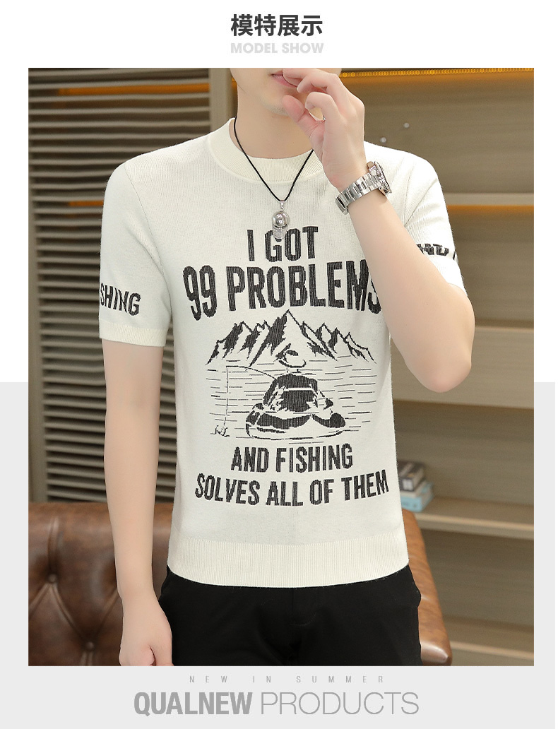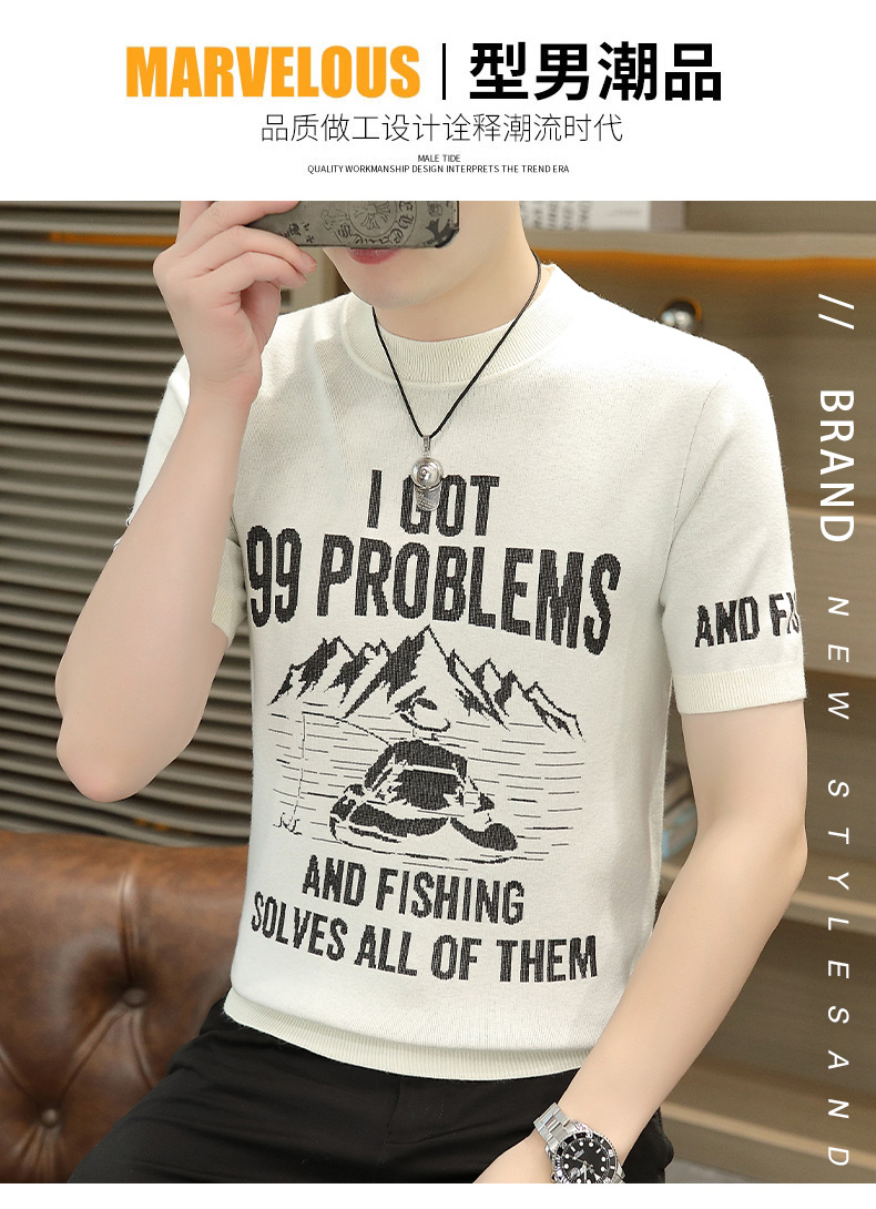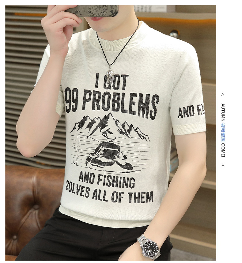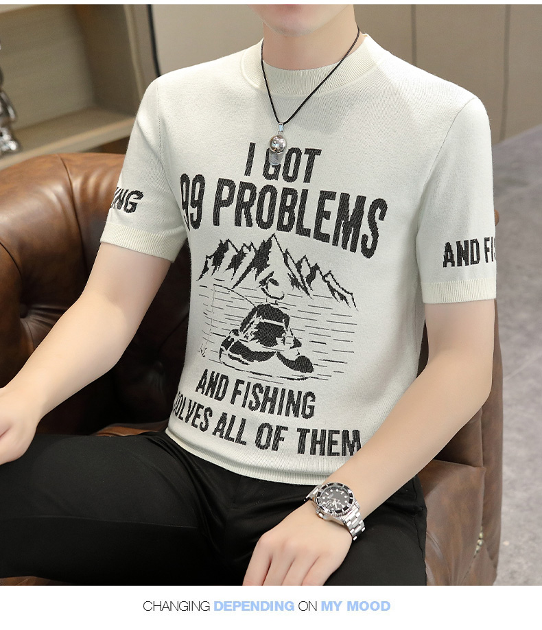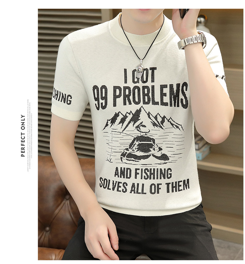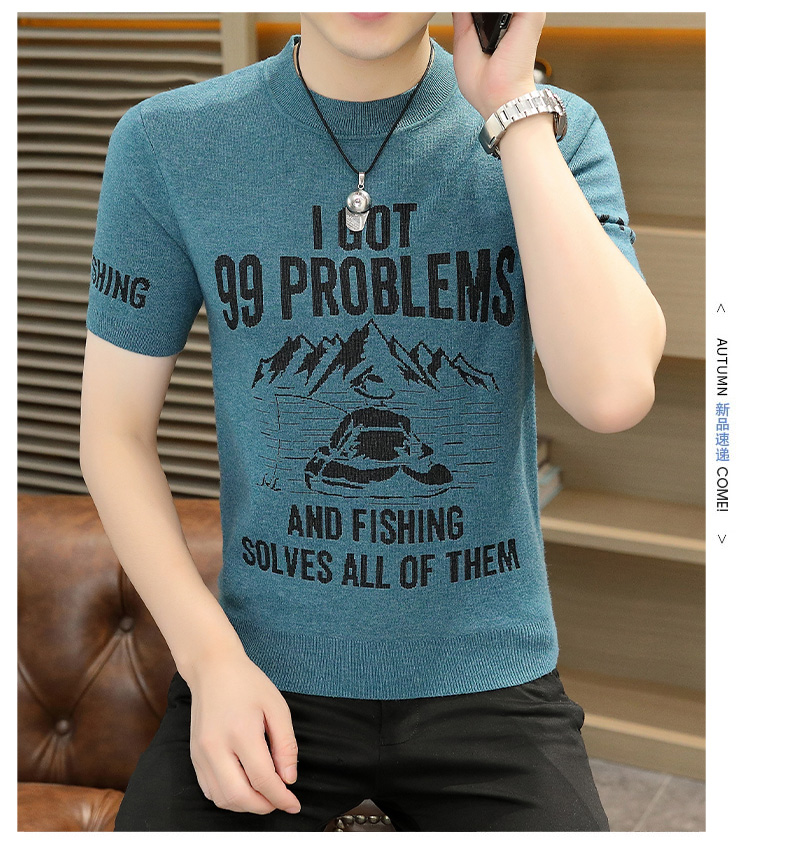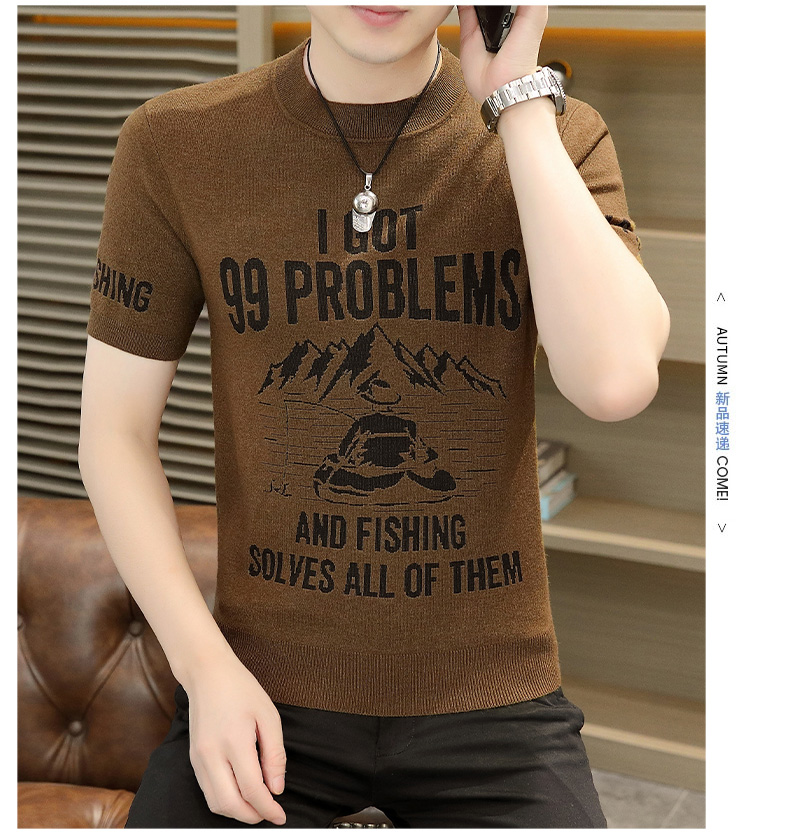 男士毛衣半高領秋冬內搭短袖針織衫男修身中領半袖加厚線衣打底衫