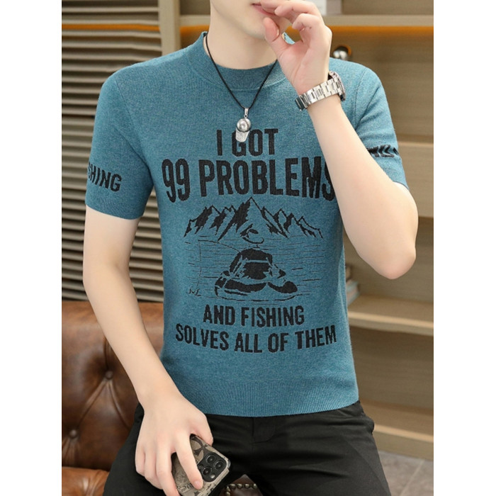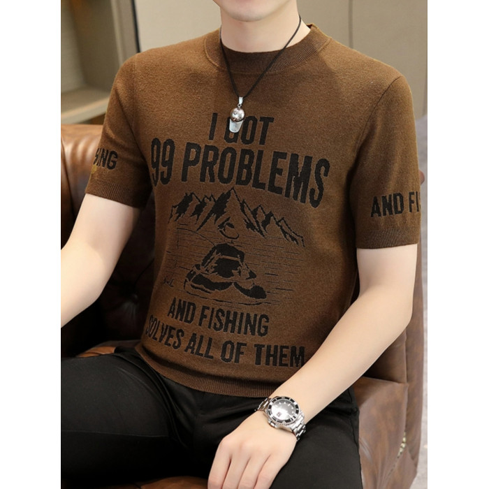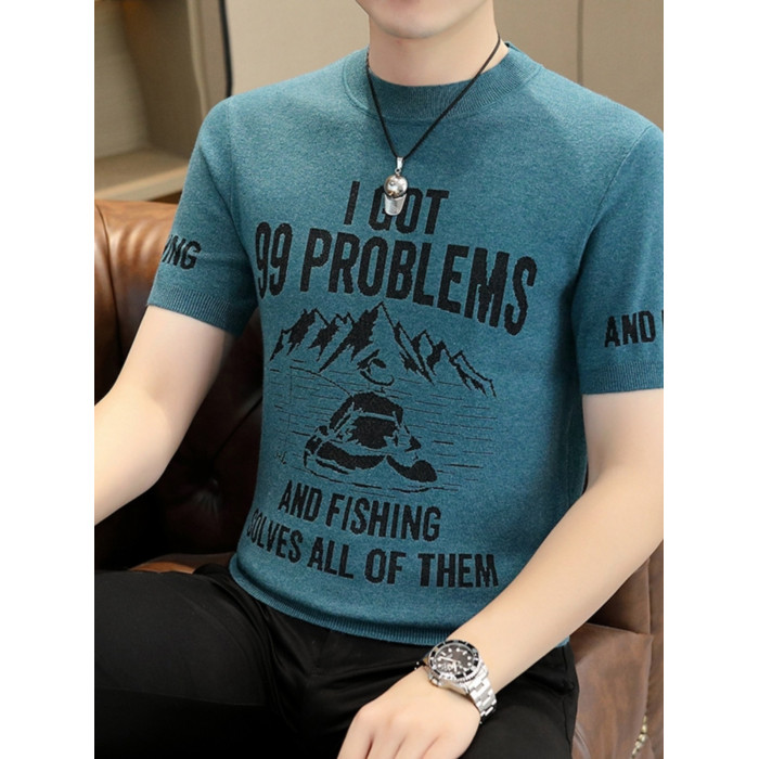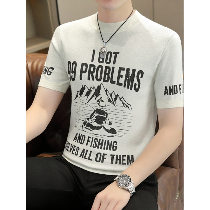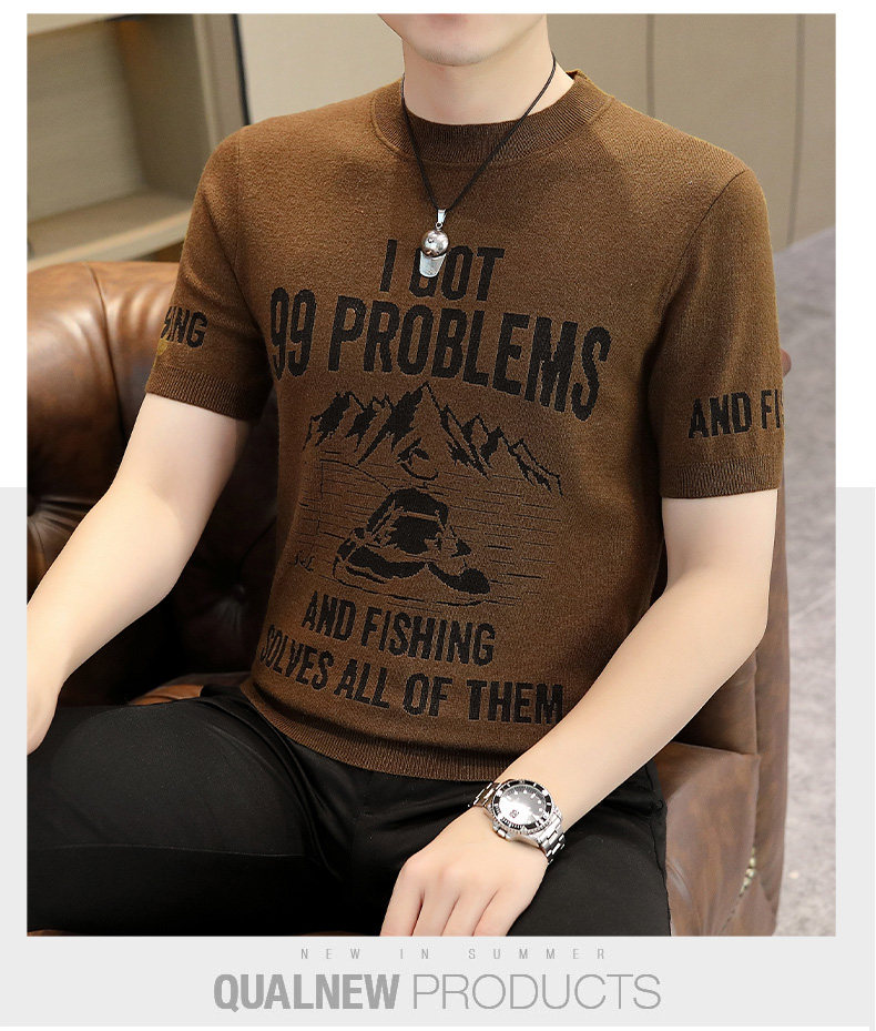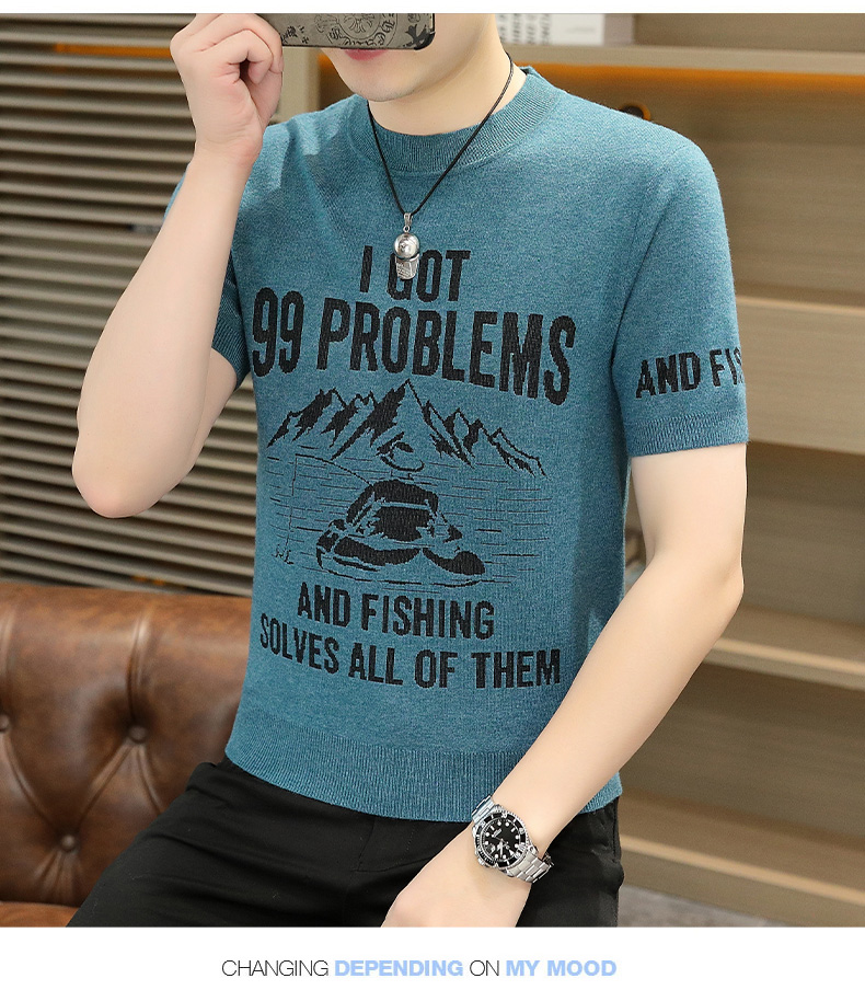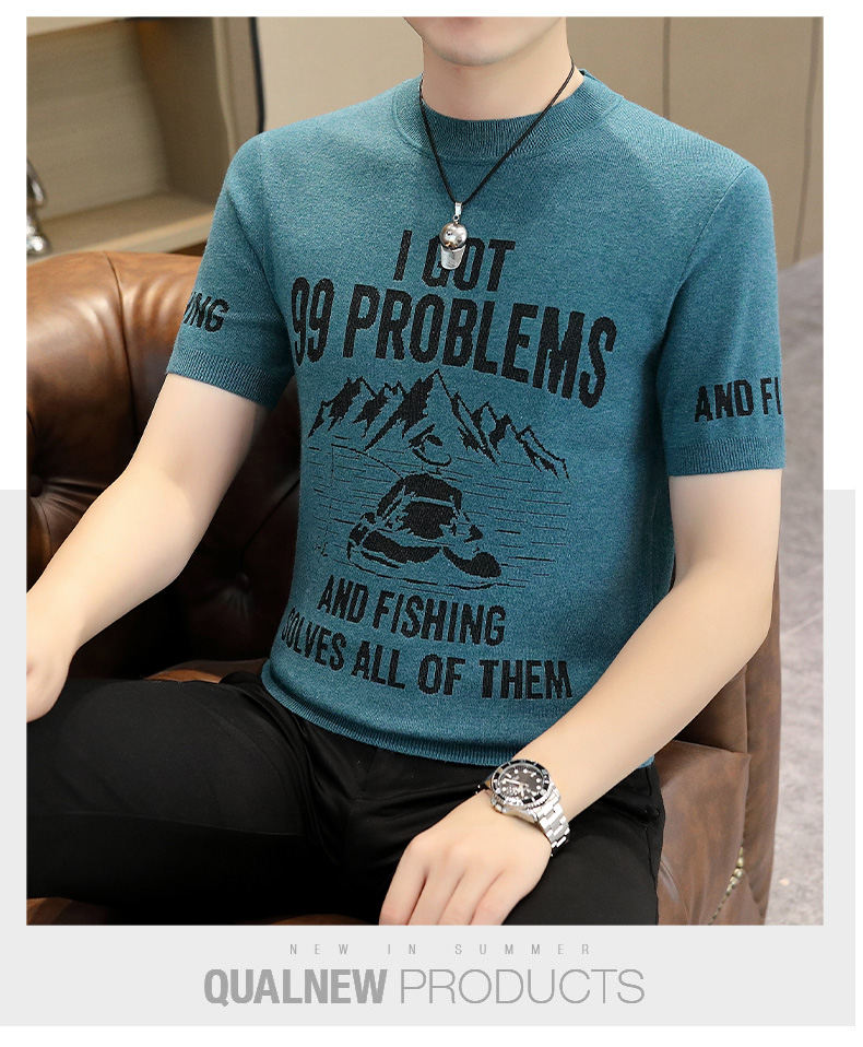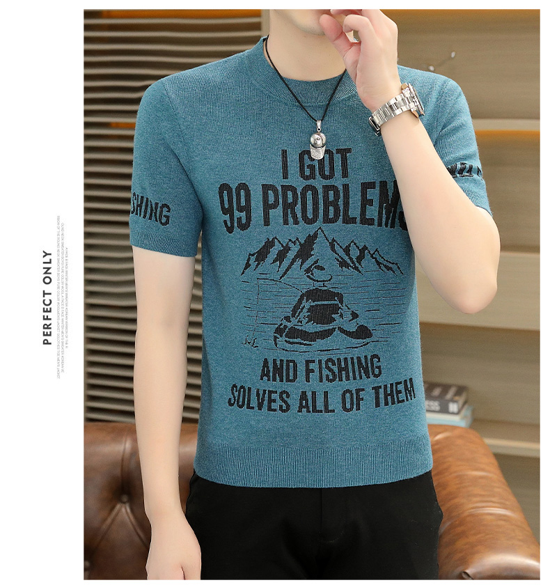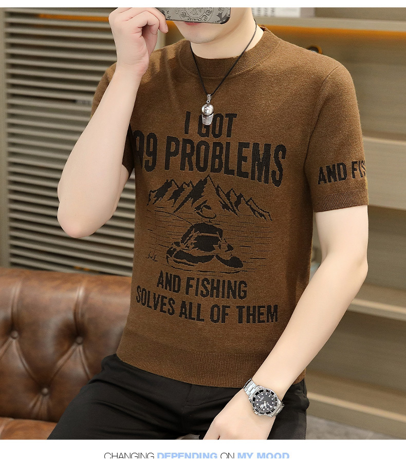 男士毛衣半高領秋冬內搭短袖針織衫男修身中領半袖加厚線衣打底衫