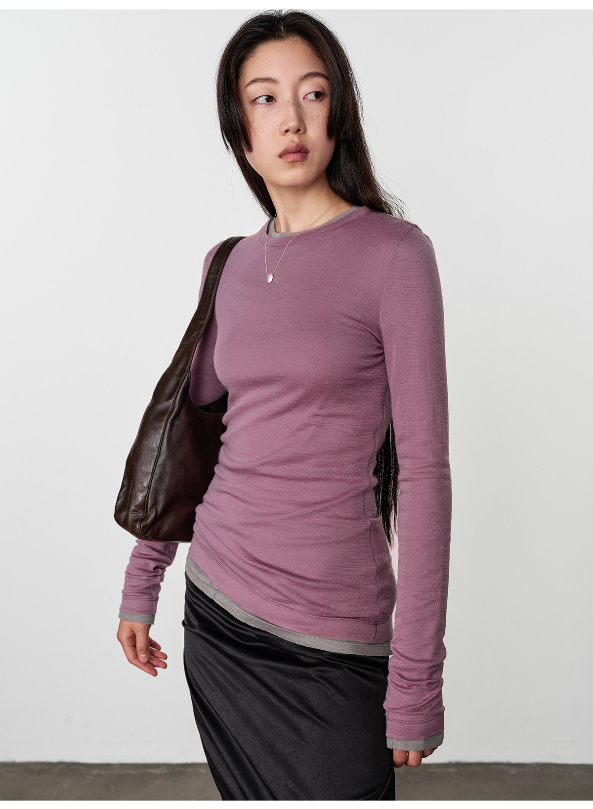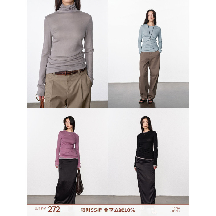 RandomPiece24新品澳洲美麗諾羊毛 定染色彩斜擺/高領/圓領打底衫