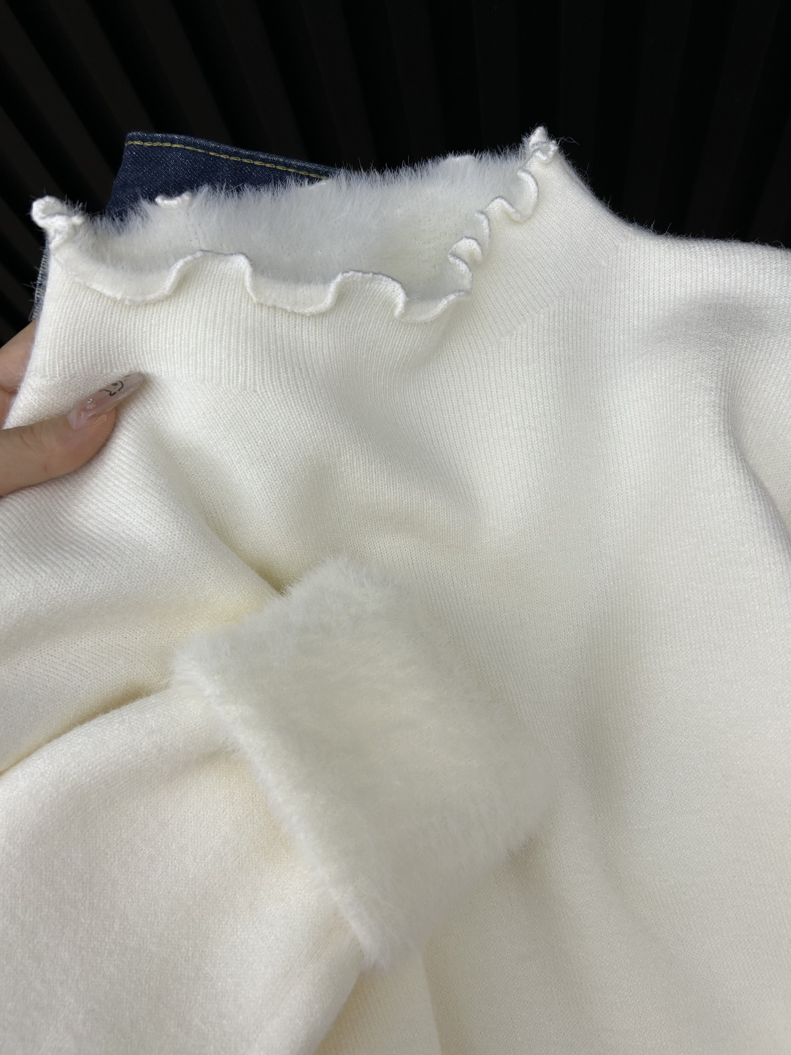 半高領木耳邊針織長袖打底衫女秋冬款設計感時尚洋氣內搭加厚上衣