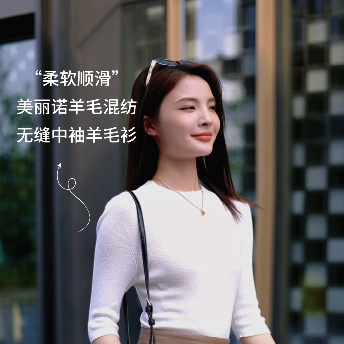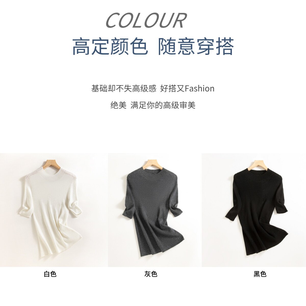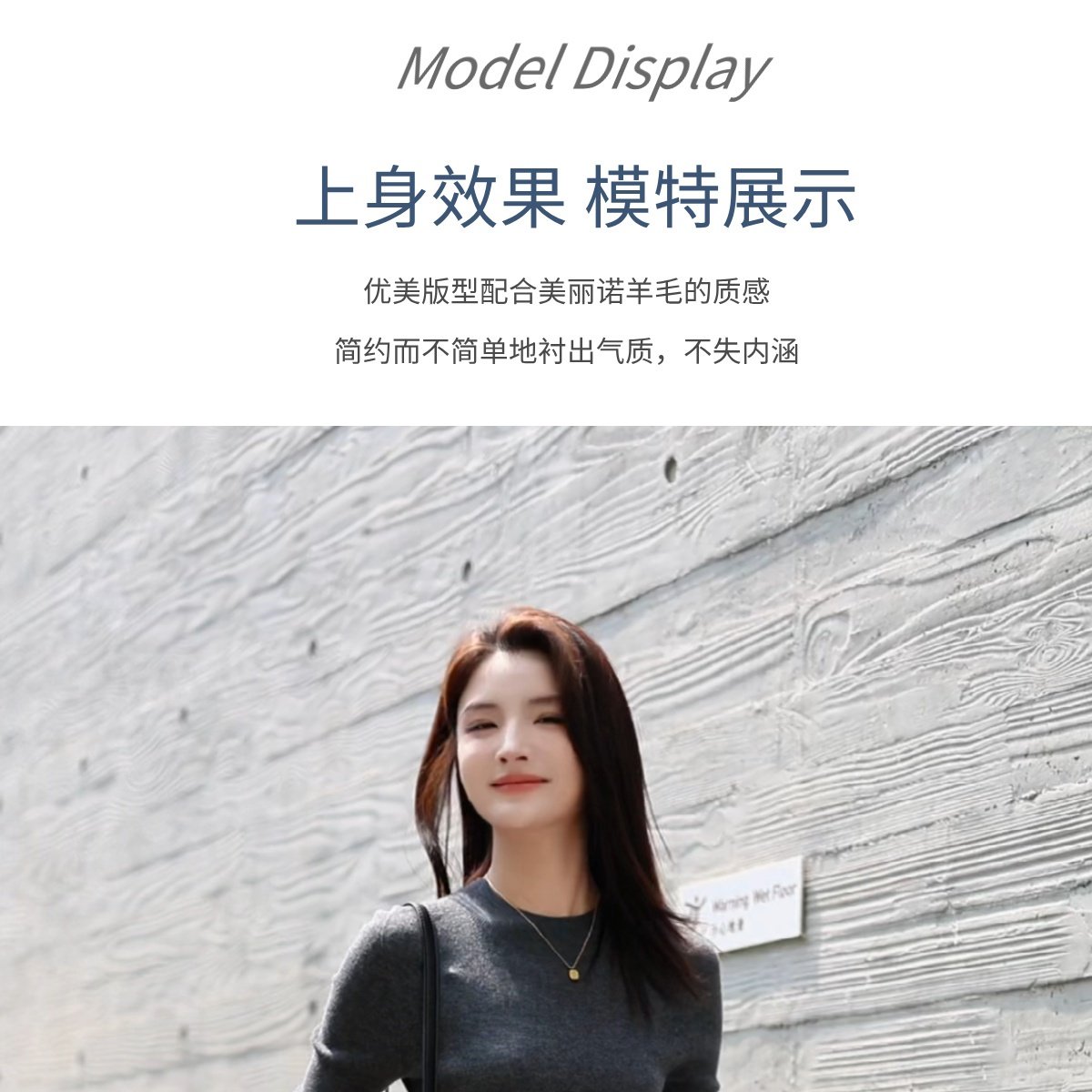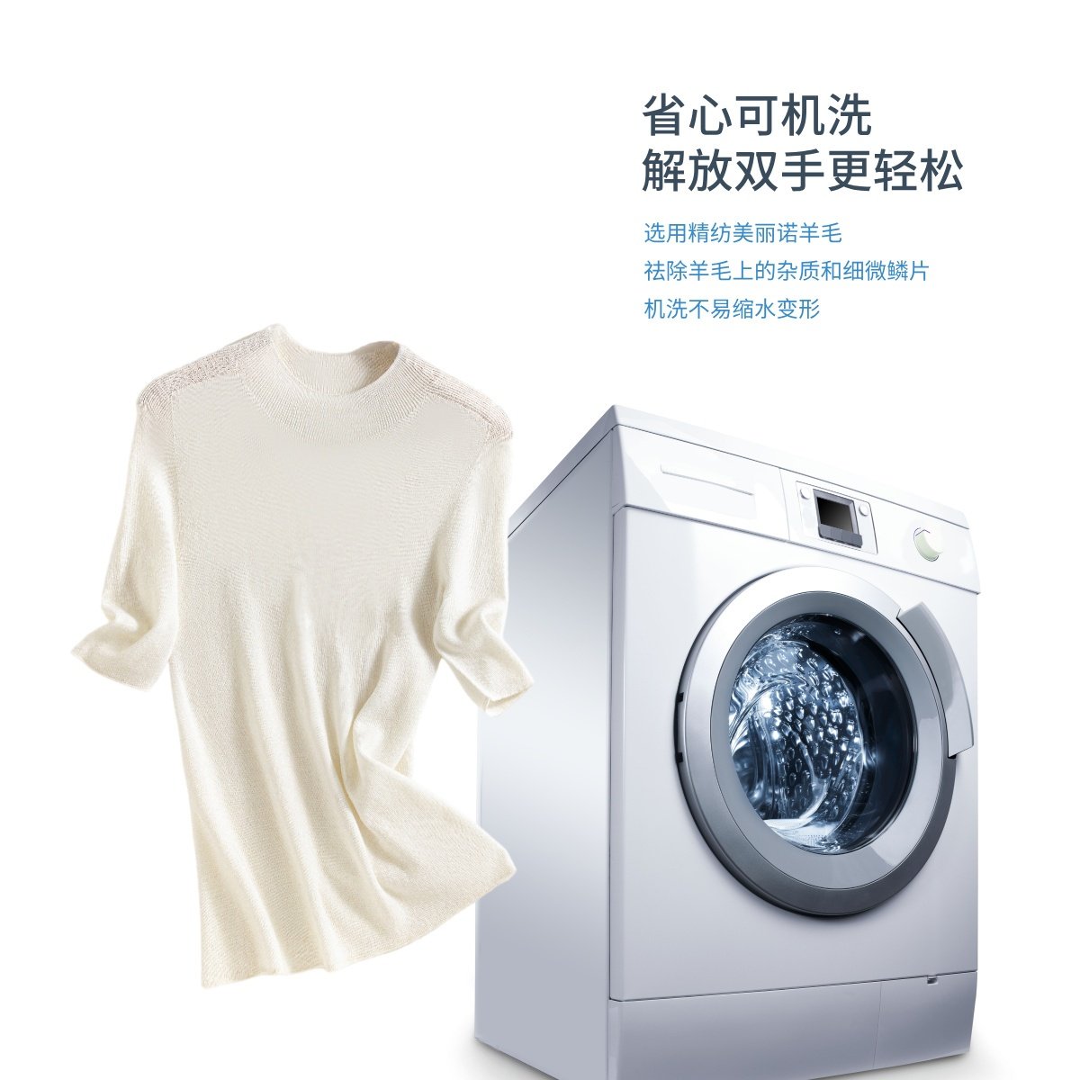 溫爾家 可機洗30%美麗諾羊毛打底衫女中袖春秋季修身針織衫上衣