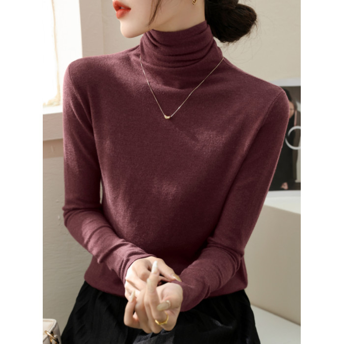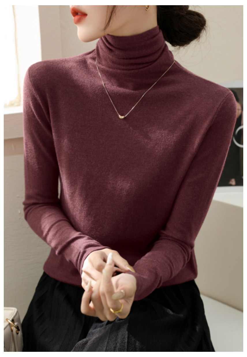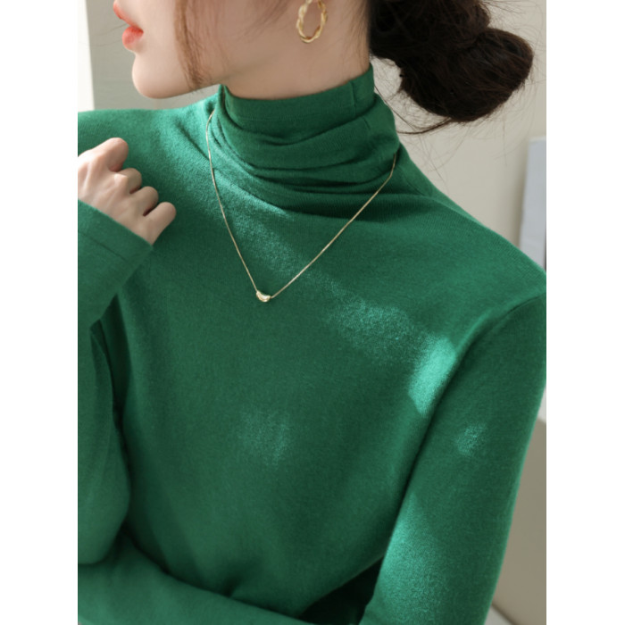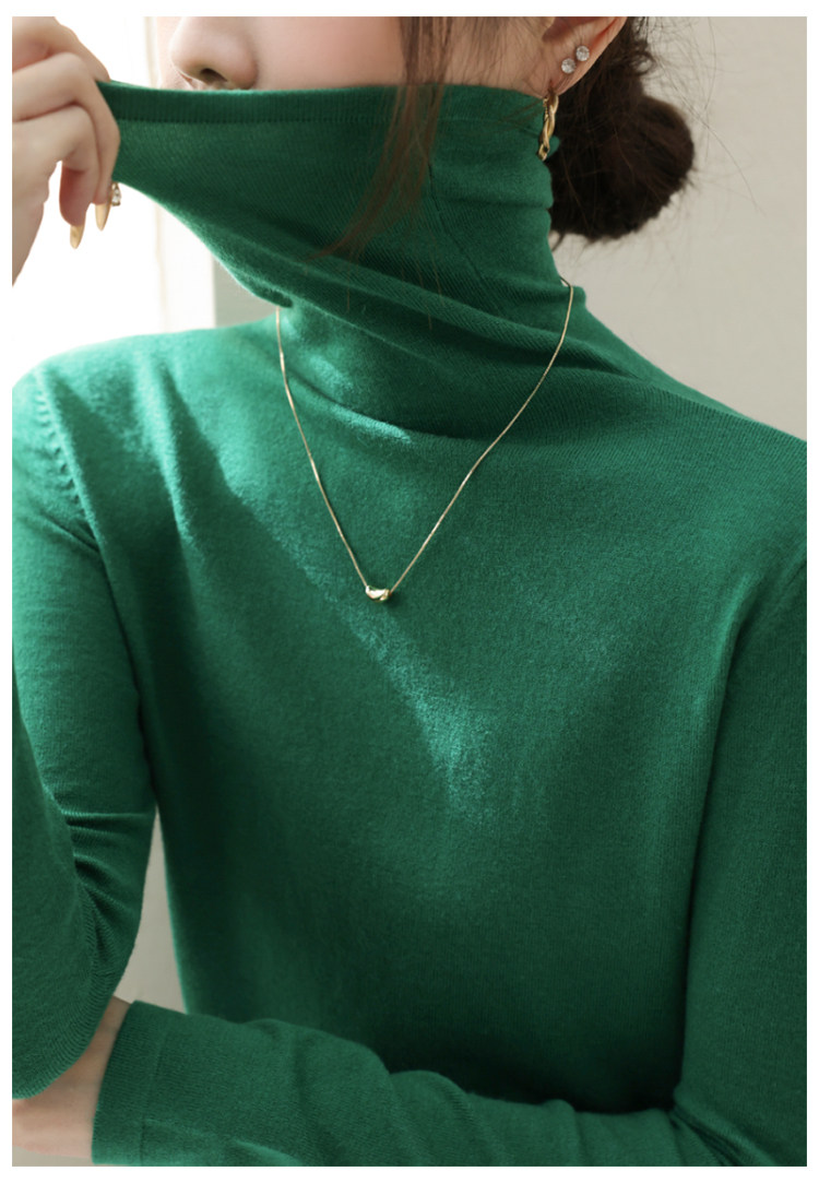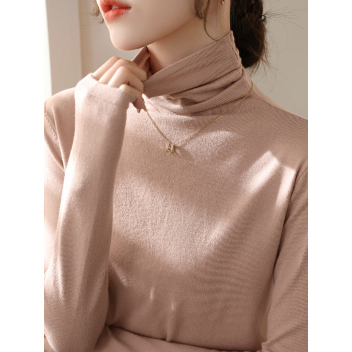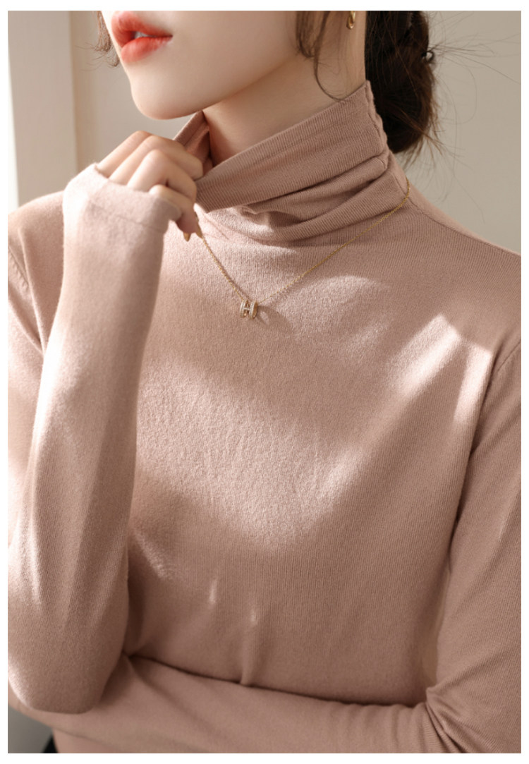 春季新款堆堆高領長袖修身羊毛針織打底衫女內搭今年流行加絨上衣