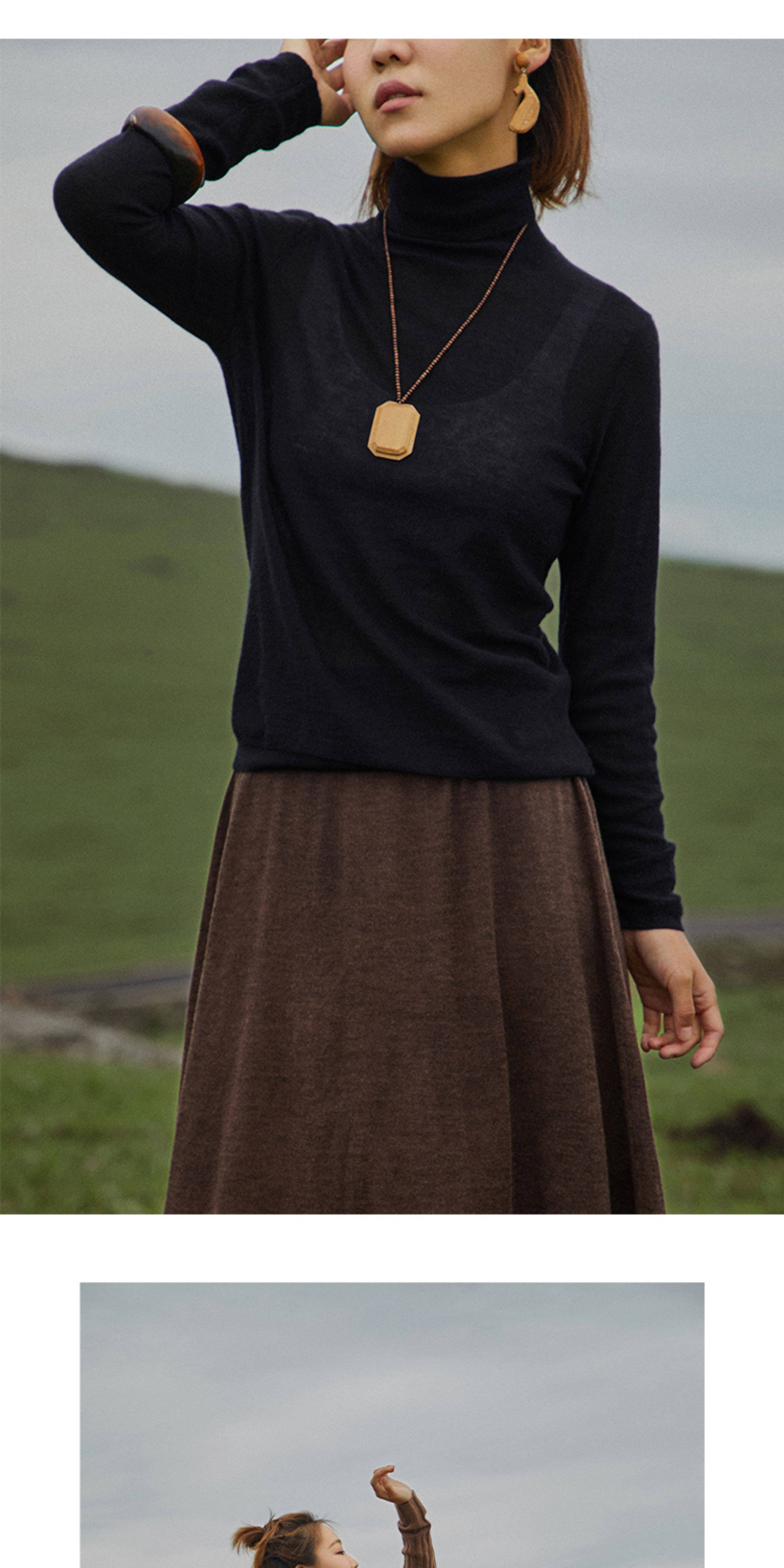 Say Ya【幻】輕薄彈力80支高領羊絨打底衫 零約束/修身/四季