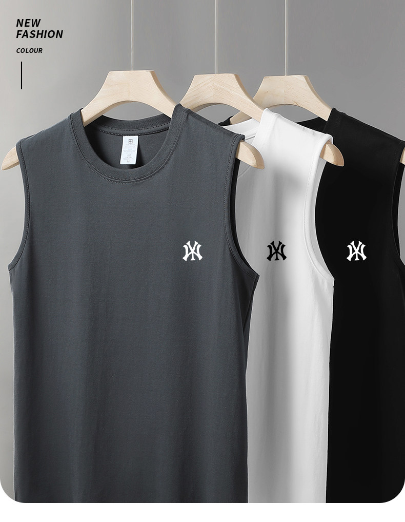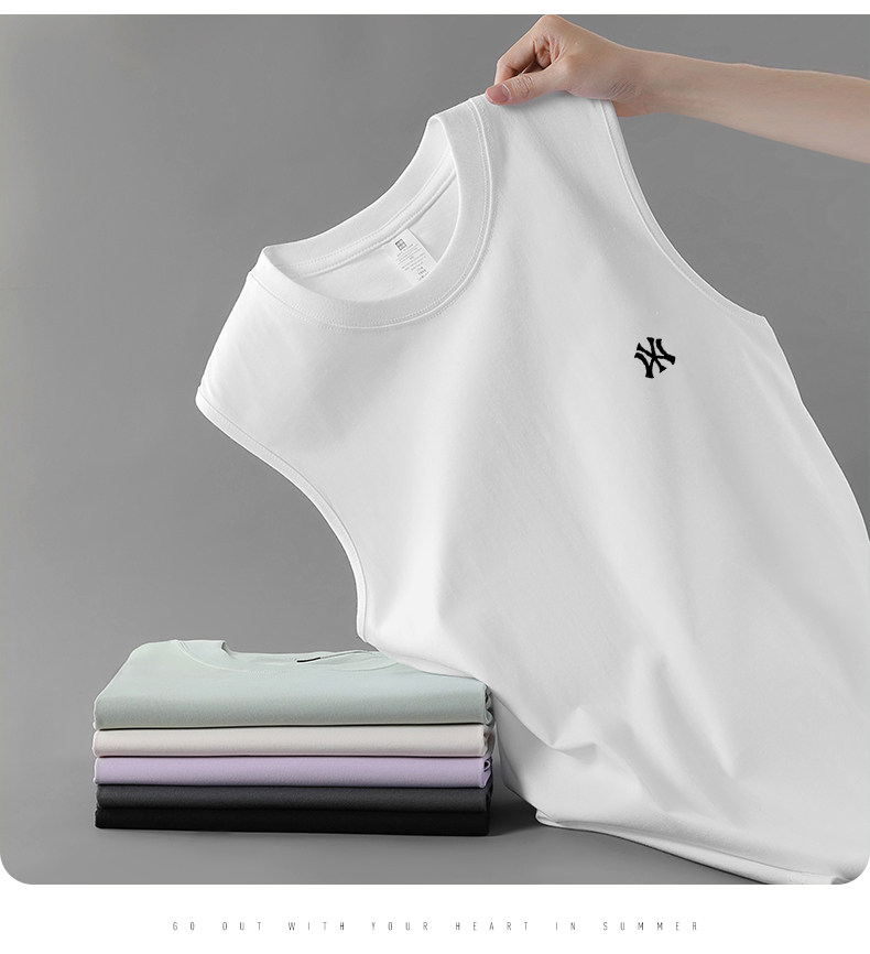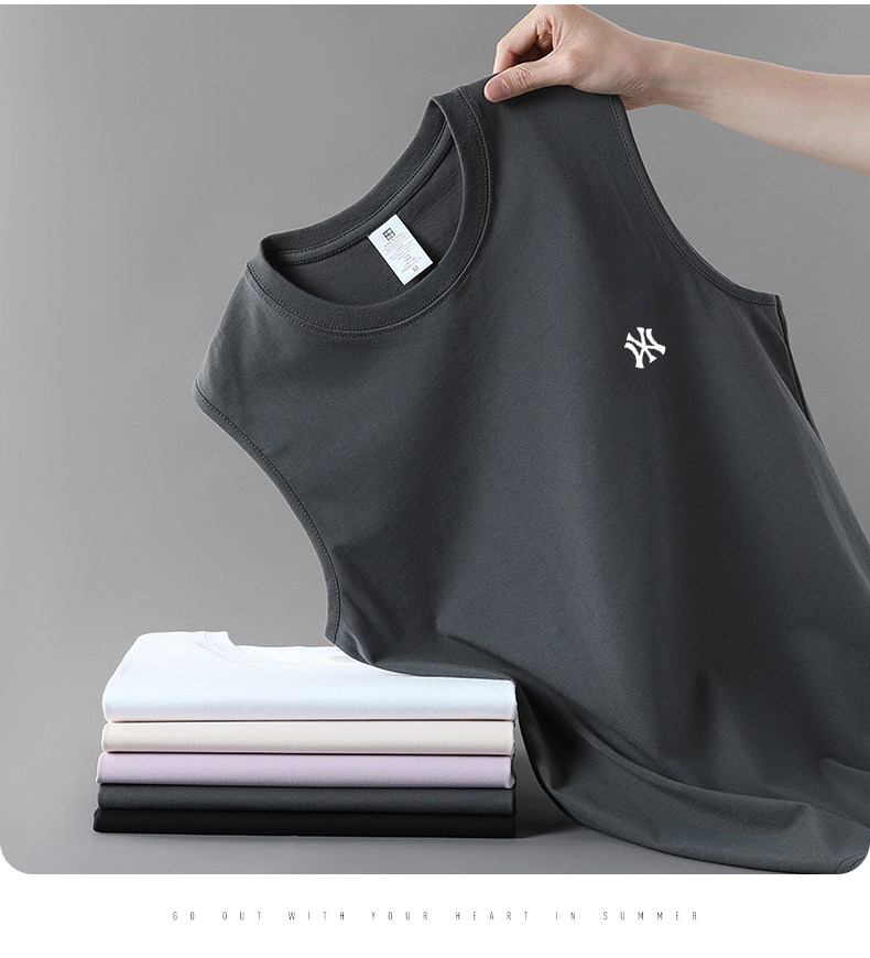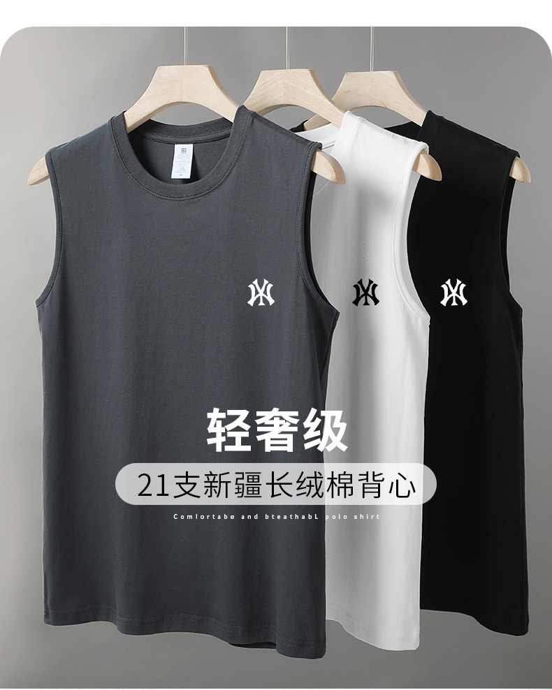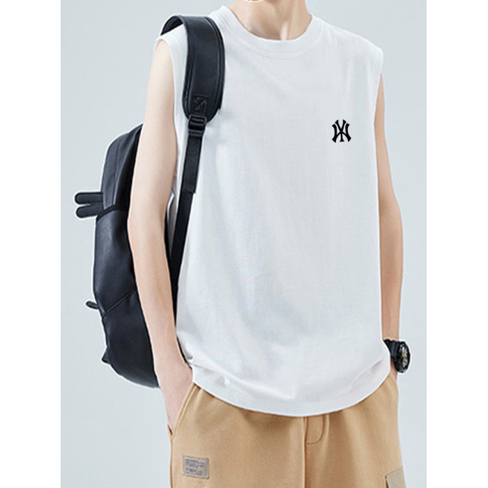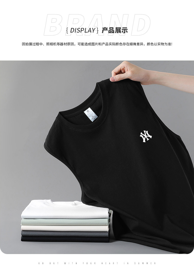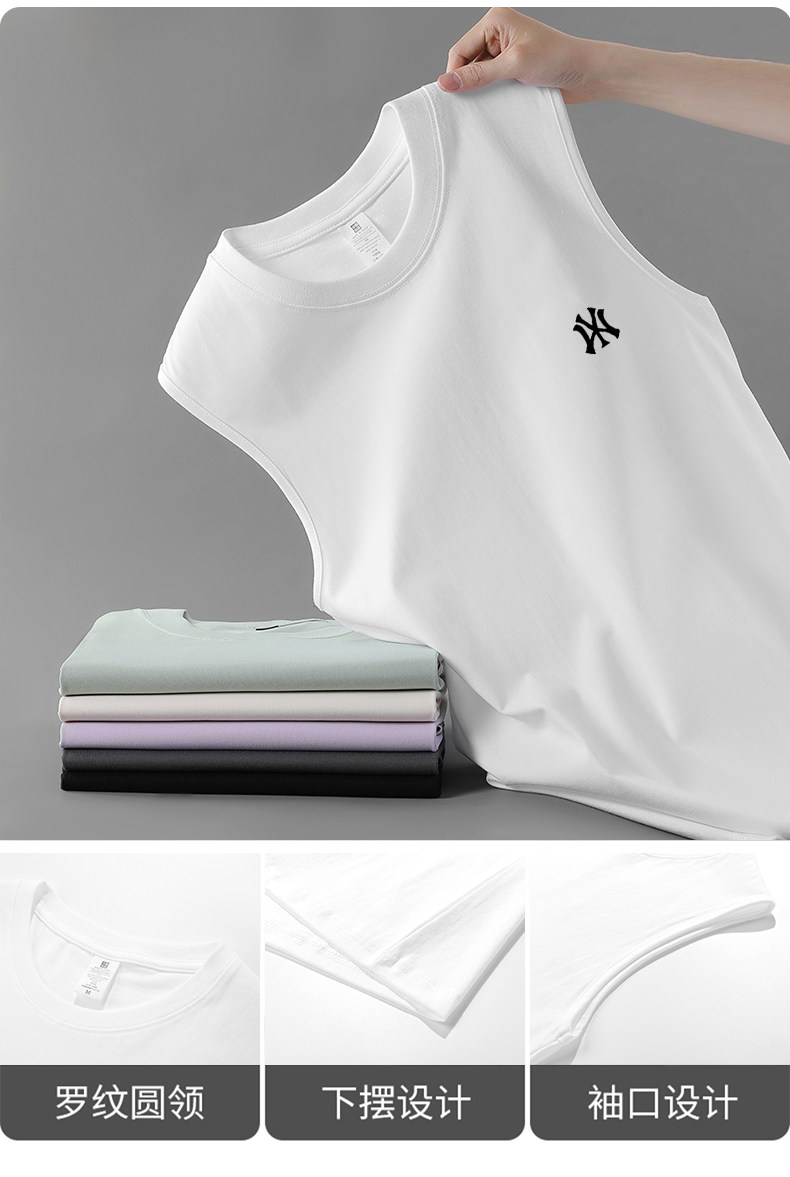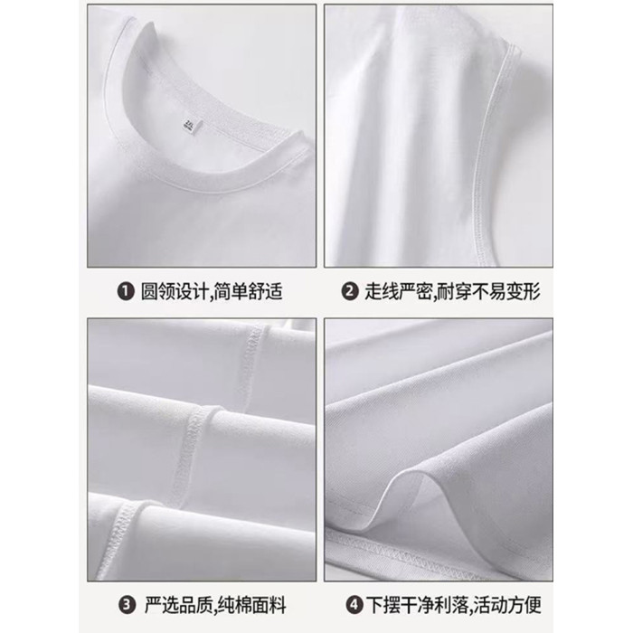 夏季100%純棉無袖t恤男青少年潮牌背心打底上衣休閒健身籃球運動
