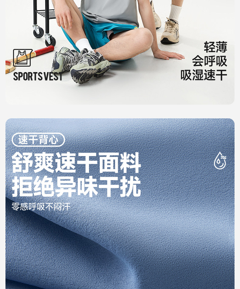 唐獅背心男款夏季簡約美式時尚無袖t恤青少年速乾5A抗菌跨欄坎肩