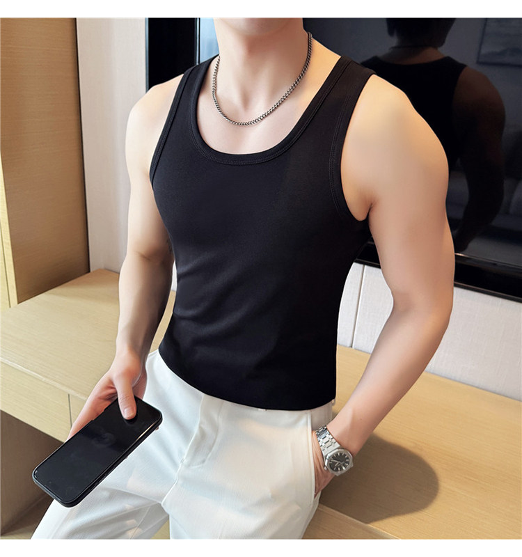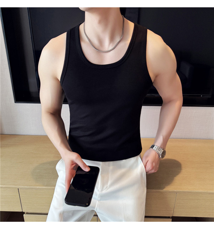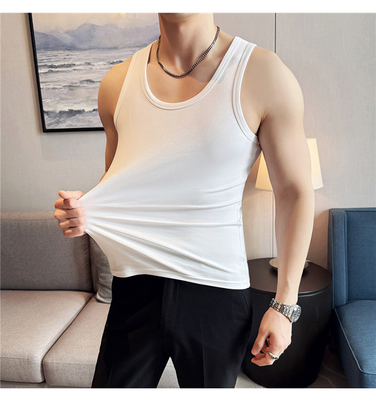 新疆長絨棉男士背心白色內搭純棉粗螺紋打底夏季男款運動健身汗衫