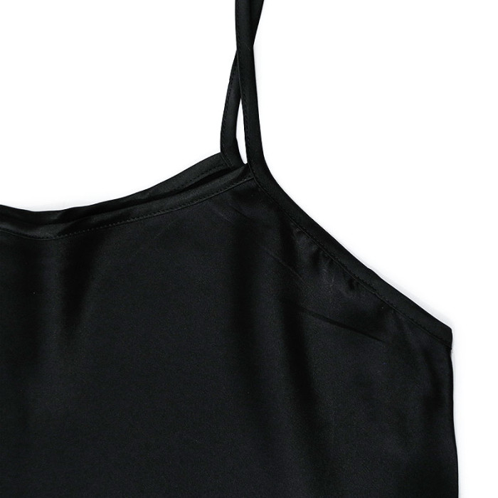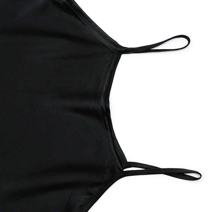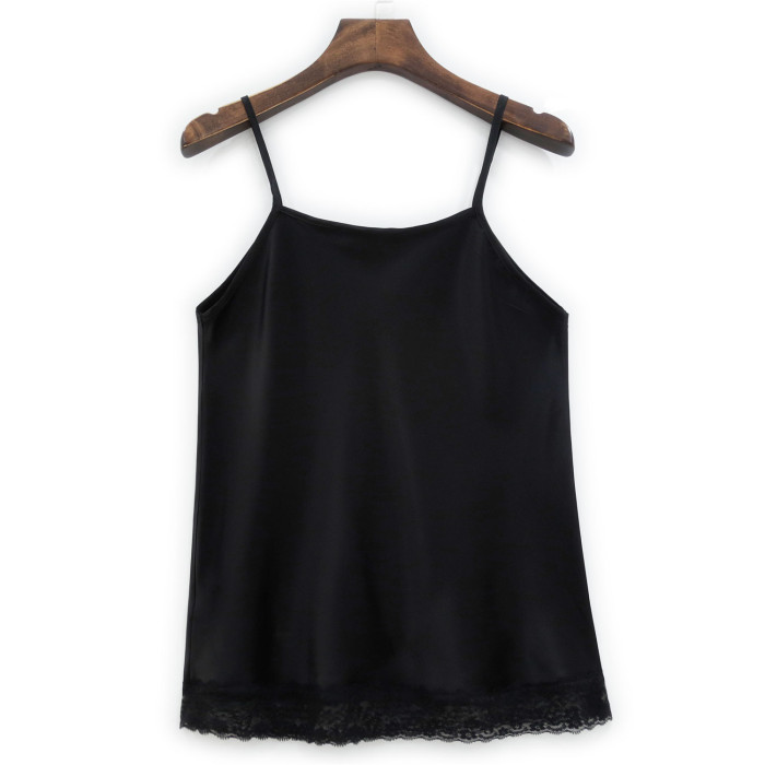 黑色綢緞蕾絲重磅桑蠶絲吊帶衫背心女斜裁真絲上衣打底衫顯瘦百搭