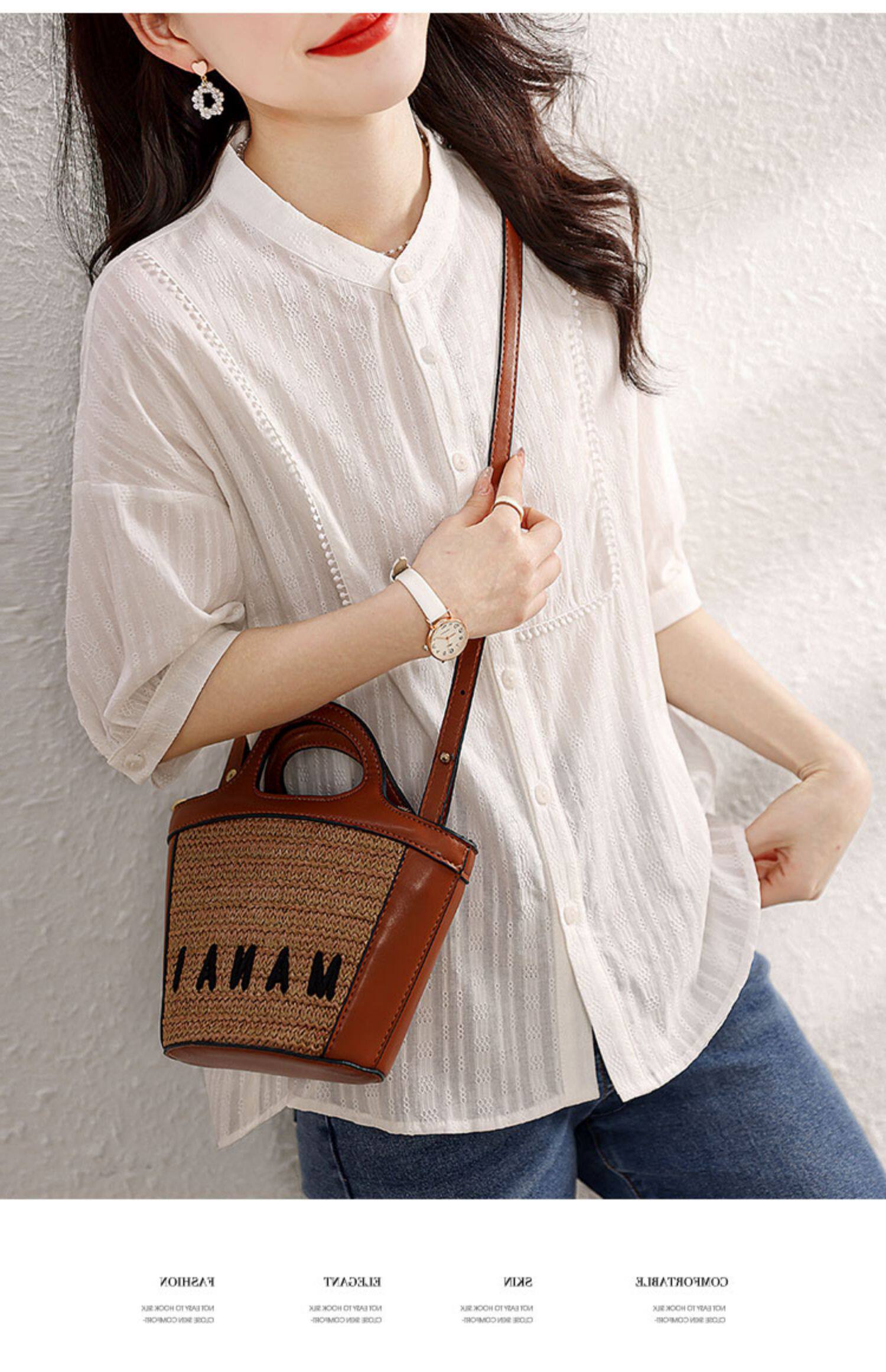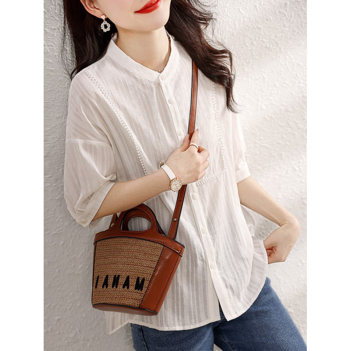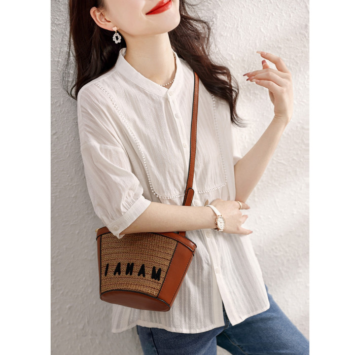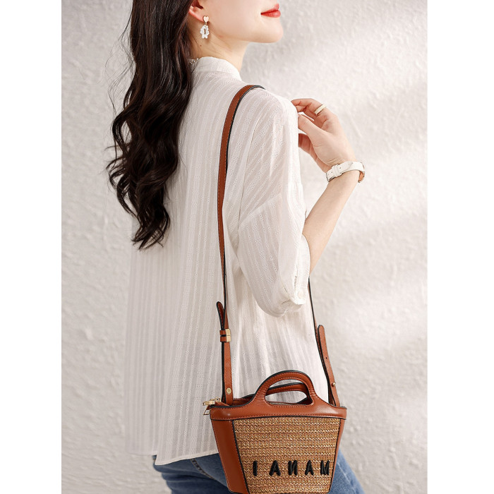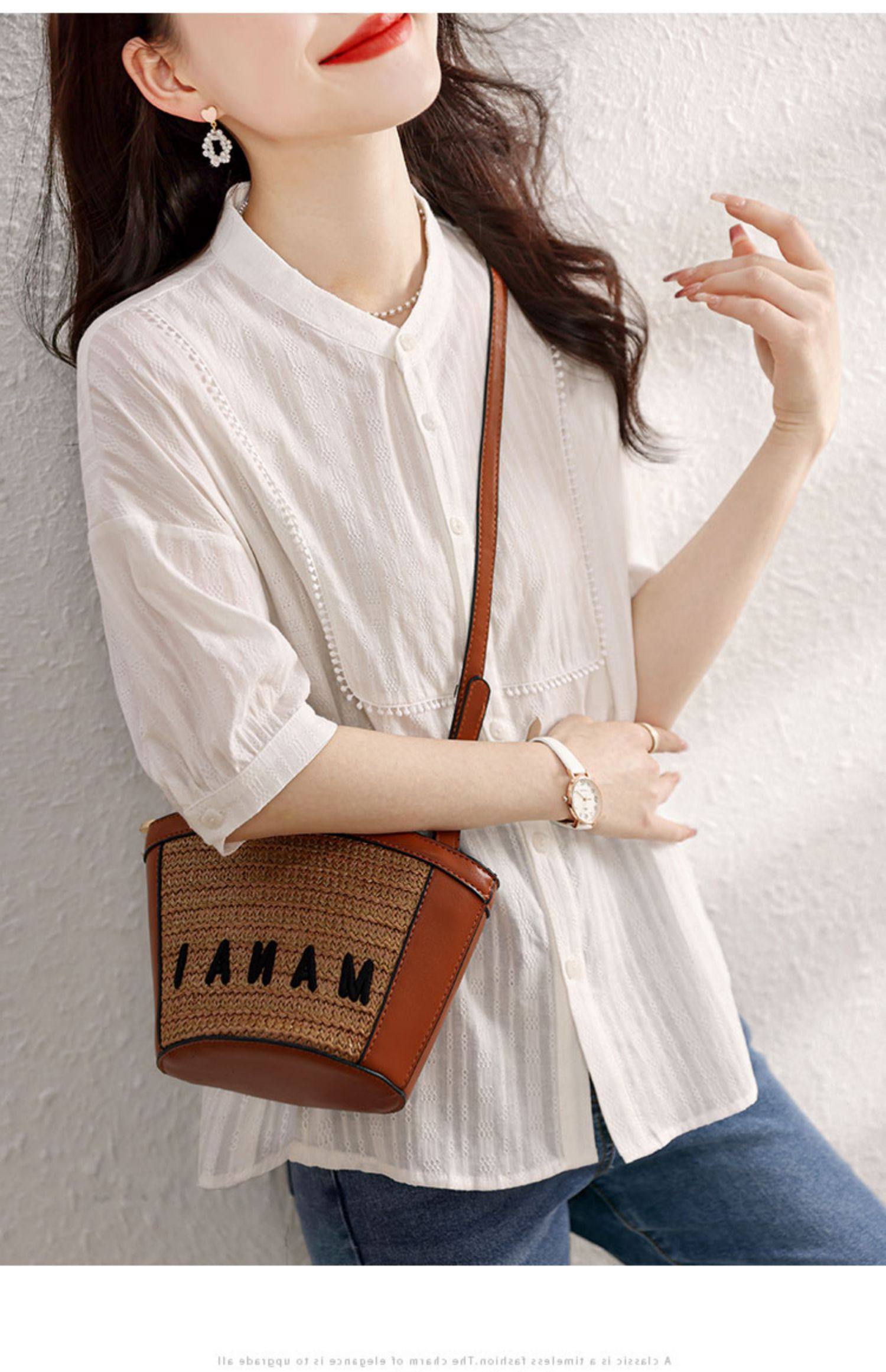 九月陌墨氣質減齡襯衫2024夏季新款百搭肌理上衣顯瘦五分袖女襯衣