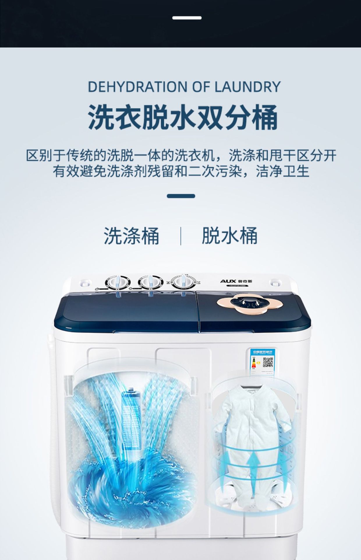 奧克斯大容量雙桶雙缸老式家用小型宿捨租房甩乾迷你半自動洗衣機
