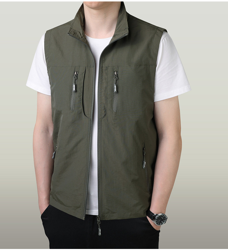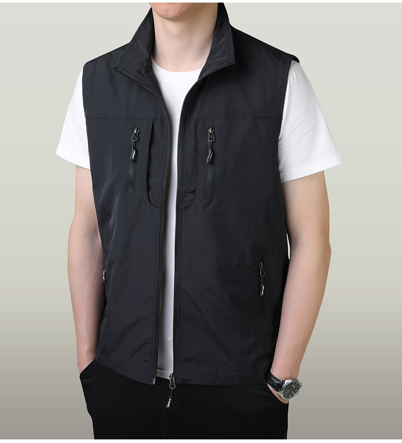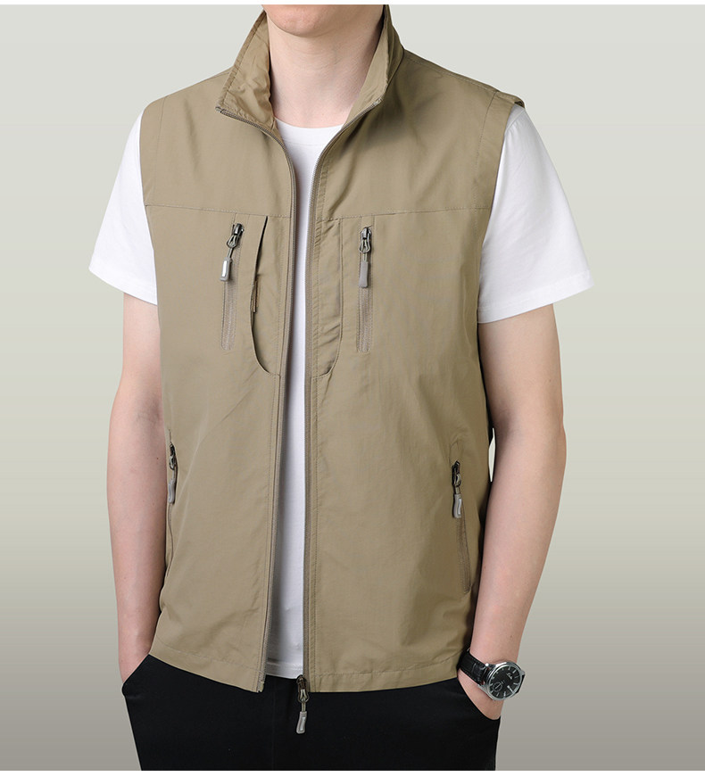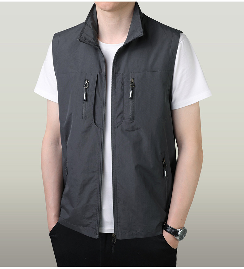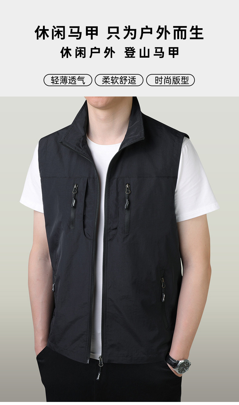 BILENLOO品牌釣魚馬甲男中年時尚夏季休閒寬鬆大碼工裝外套立領薄