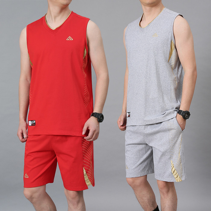 背心短褲套裝男純棉透氣加肥加大中年休閒晨練運動跑步健身籃球服