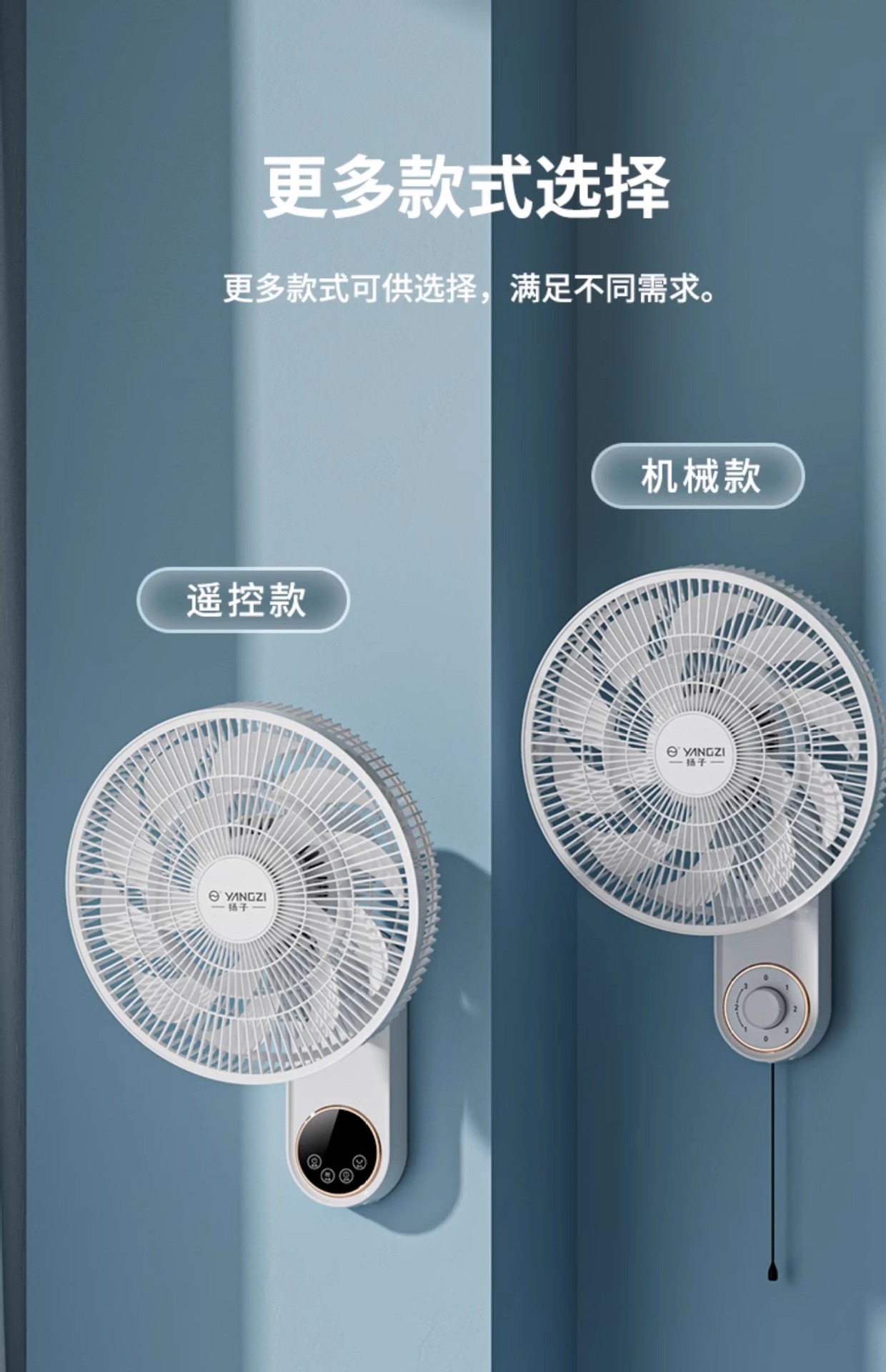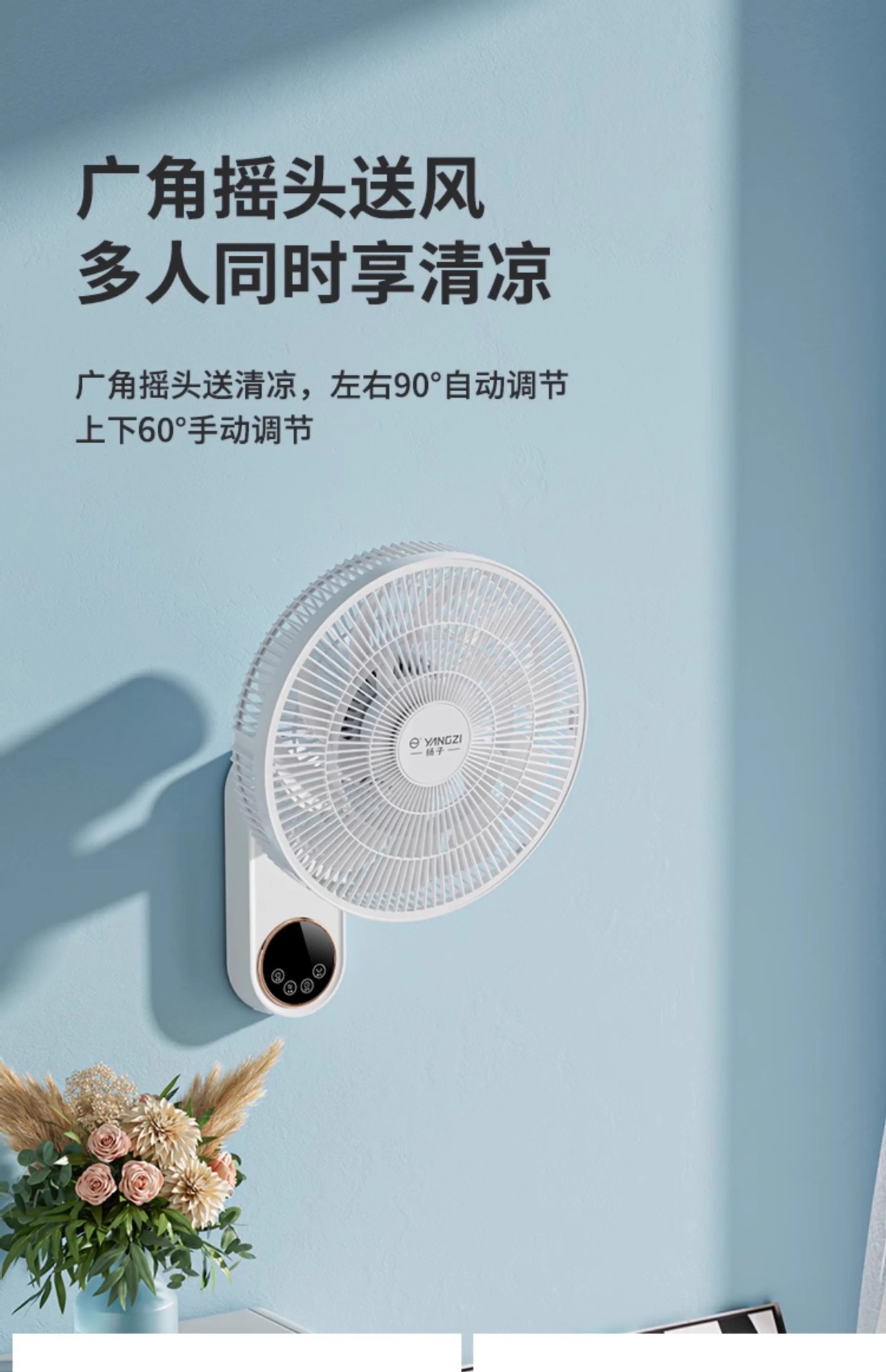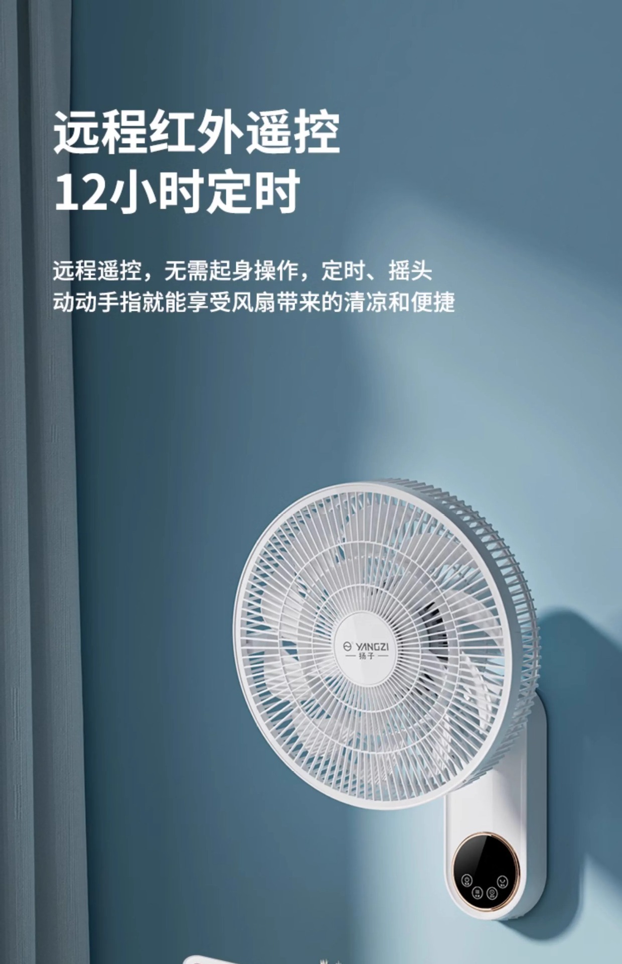 YANGZI璧扇掛壁式電風扇家用強大風力掛扇小型搖頭掛牆壁風扇壁扇