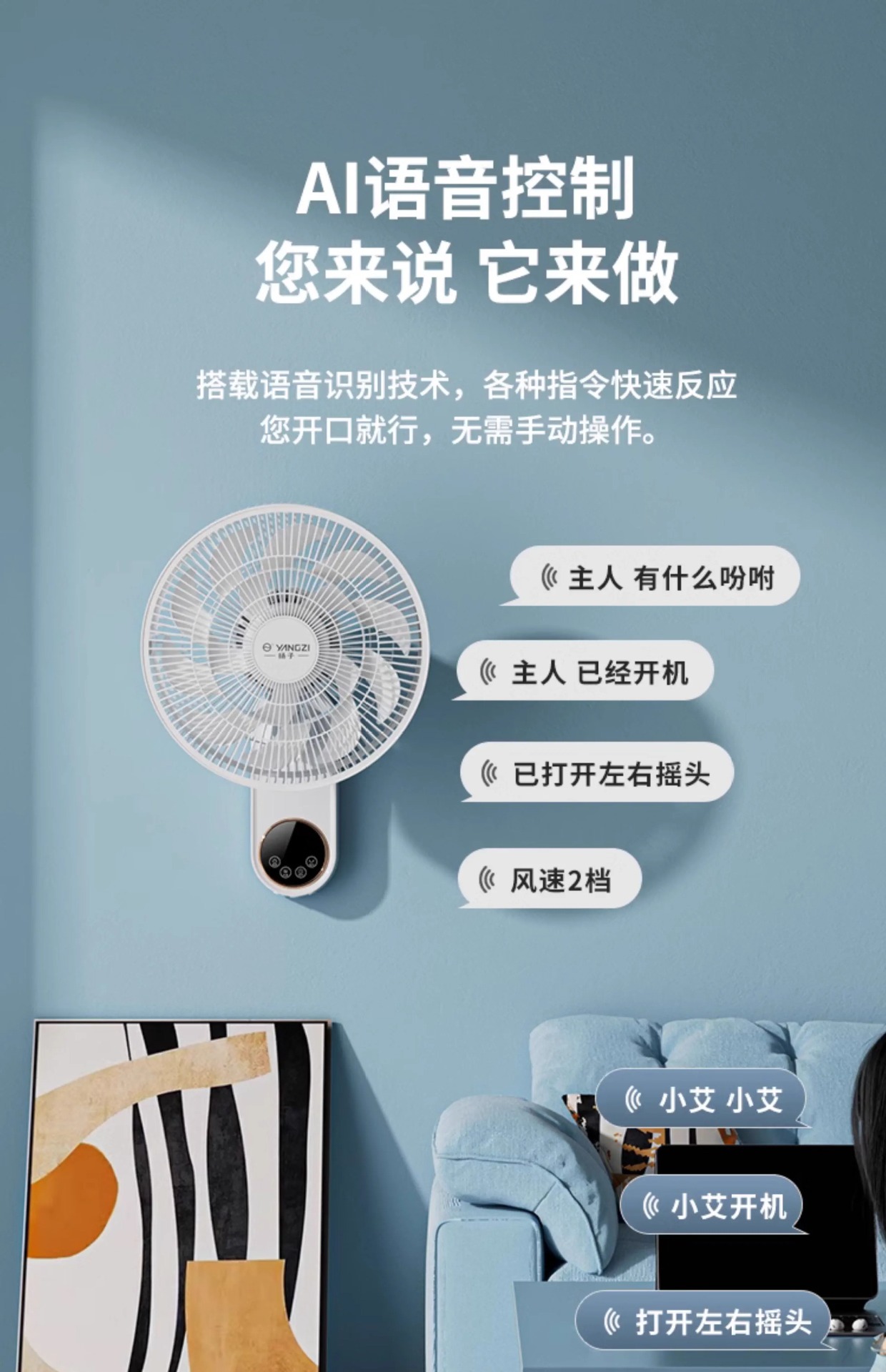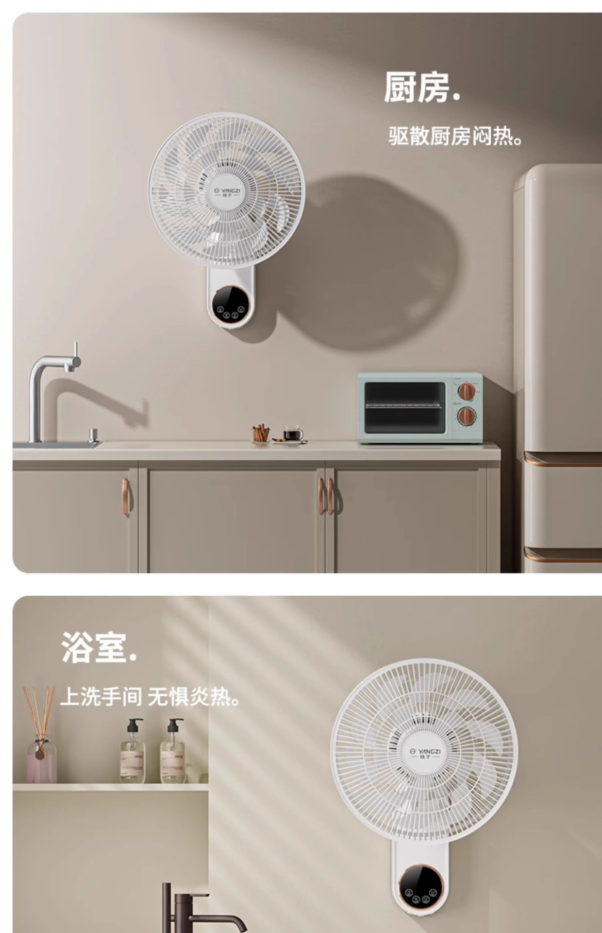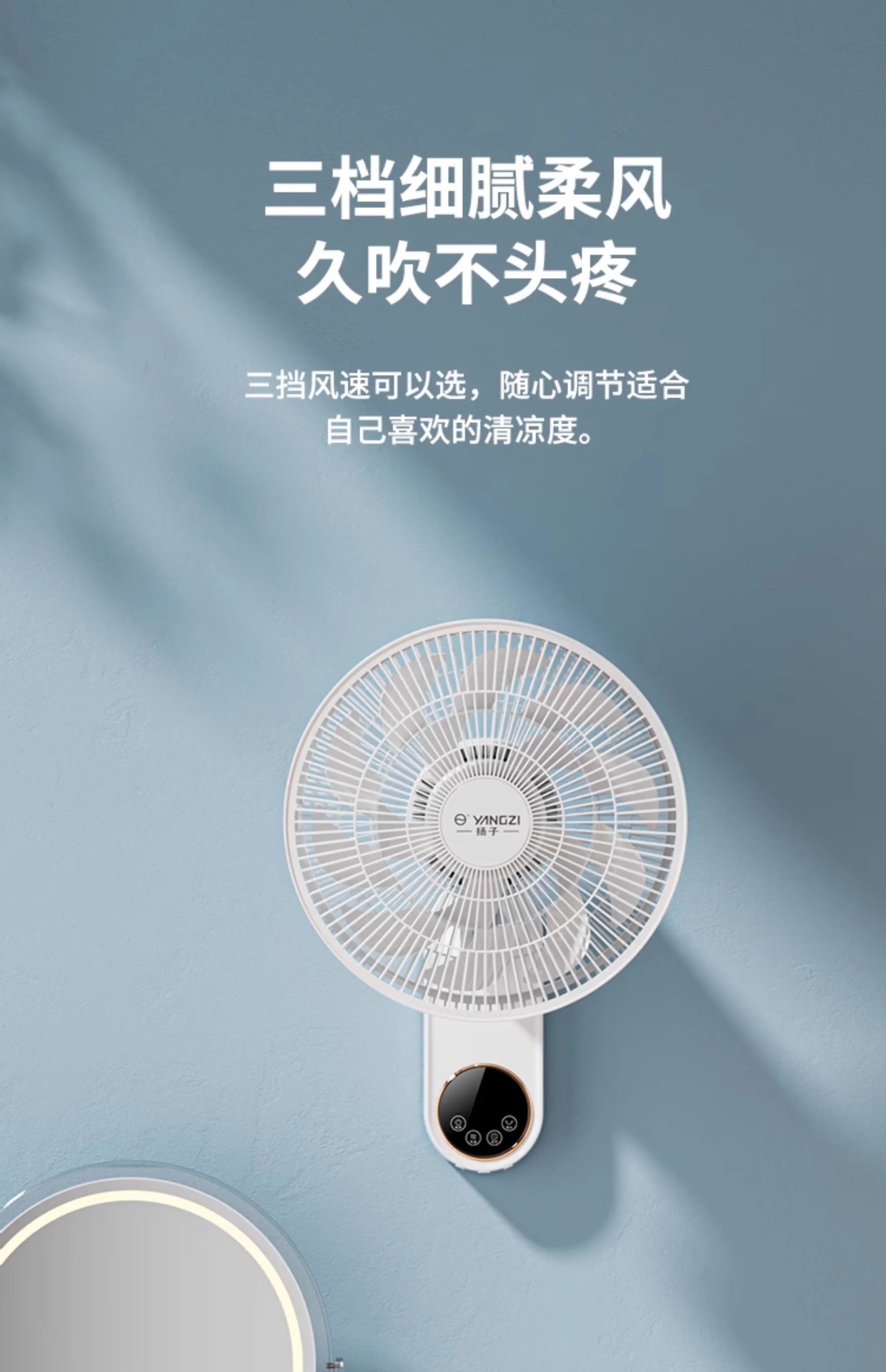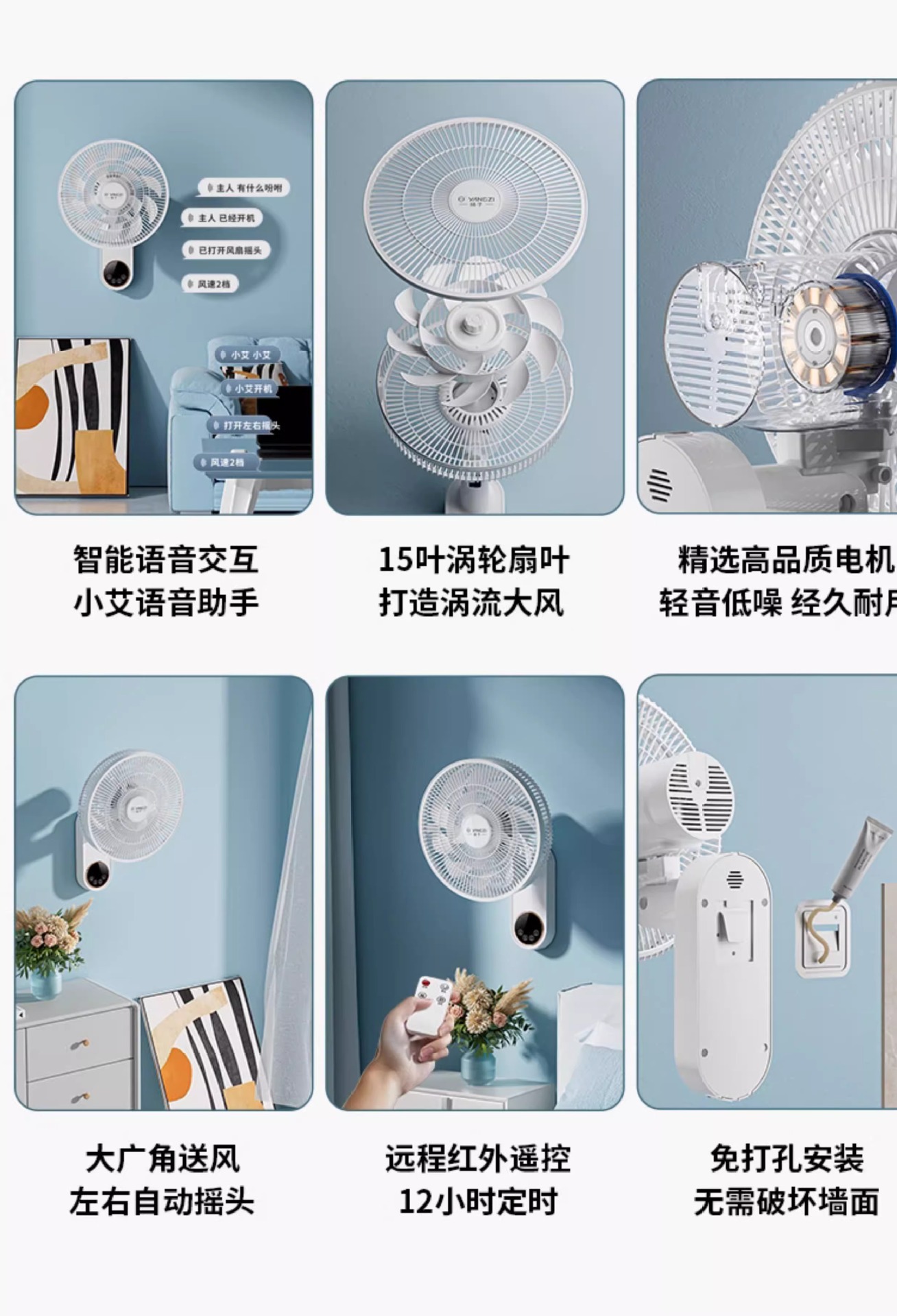 YANGZI璧扇掛壁式電風扇家用強大風力掛扇小型搖頭掛牆壁風扇壁扇