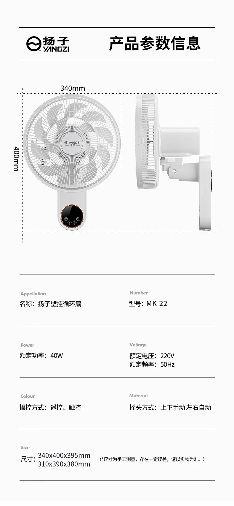 | 風扇種類 | 壁扇 |