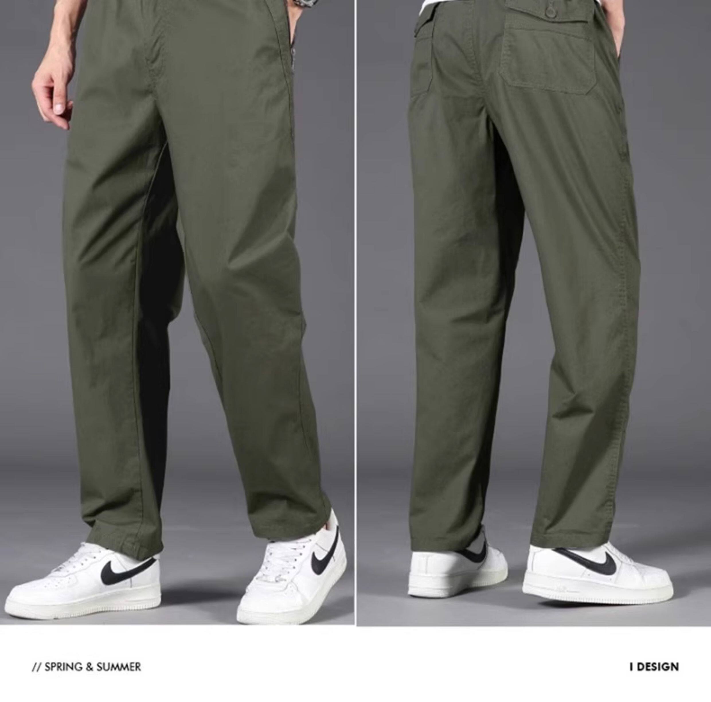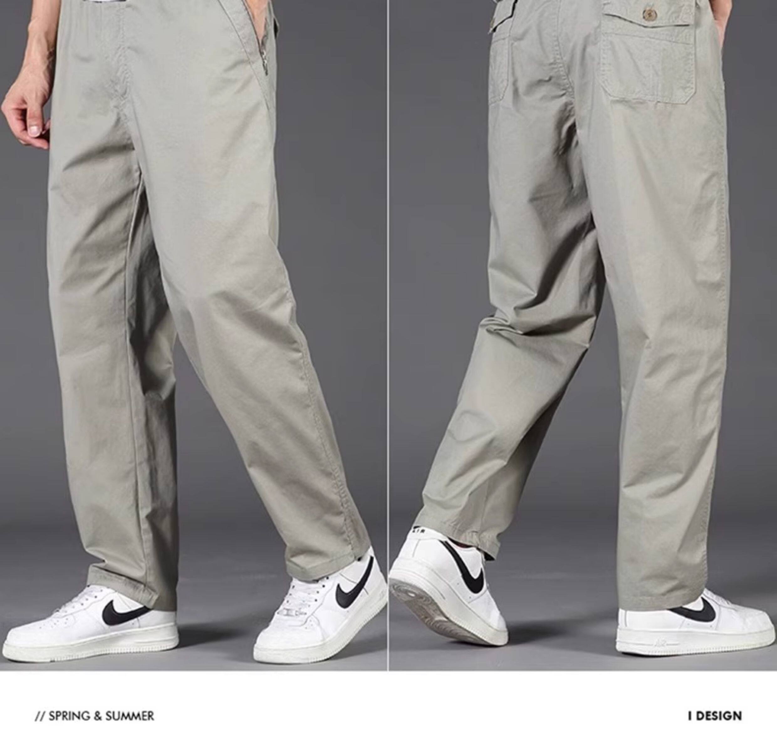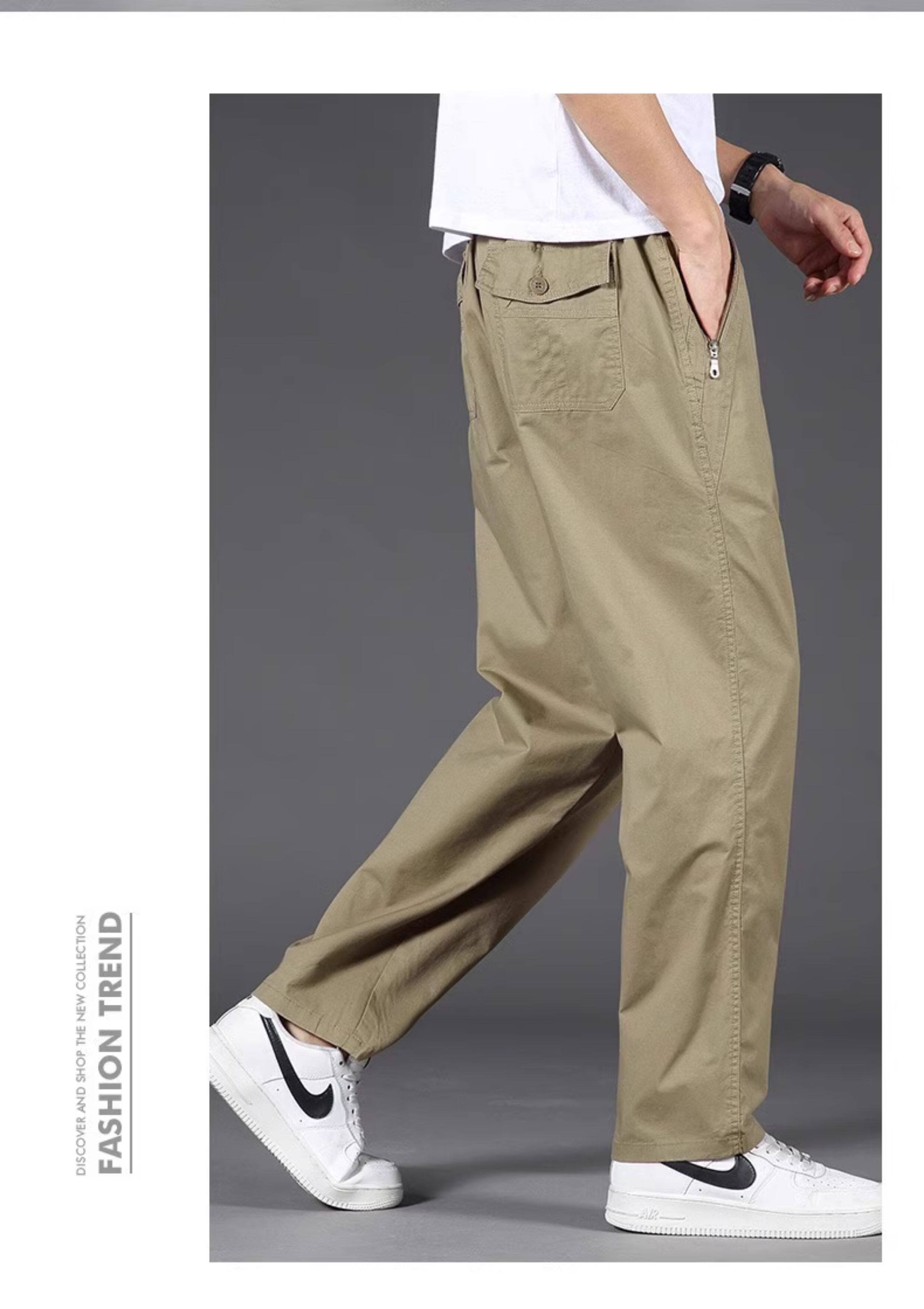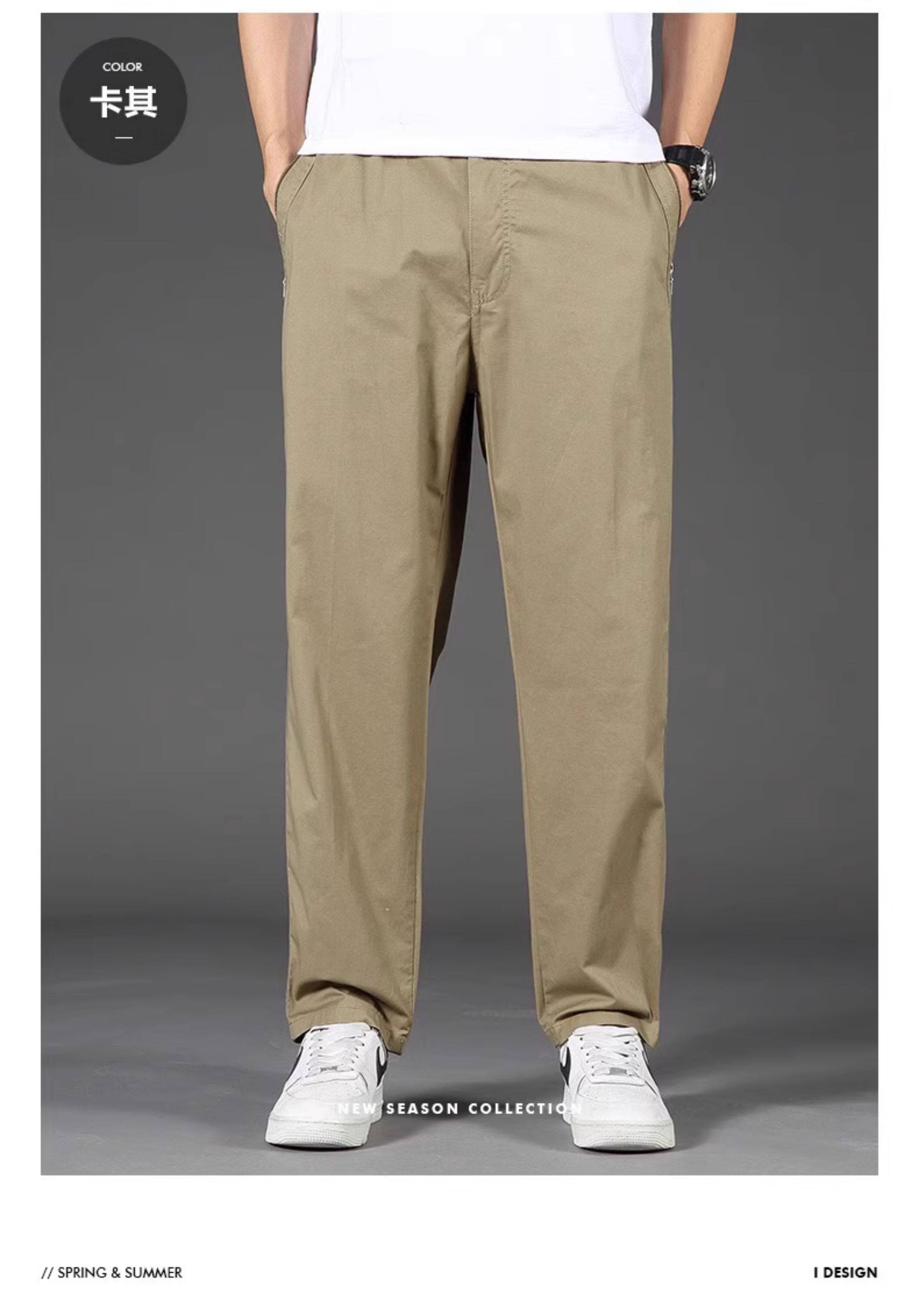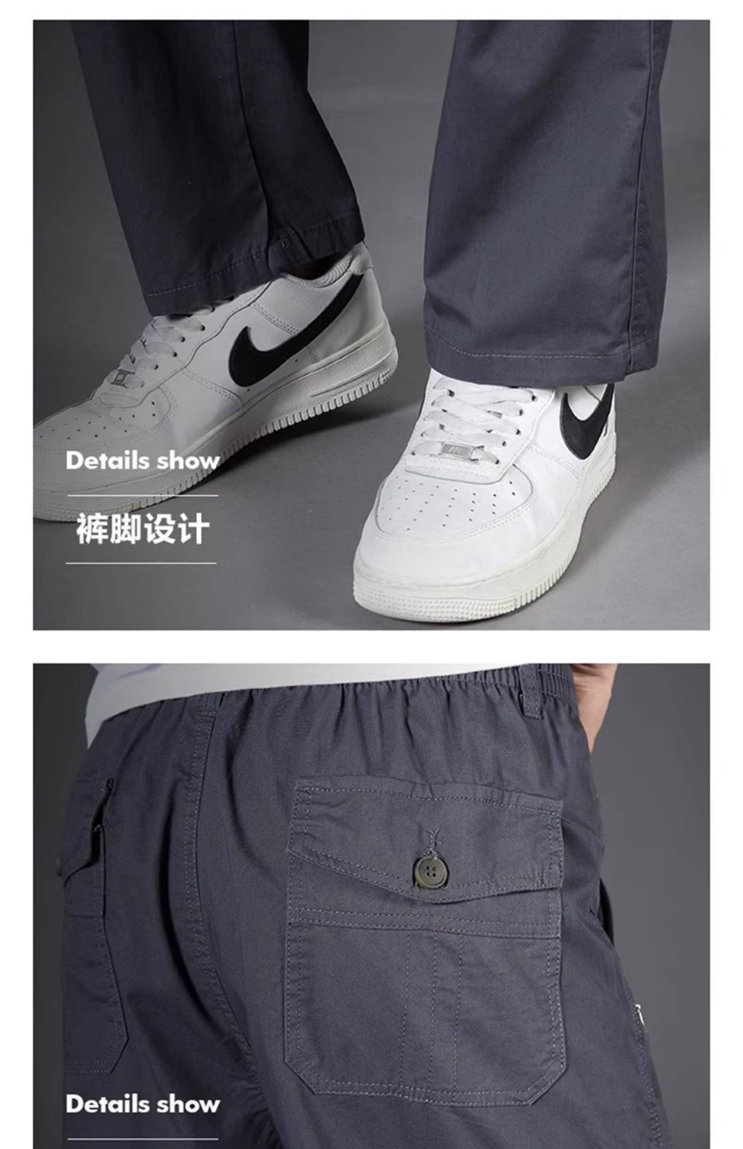 啄木鳥春夏季新款純棉休閒褲男士寬鬆運動工裝褲中年爸爸長褲子K