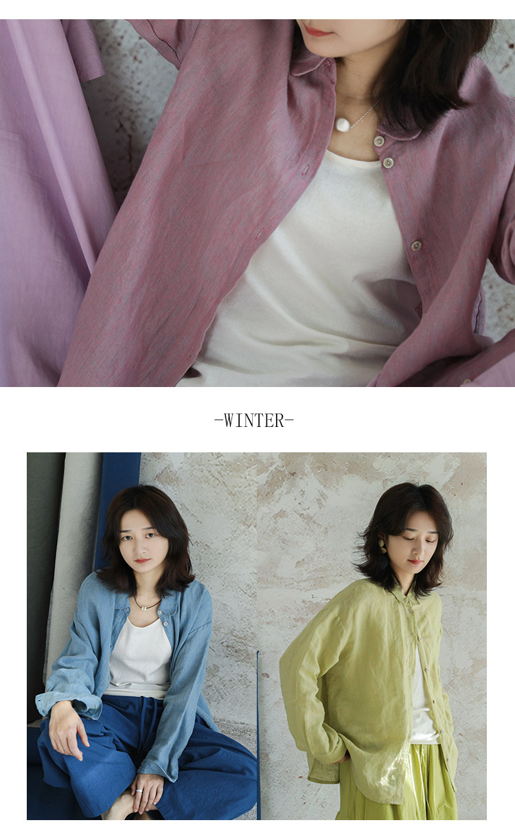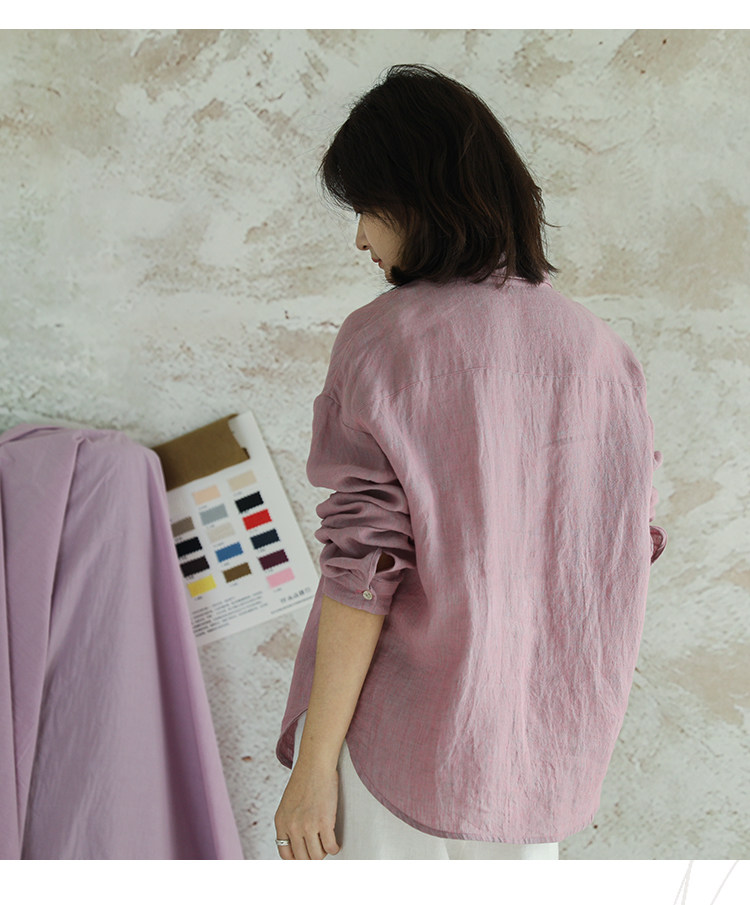 塵染純色輕薄襯衫女2026秋新款高級色織漢麻休閒襯衣高級小衆上衣
