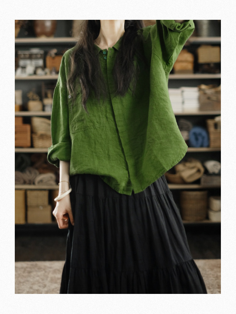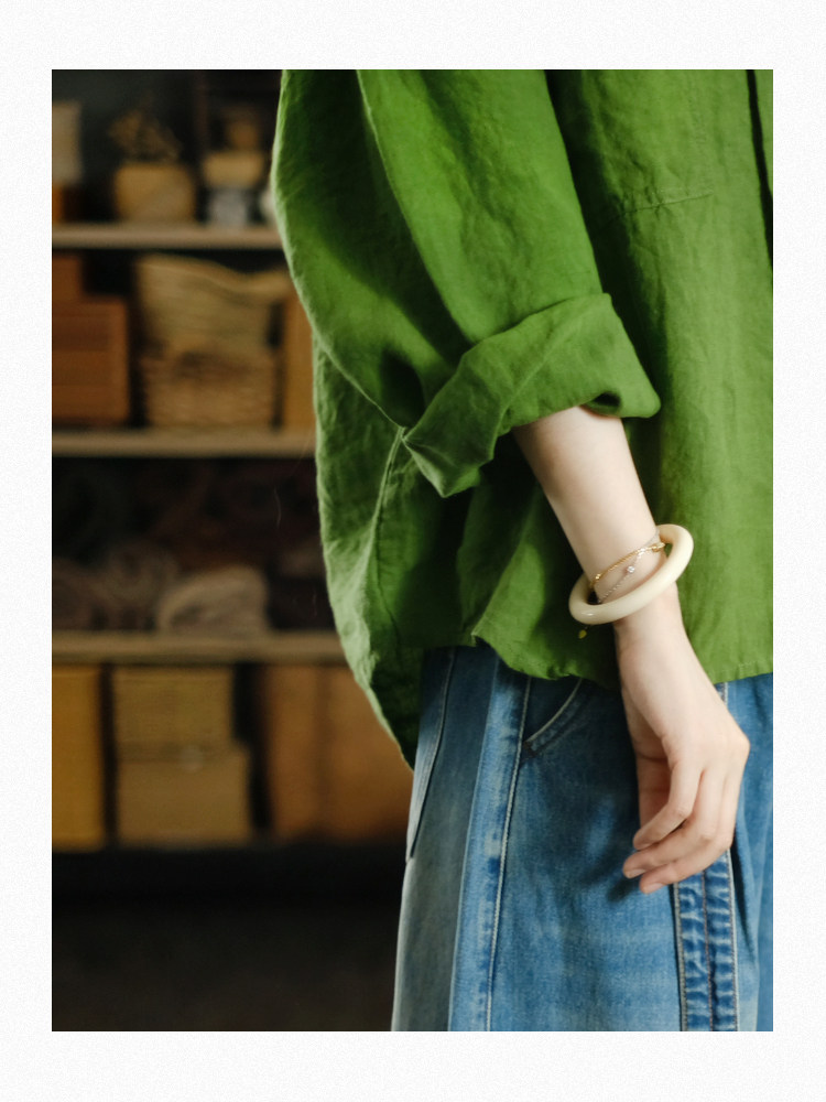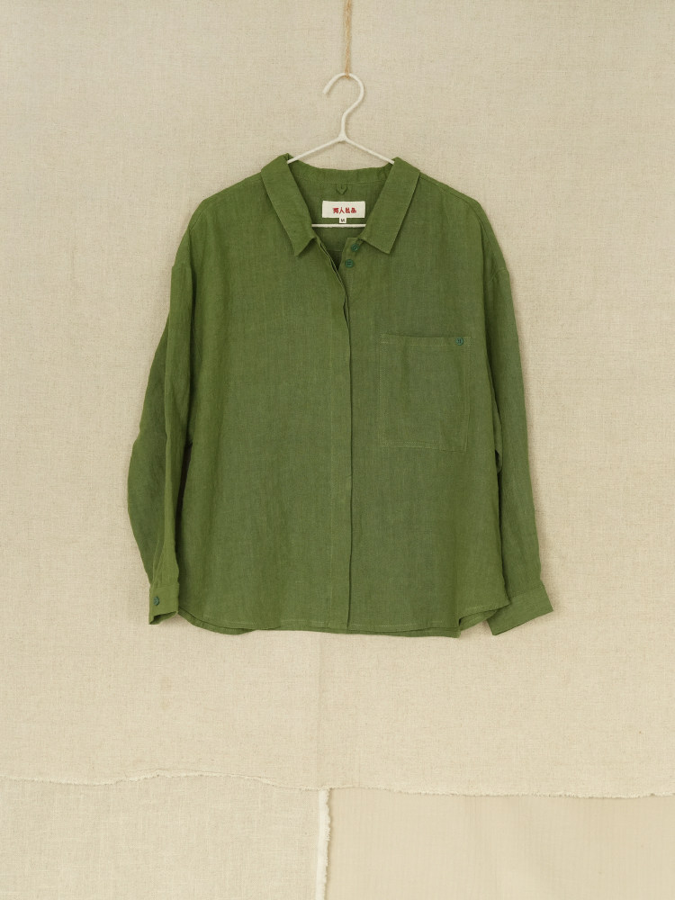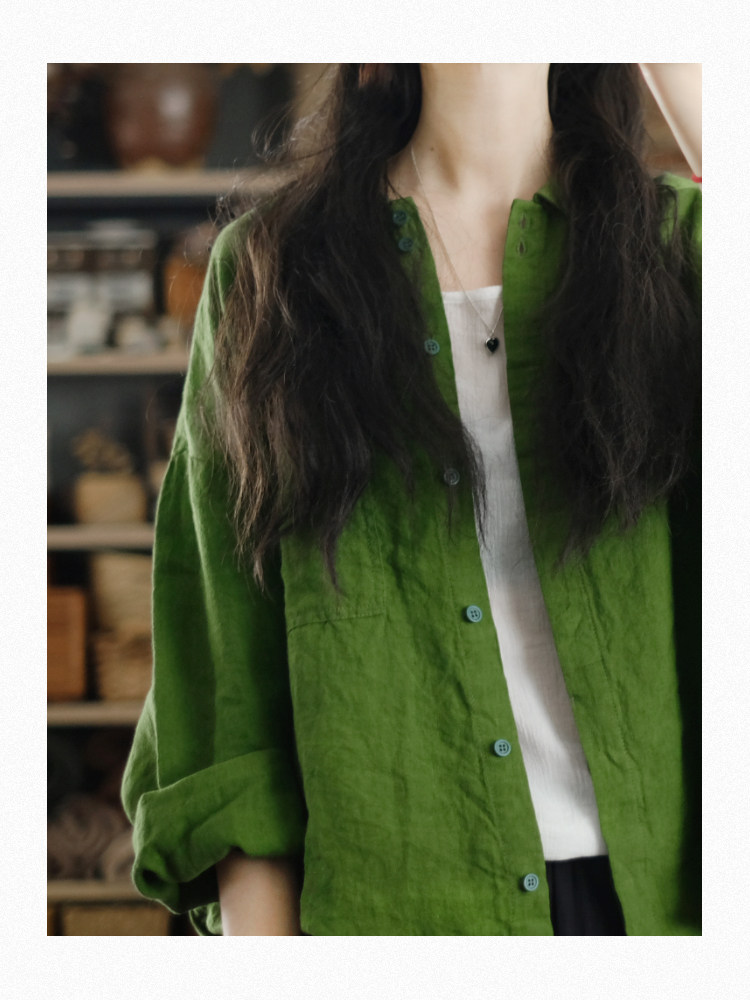 兩人出品LRCP | 溫柔招展 | 展綠純亞麻寬鬆襯衫