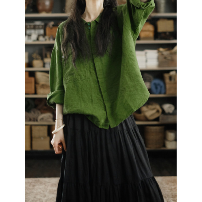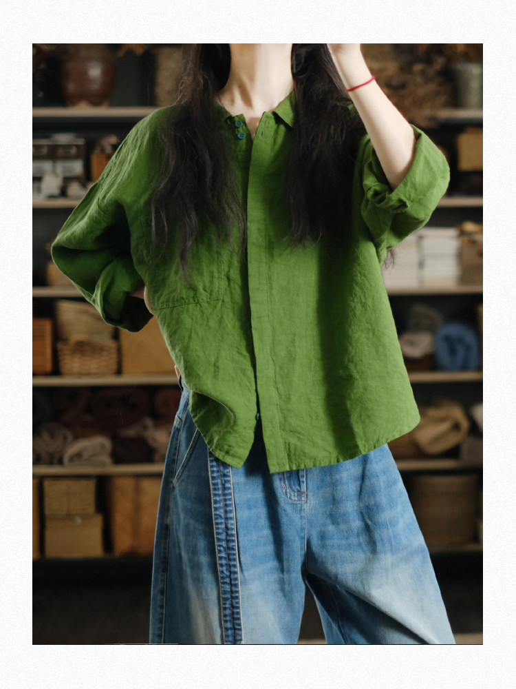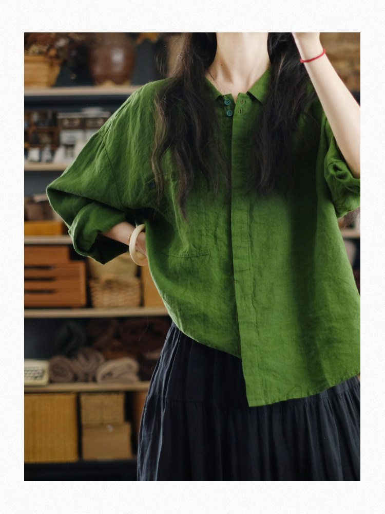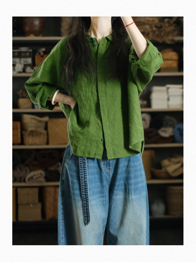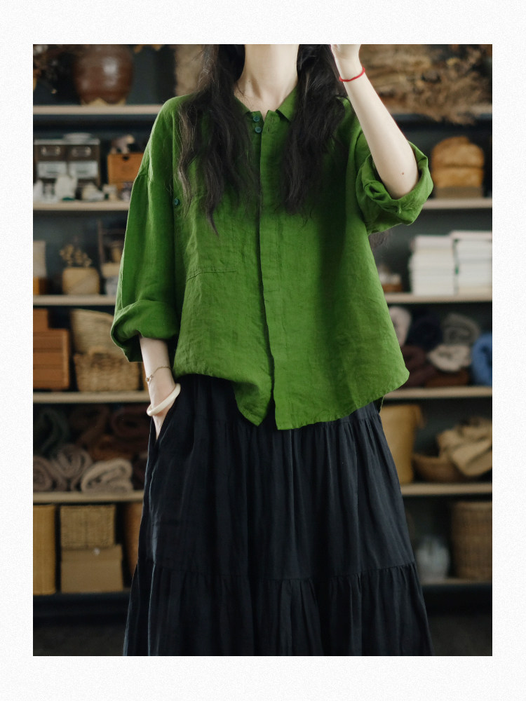 兩人出品LRCP | 溫柔招展 | 展綠純亞麻寬鬆襯衫
