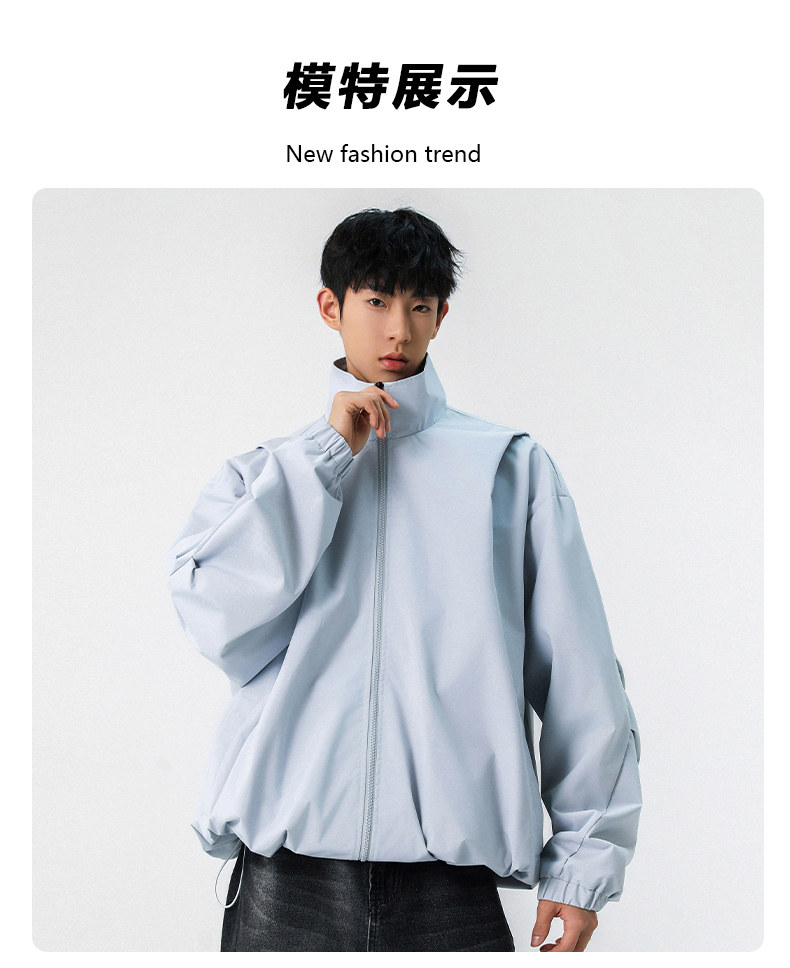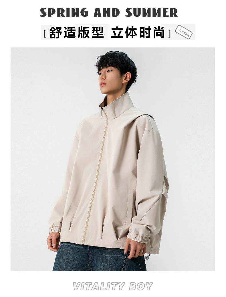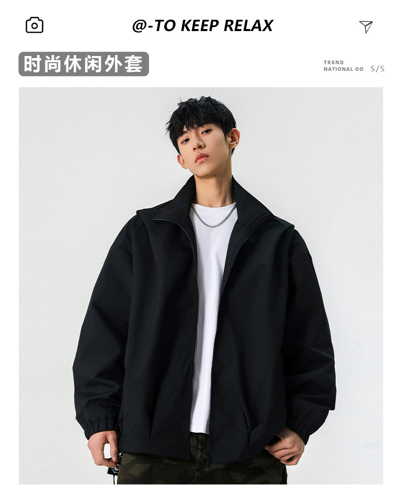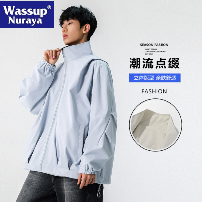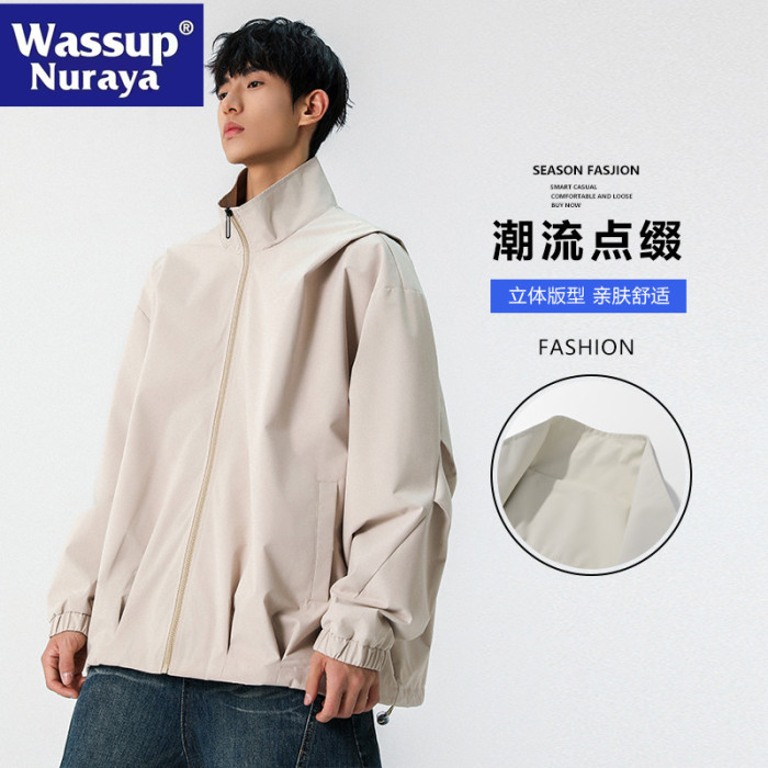 WASSUP NURAYA春秋新款立領夾克男休閒工裝青年學生防風純色外套