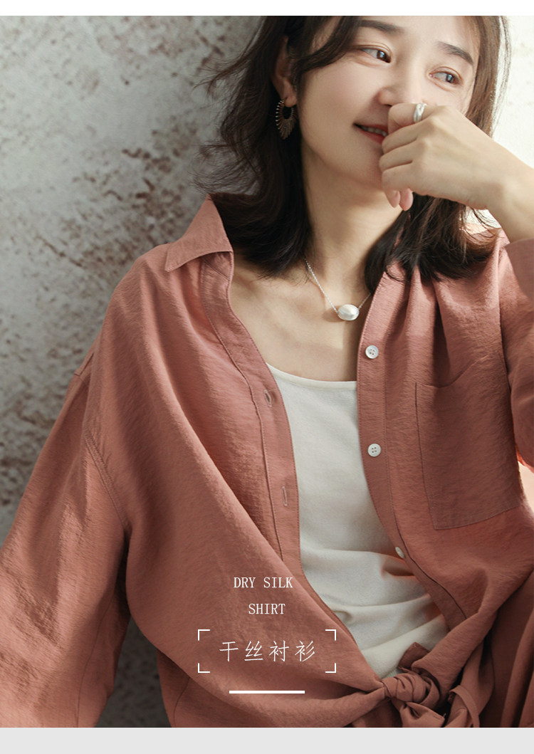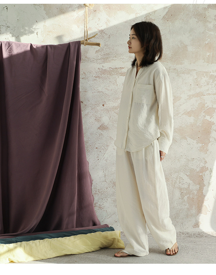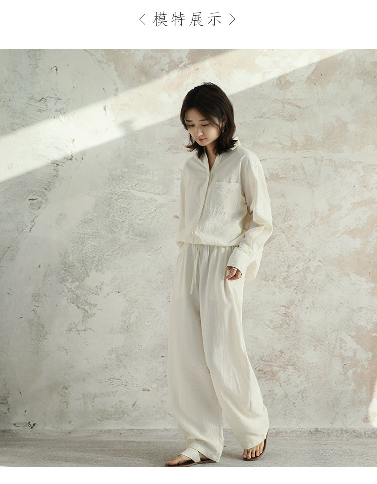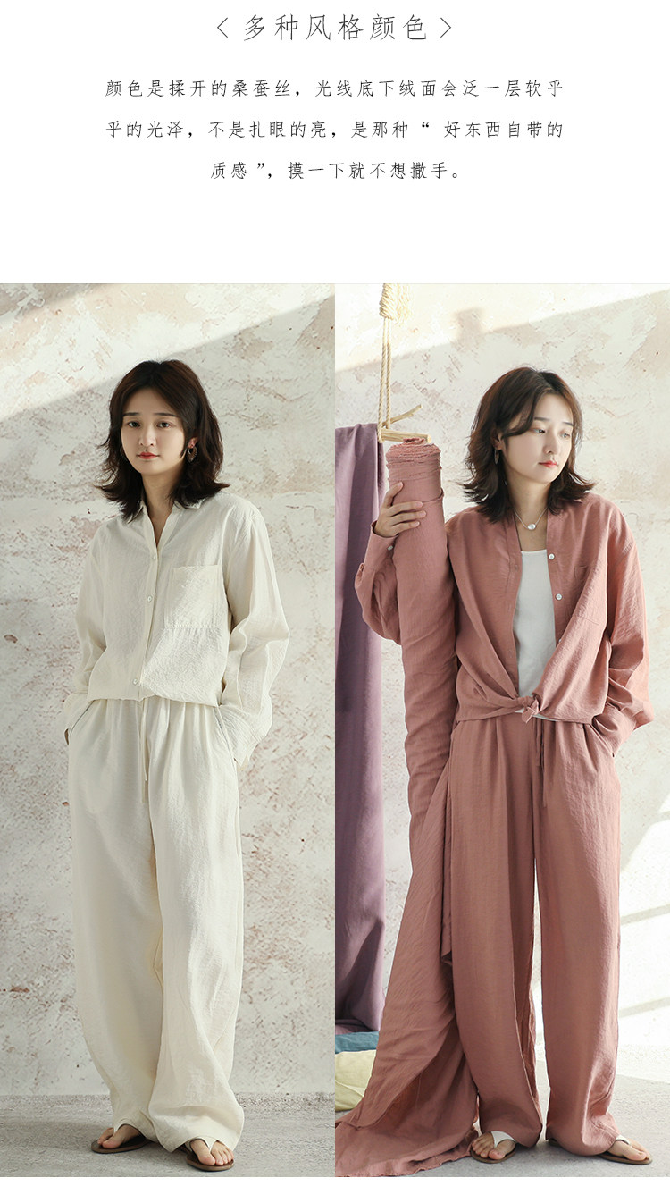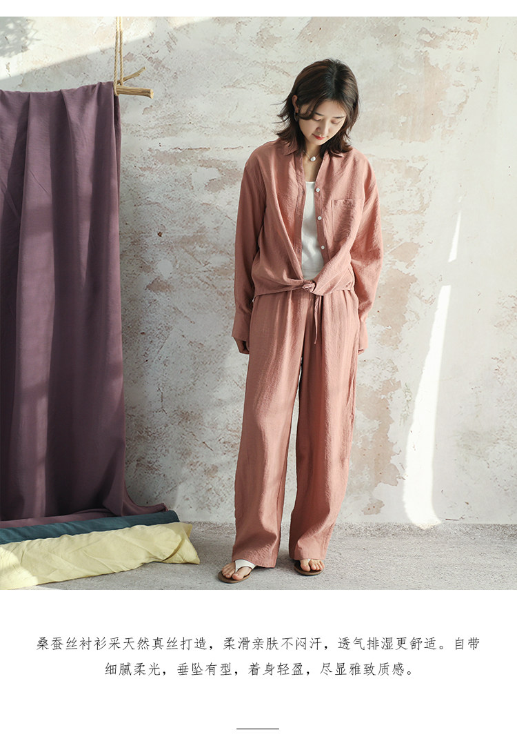 塵染清冷松弛感套裝女2026夏季新款Polo領桑蠶絲襯衫乾絲寬鬆褲子