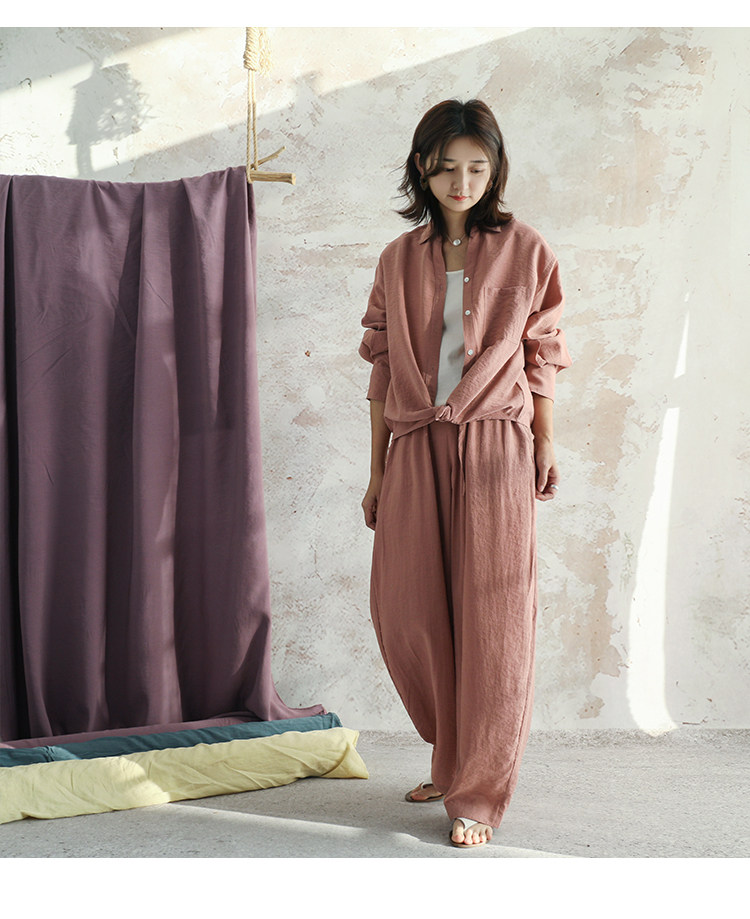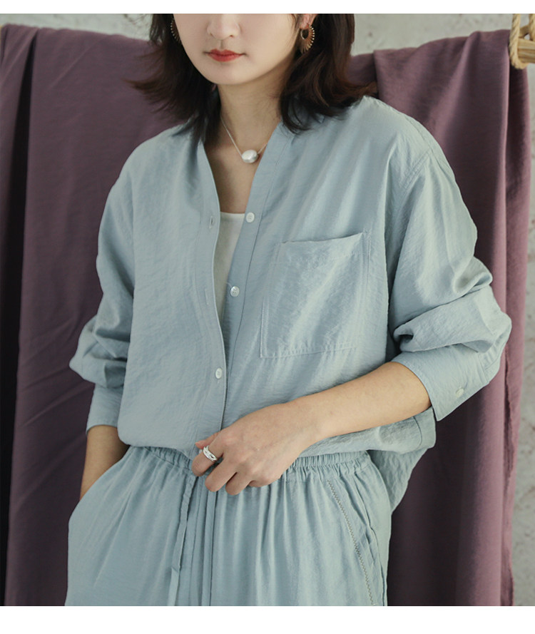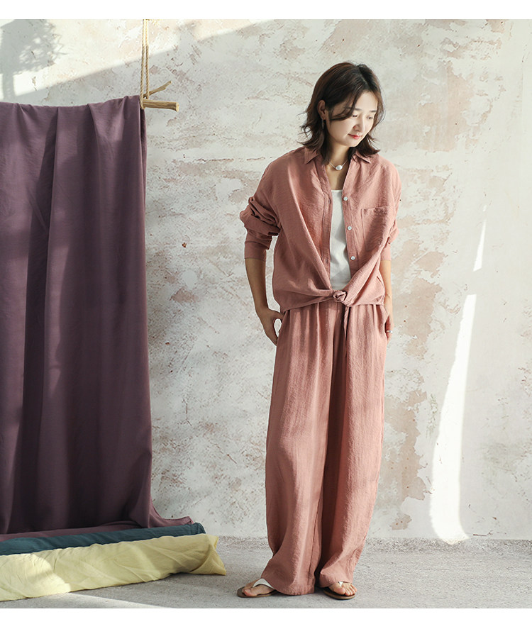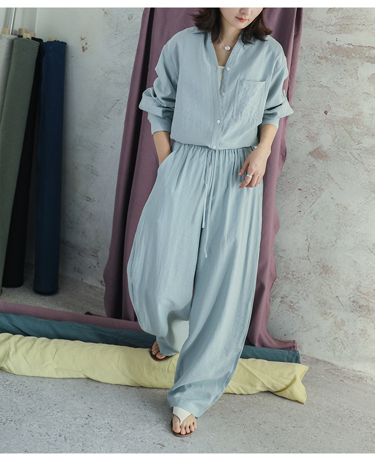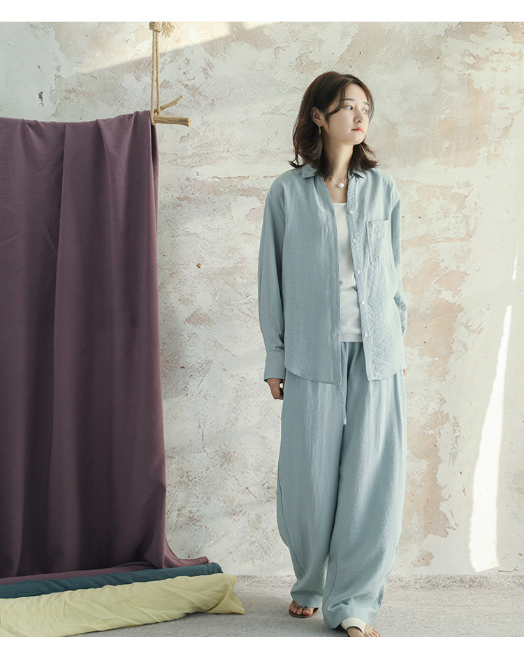 塵染清冷松弛感套裝女2026夏季新款Polo領桑蠶絲襯衫乾絲寬鬆褲子