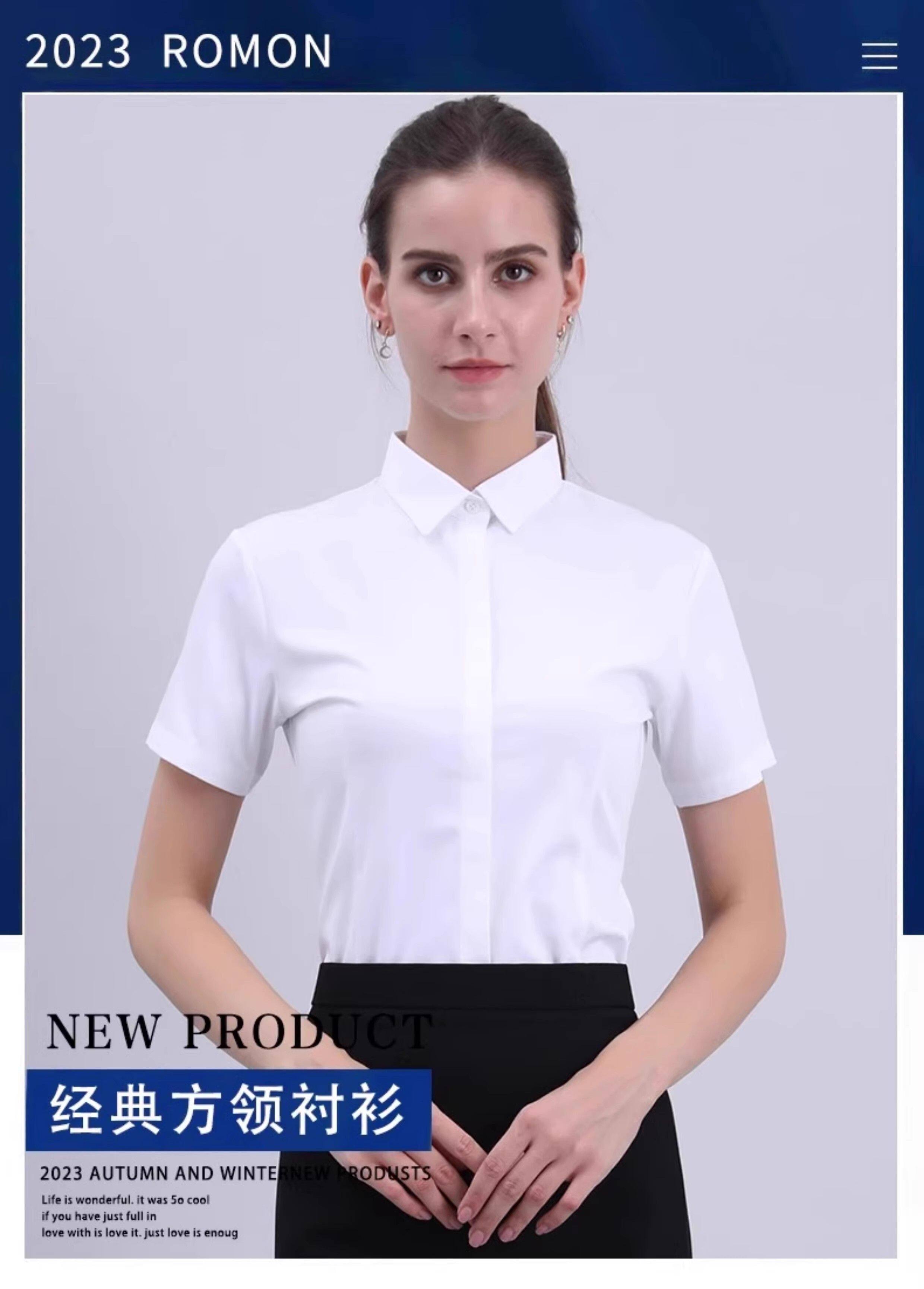 羅矇方領白襯衫女短袖夏竹纖維氣質職業正裝通勤工作服免燙藍襯衣