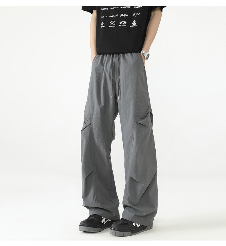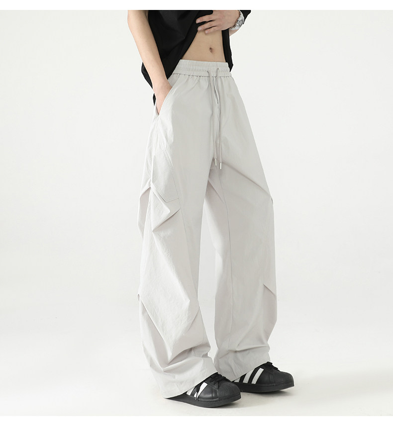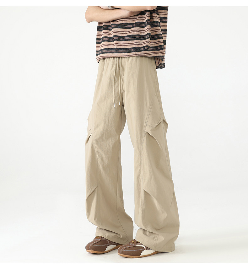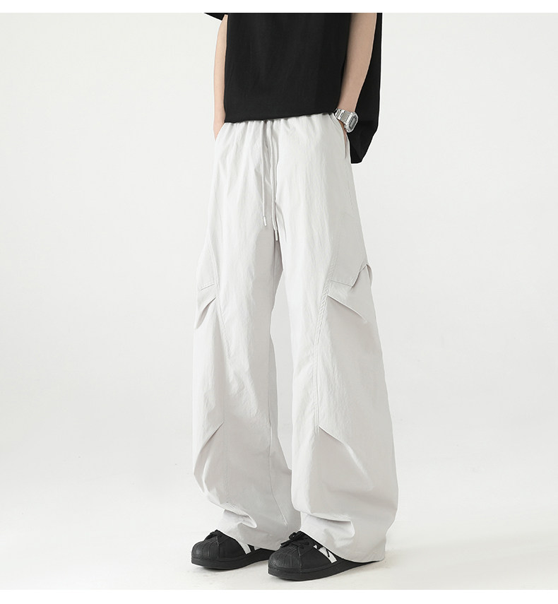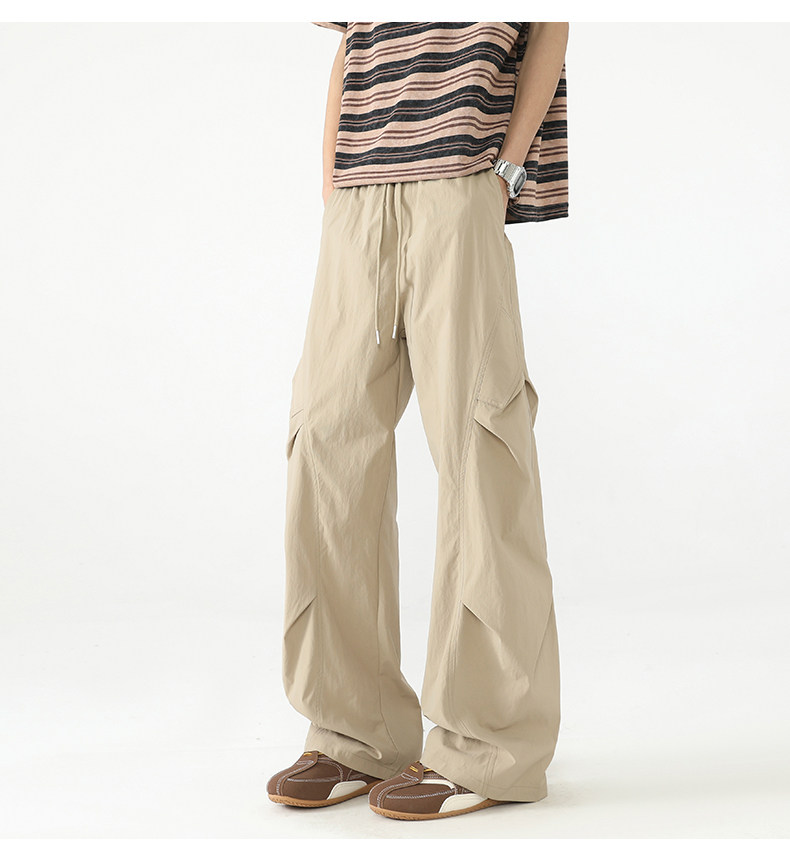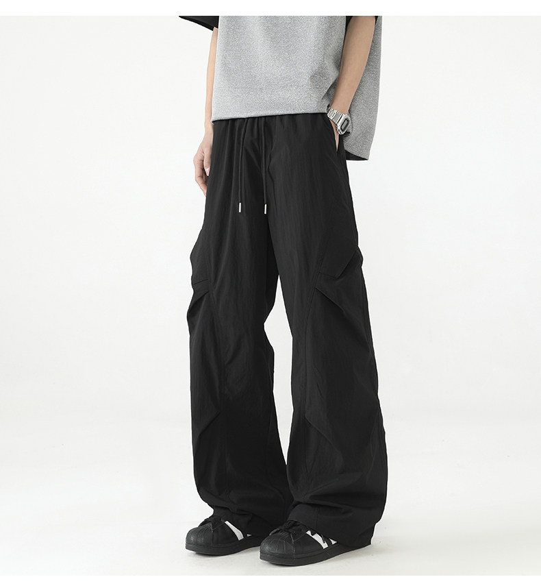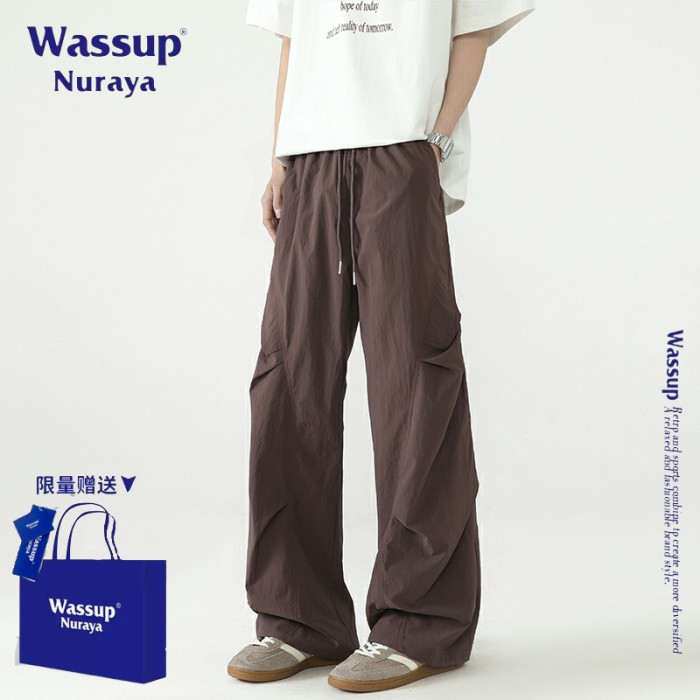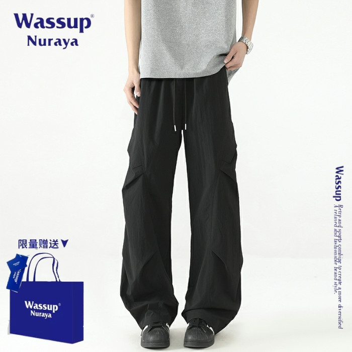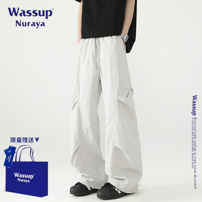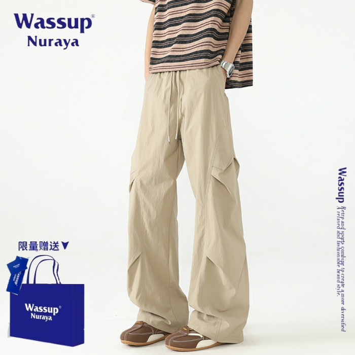 WASSUP NURAYA美式潮牌褶皺設計感休閒褲男士夏季新款寬鬆工裝褲