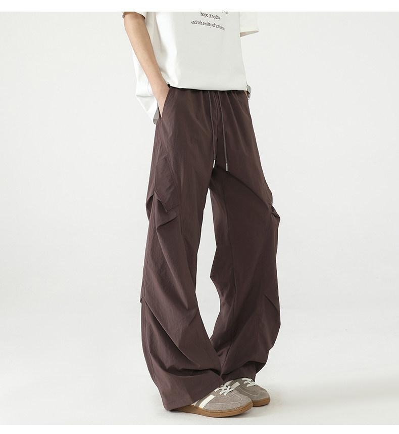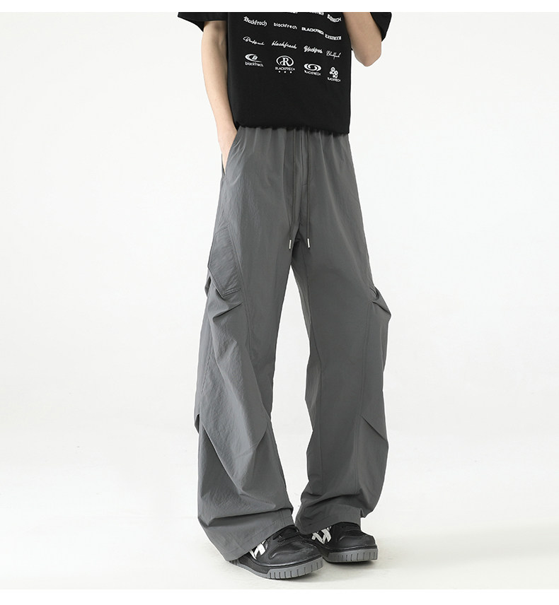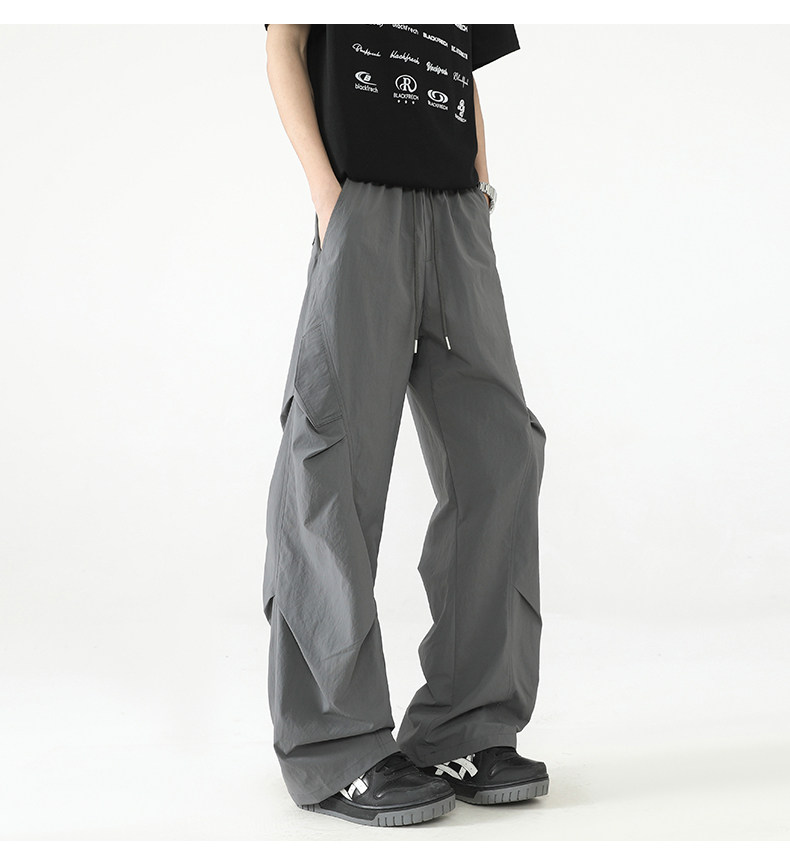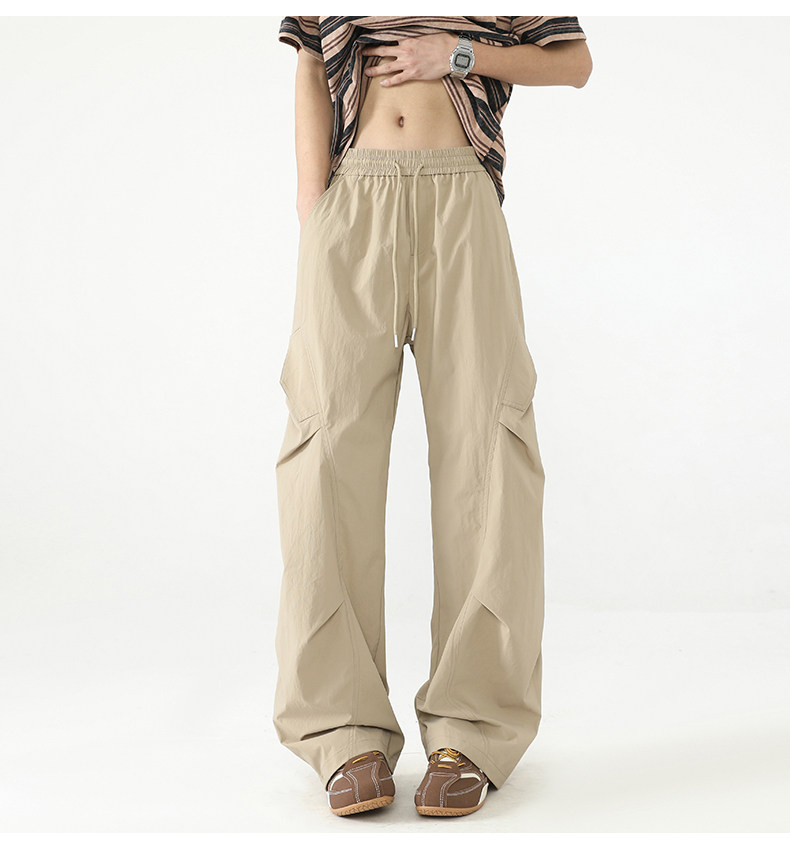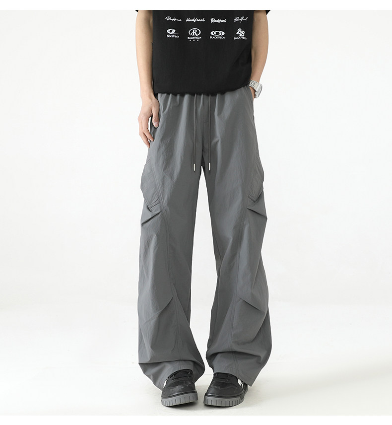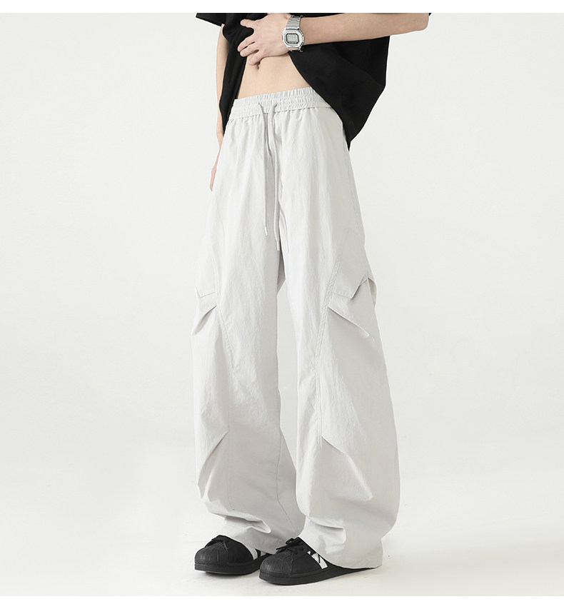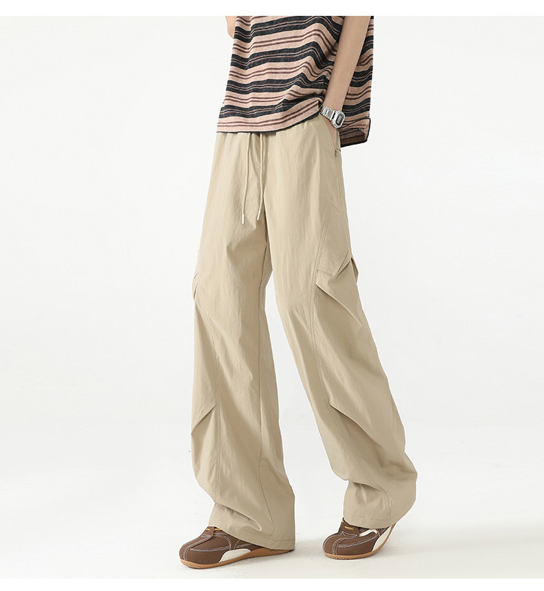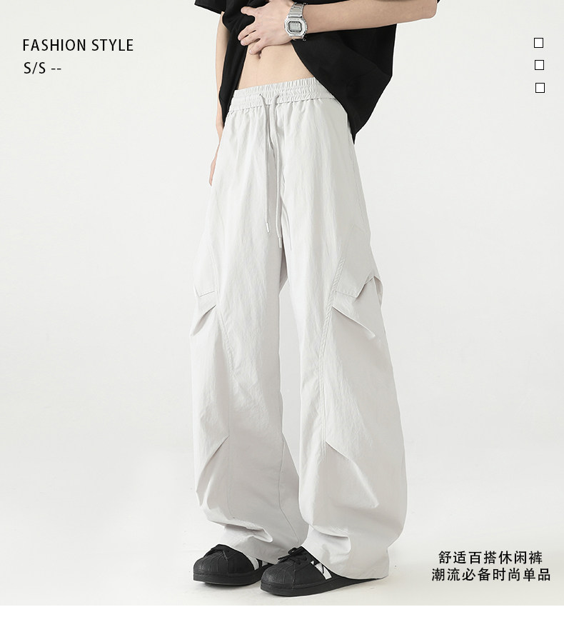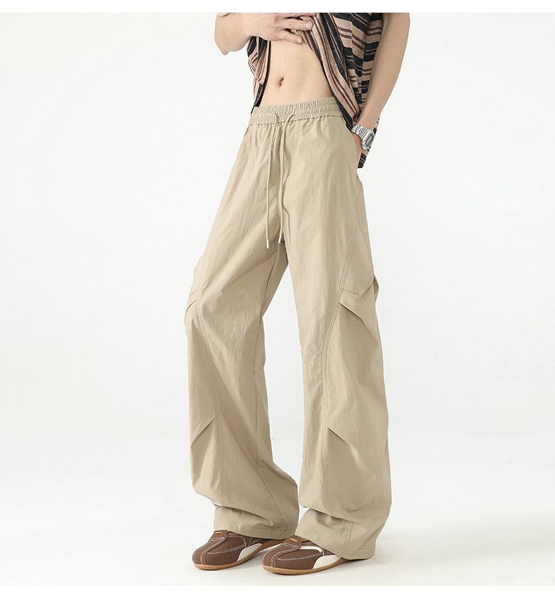 WASSUP NURAYA美式潮牌褶皺設計感休閒褲男士夏季新款寬鬆工裝褲