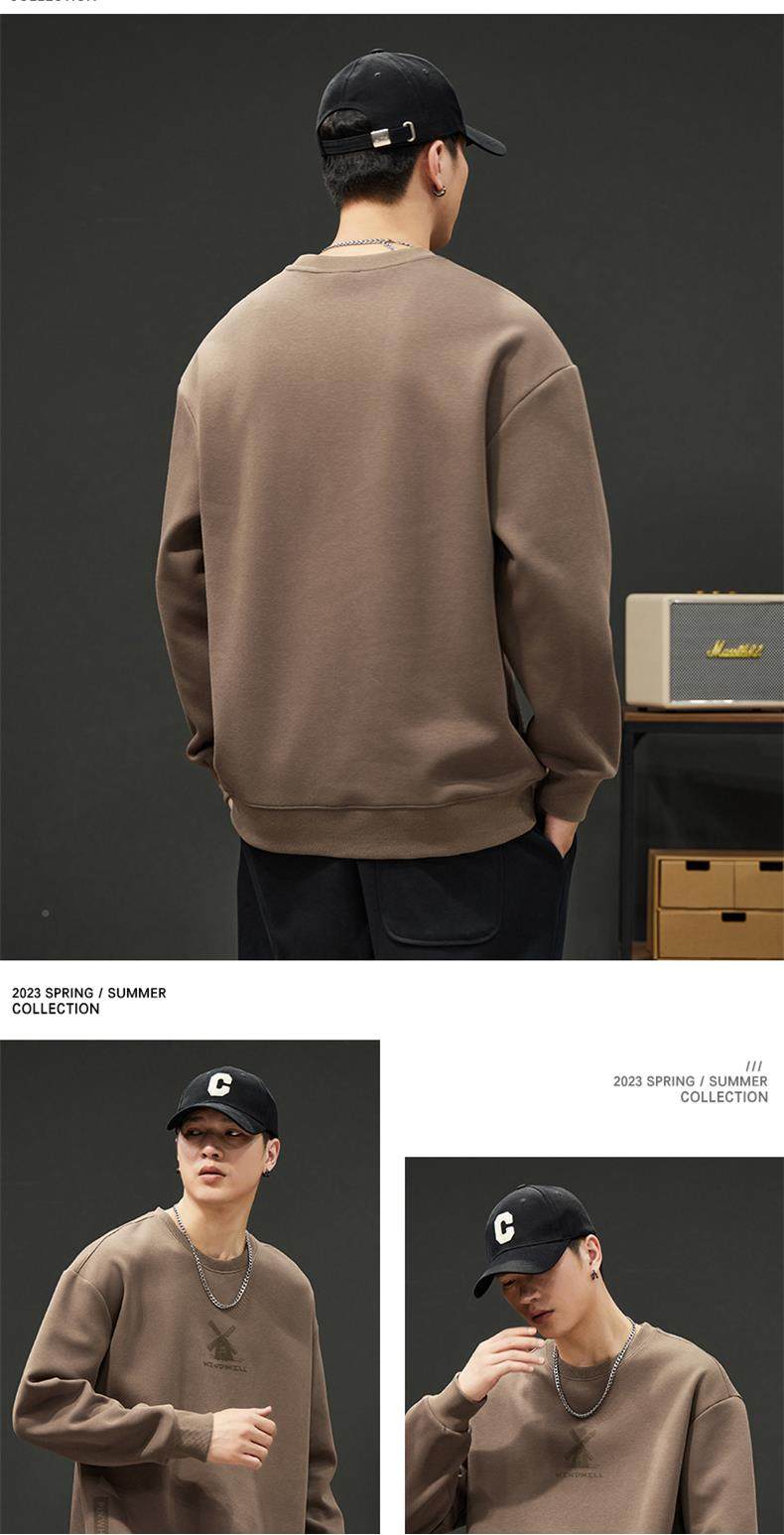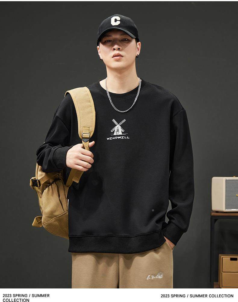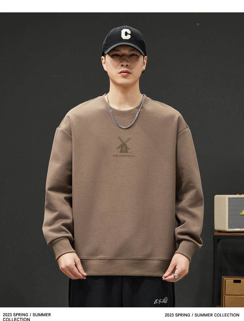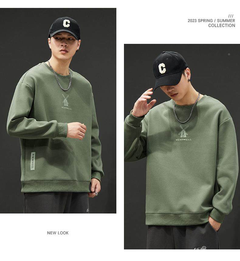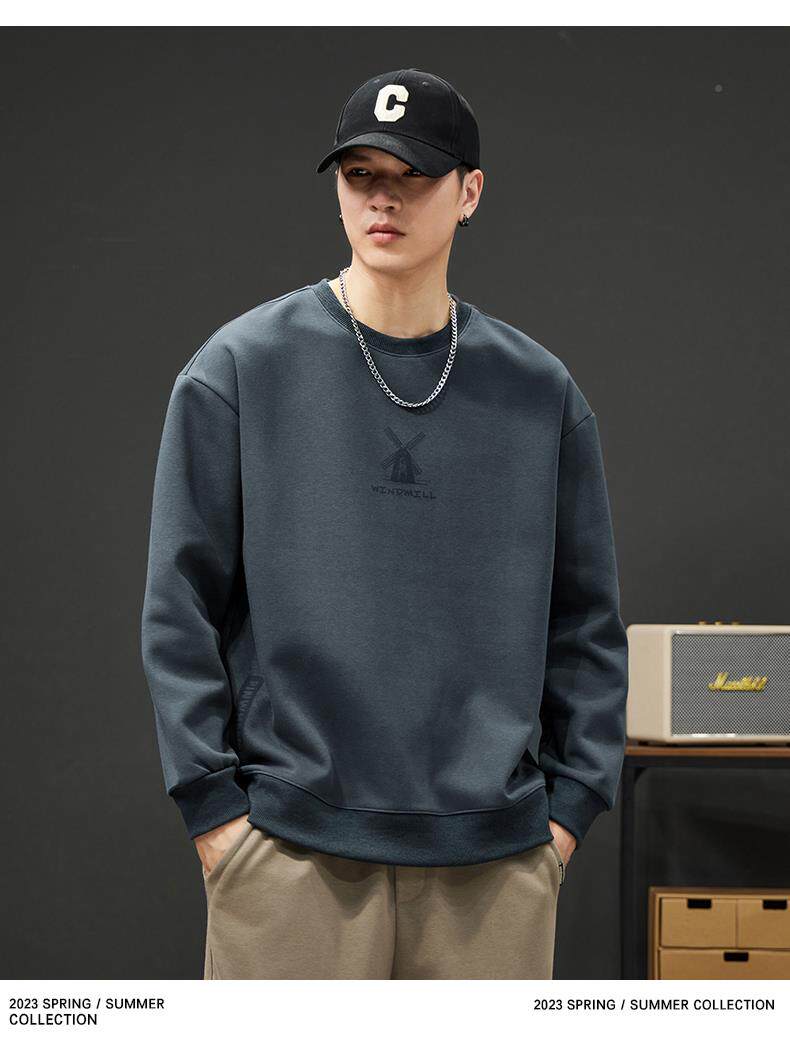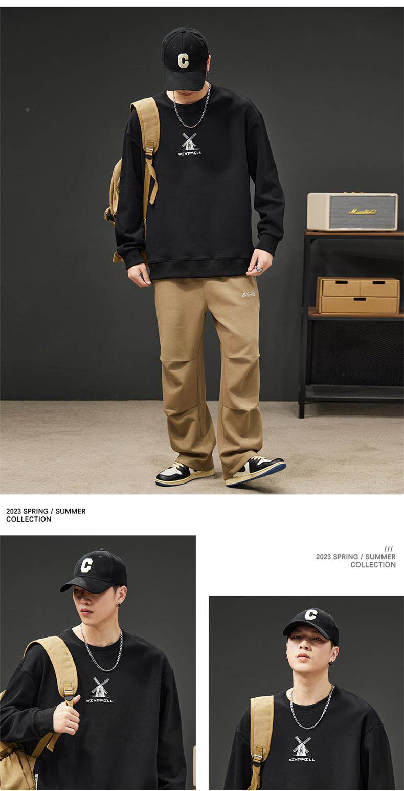 男款衛衣春秋新款寬鬆圓領百搭長袖上衣潮牌印花純色打底
