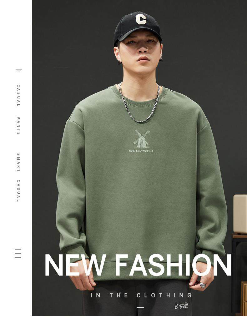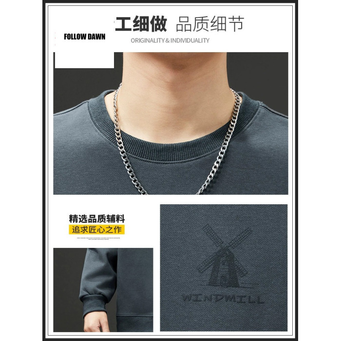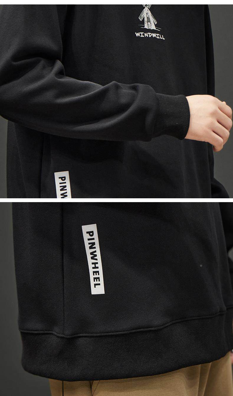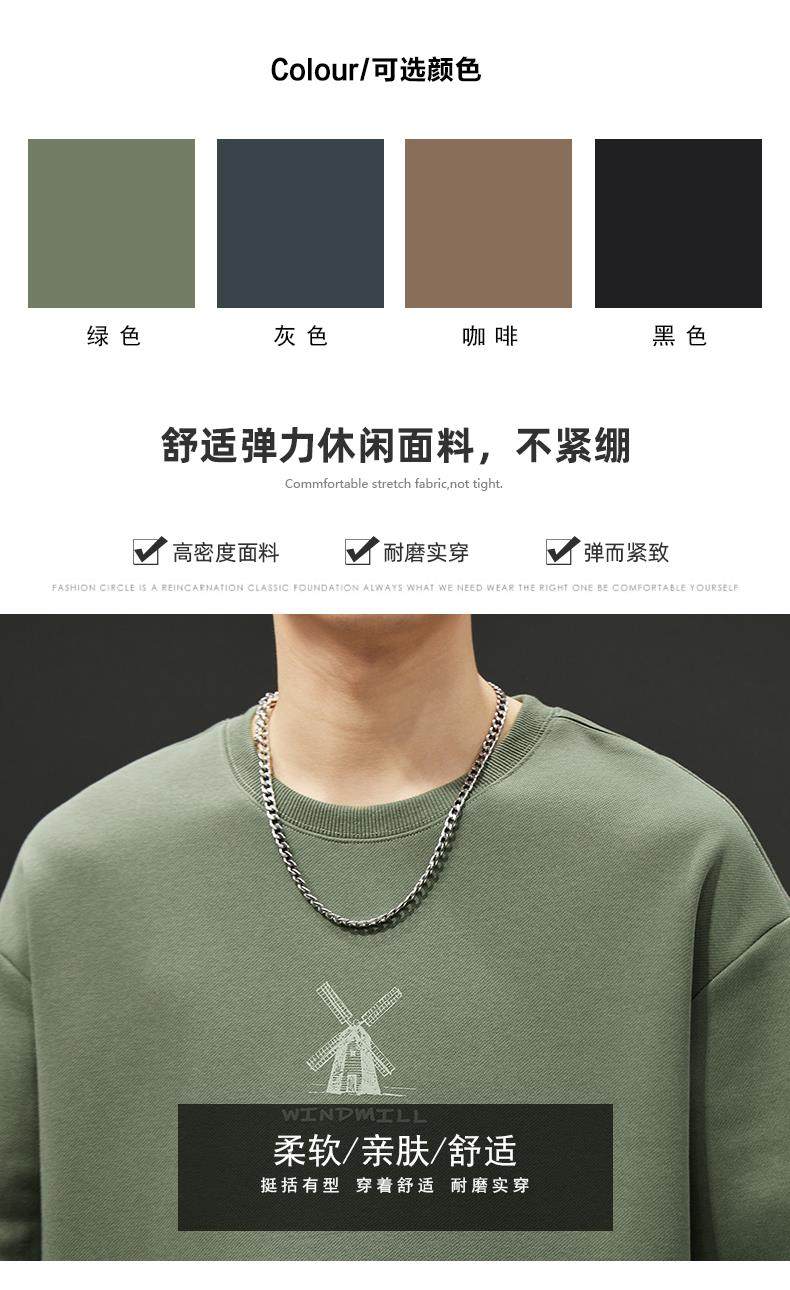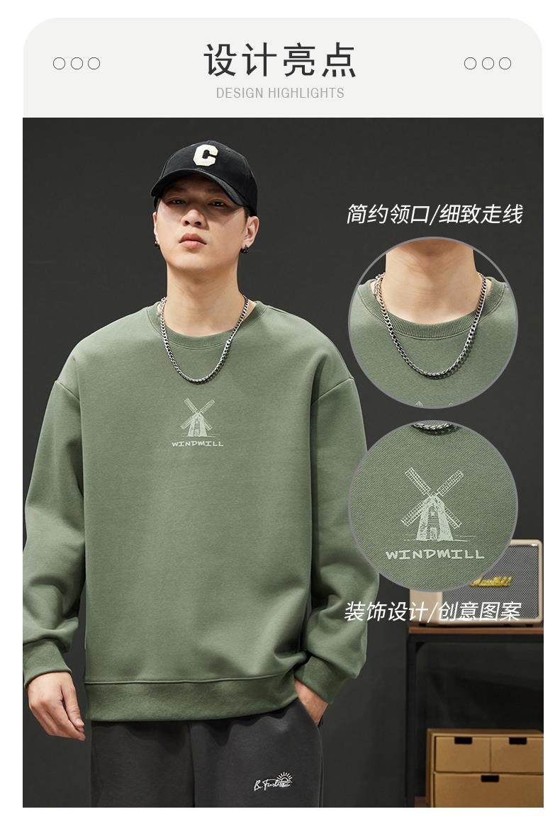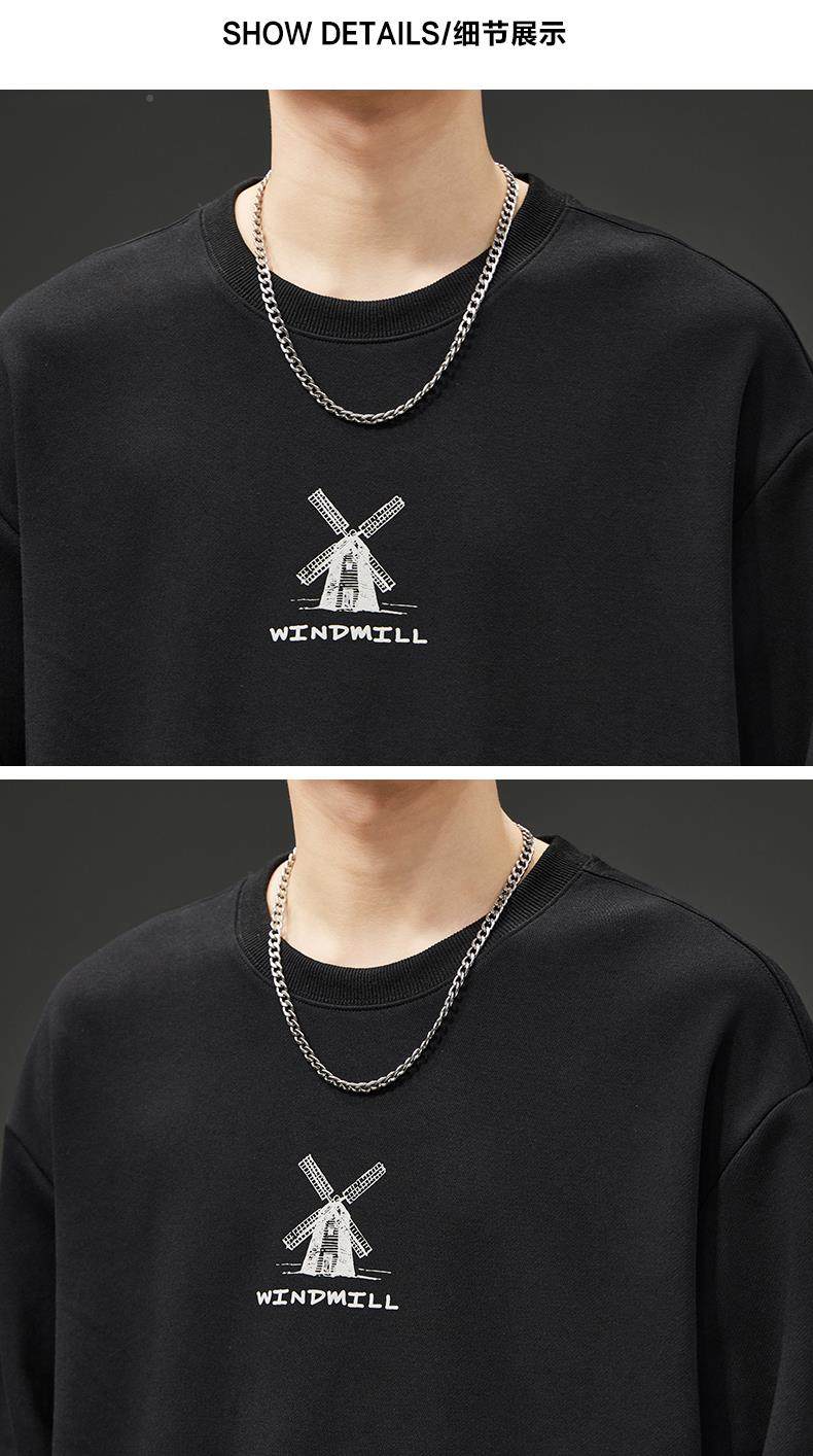 男款衛衣春秋新款寬鬆圓領百搭長袖上衣潮牌印花純色打底
