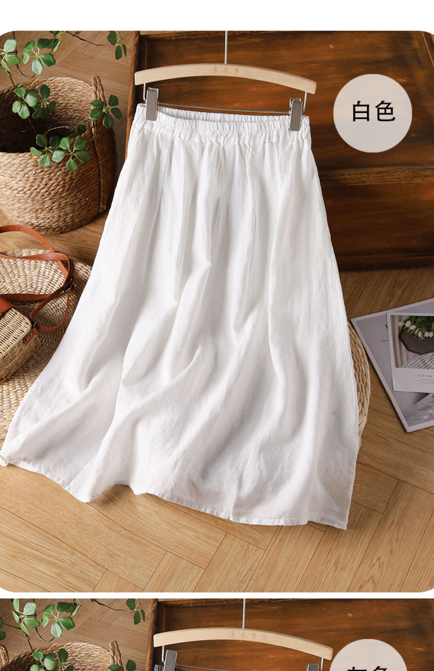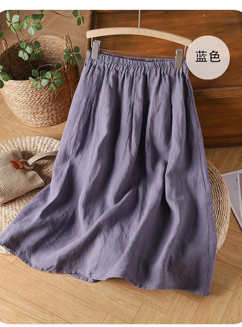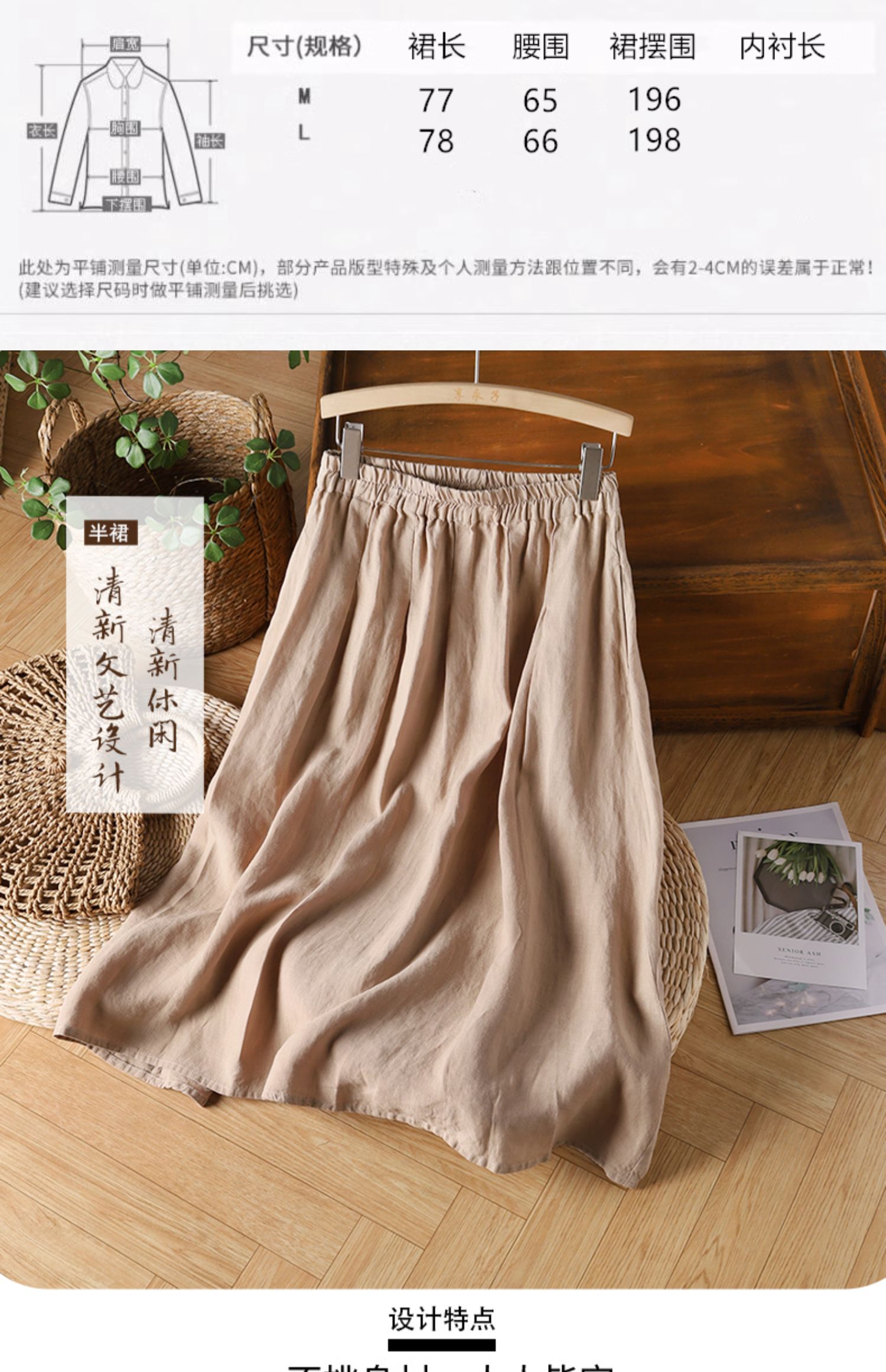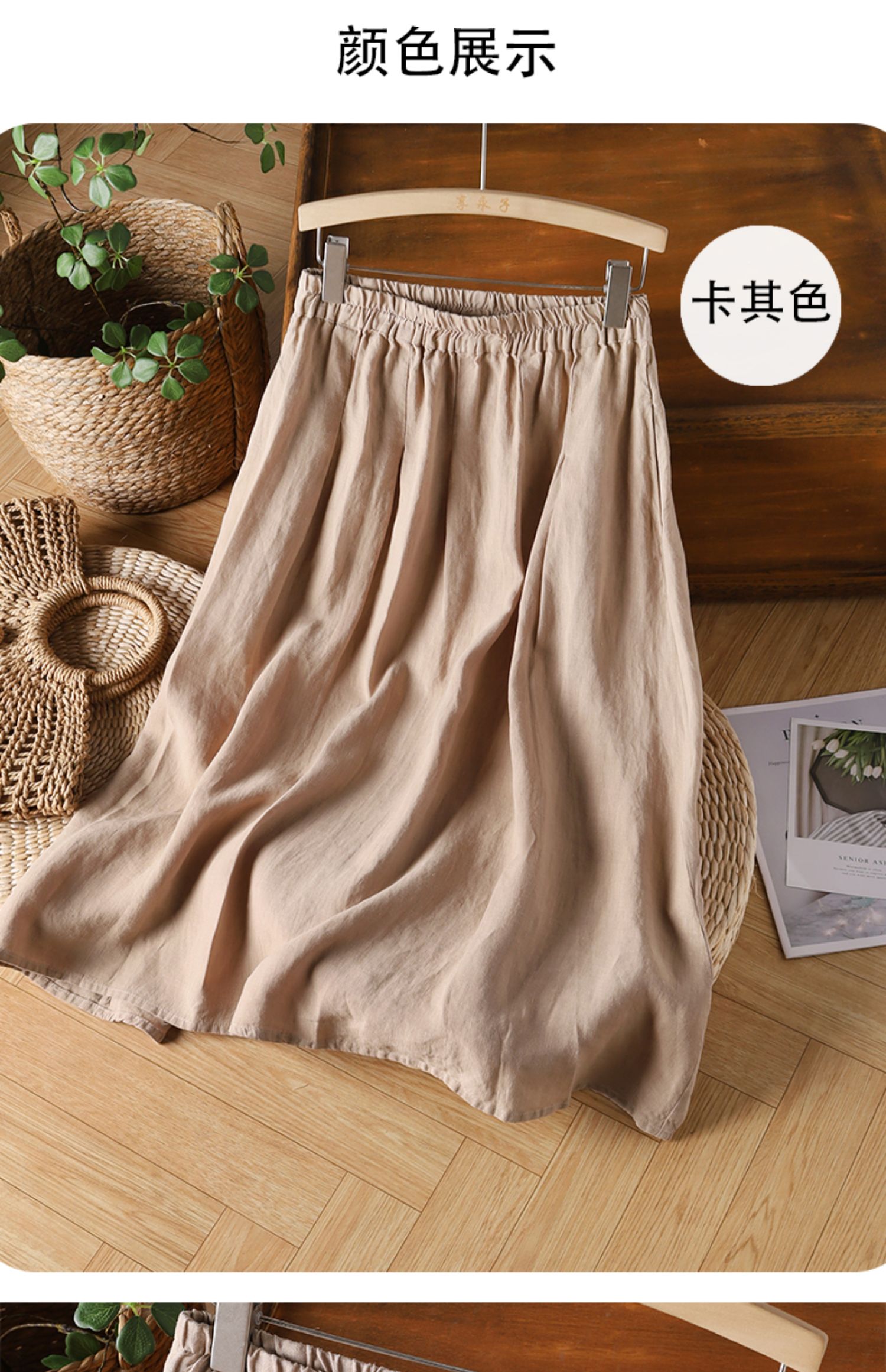 享永子【茶香故裡】24支漢麻半身裙松緊腰系帶中長款素顔裙文藝範