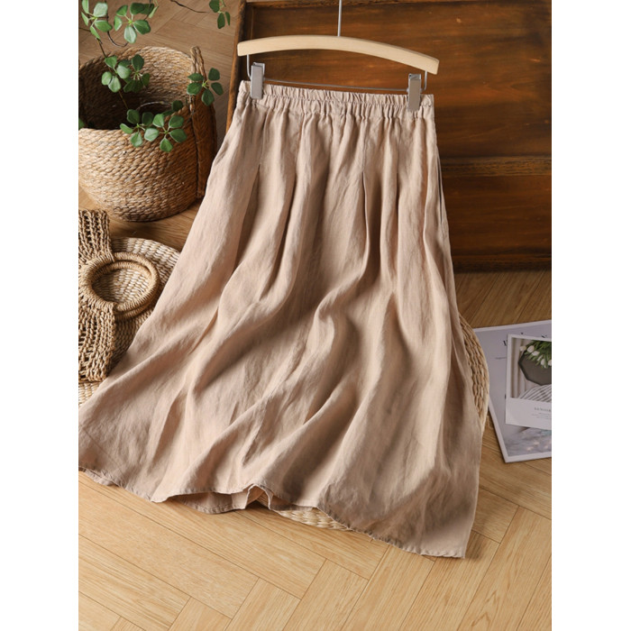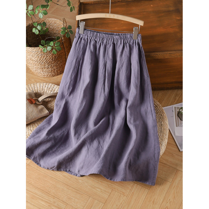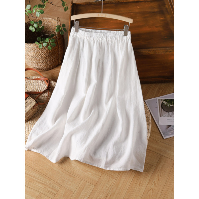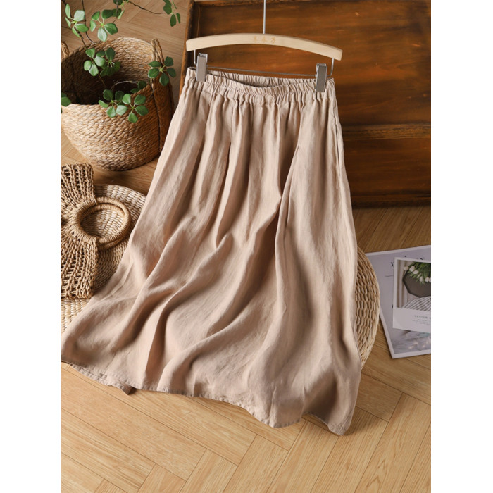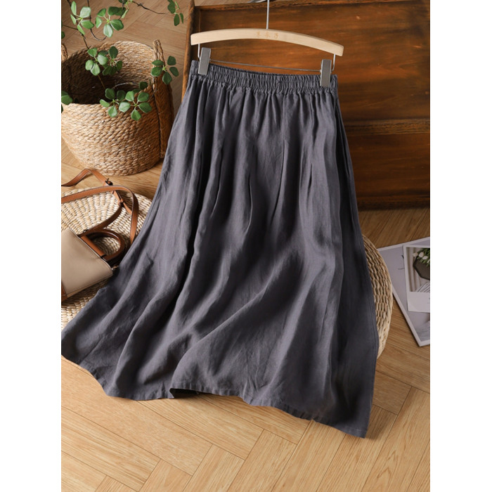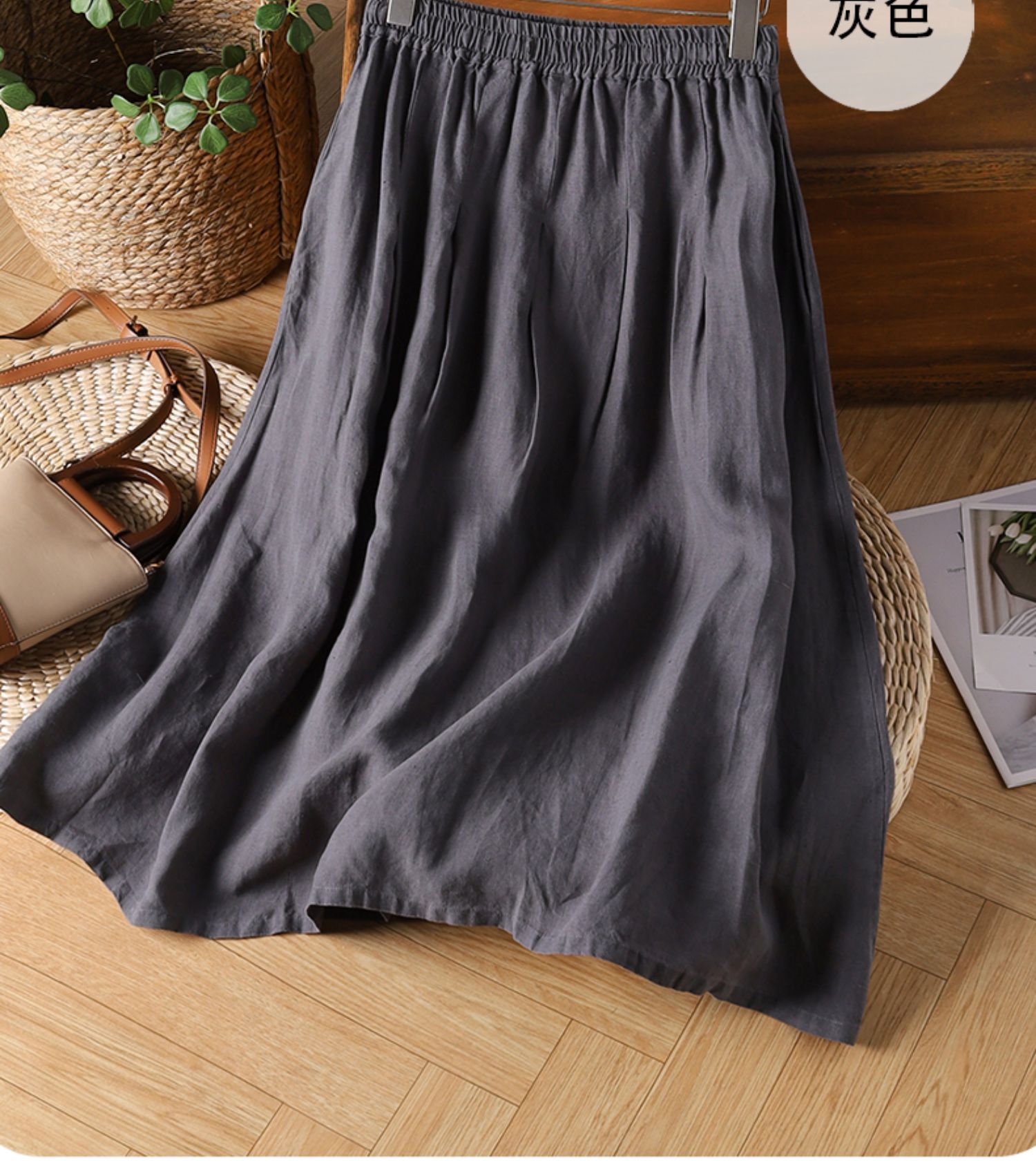 享永子【茶香故裡】24支漢麻半身裙松緊腰系帶中長款素顔裙文藝範