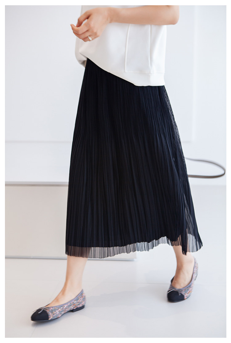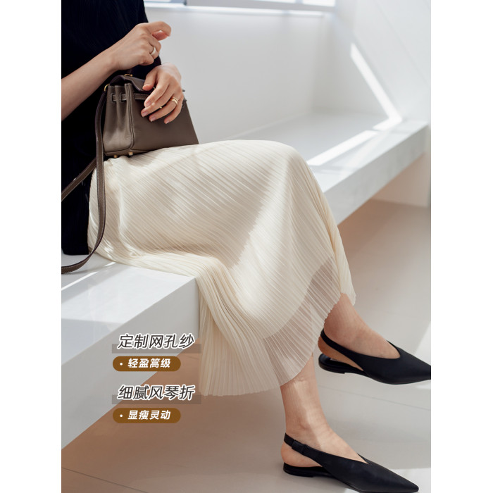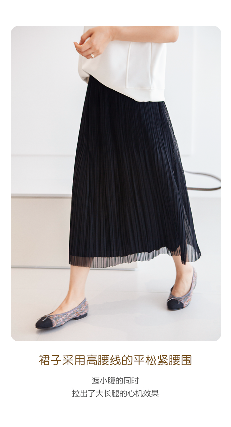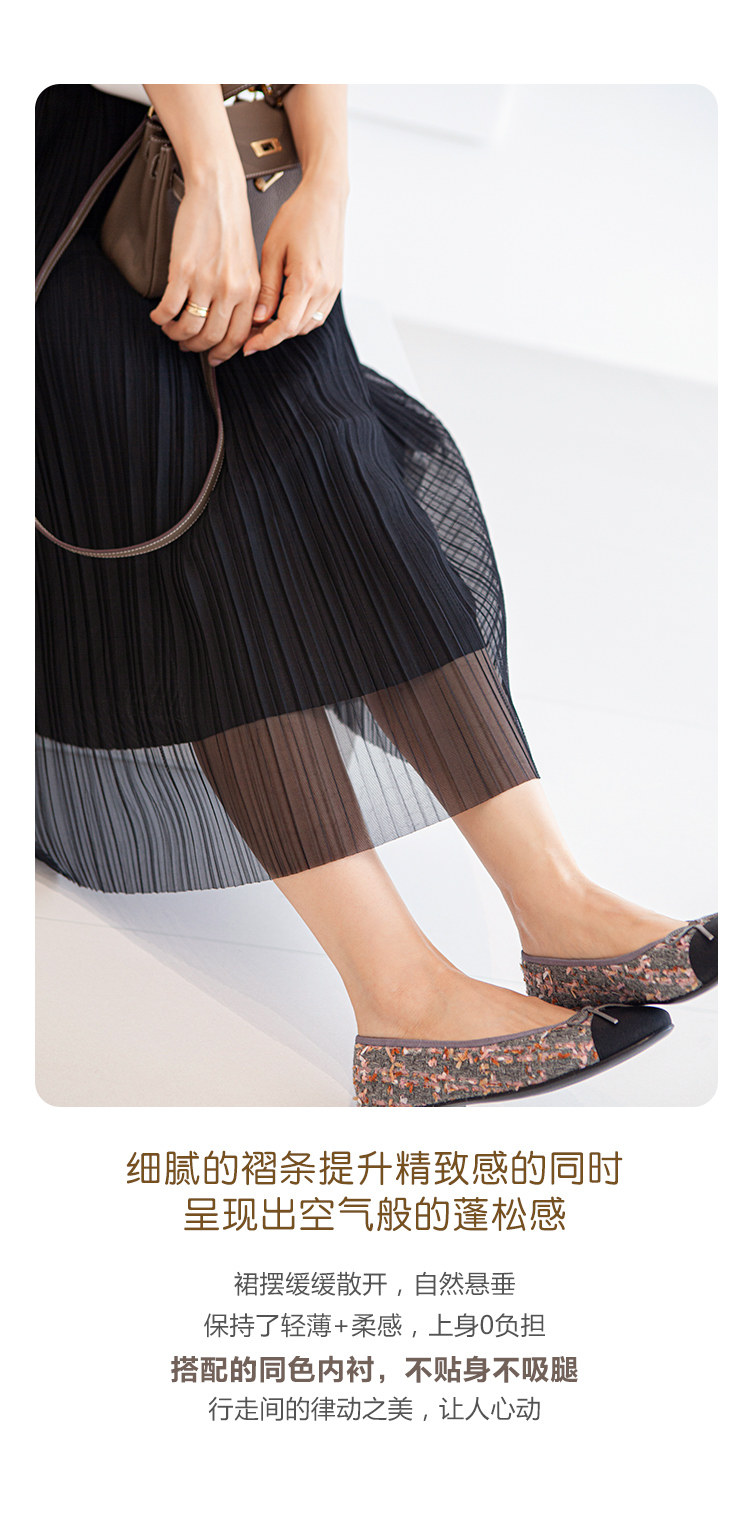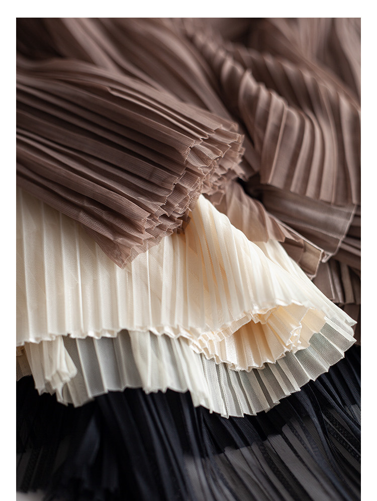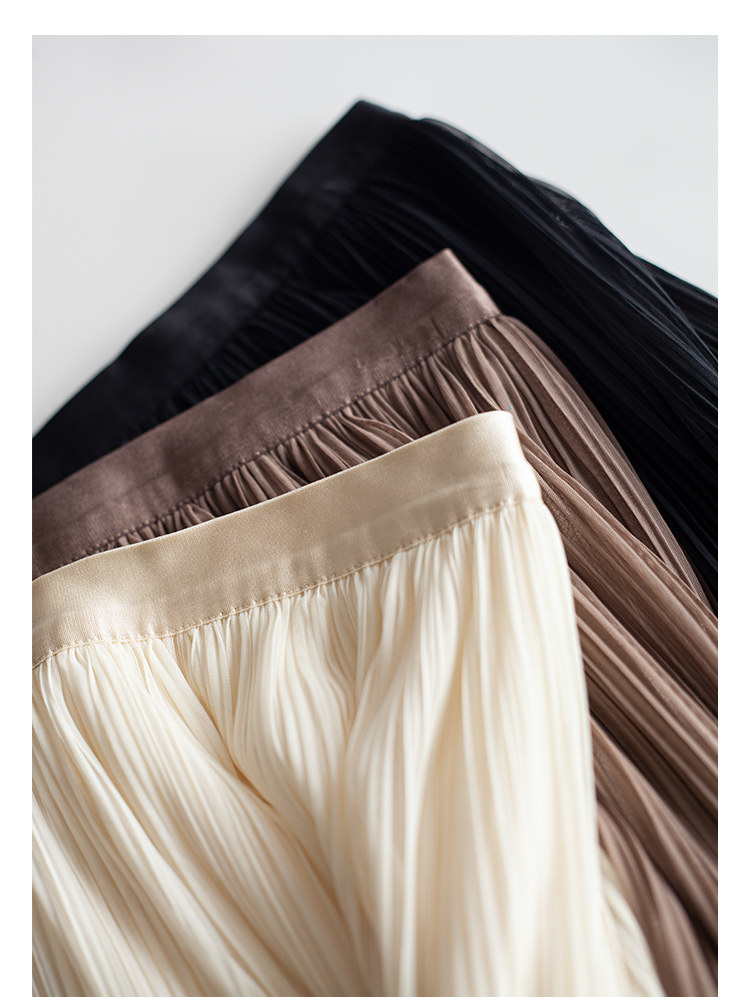 三時光4008*垂感優雅風琴折!百褶裙雙層網紗半身裙女秋中長裙