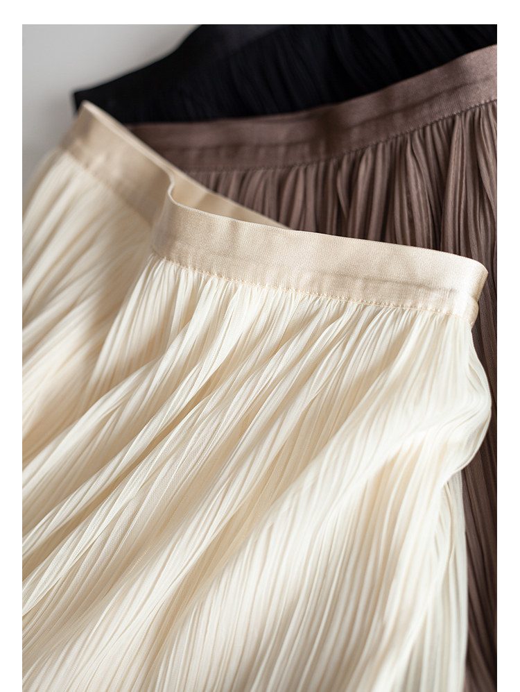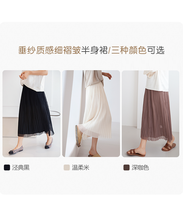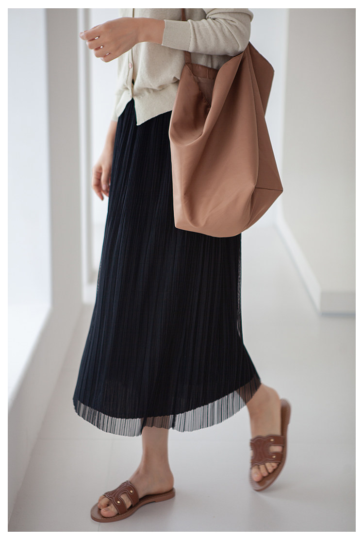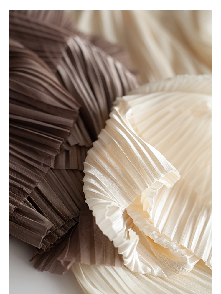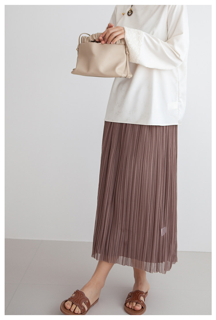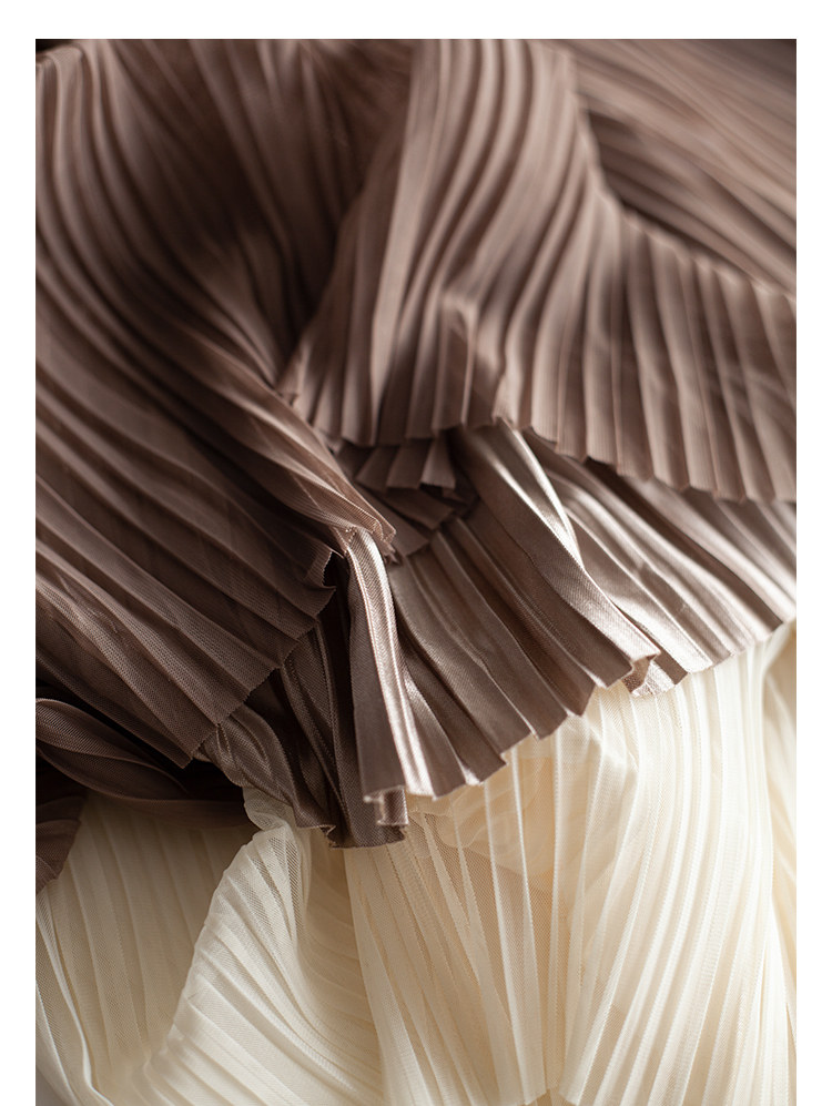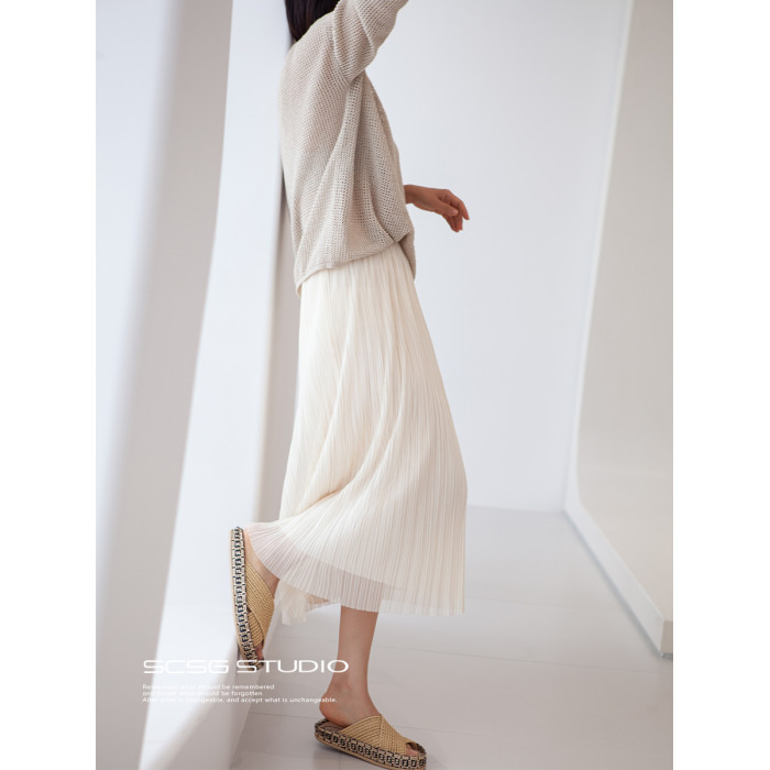 三時光4008*垂感優雅風琴折!百褶裙雙層網紗半身裙女秋中長裙