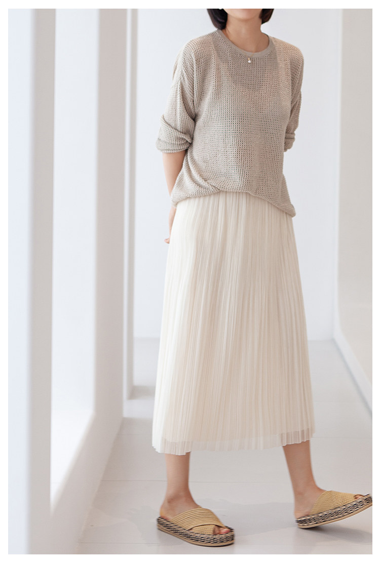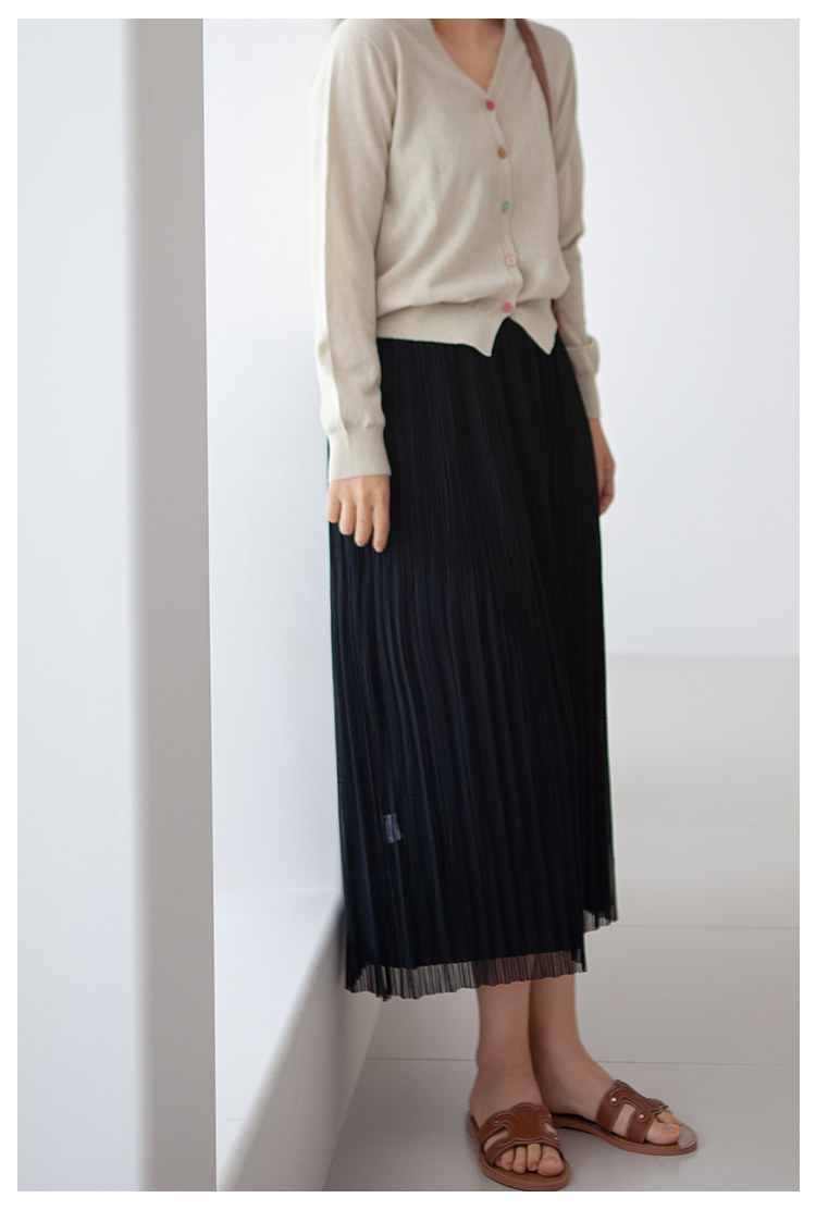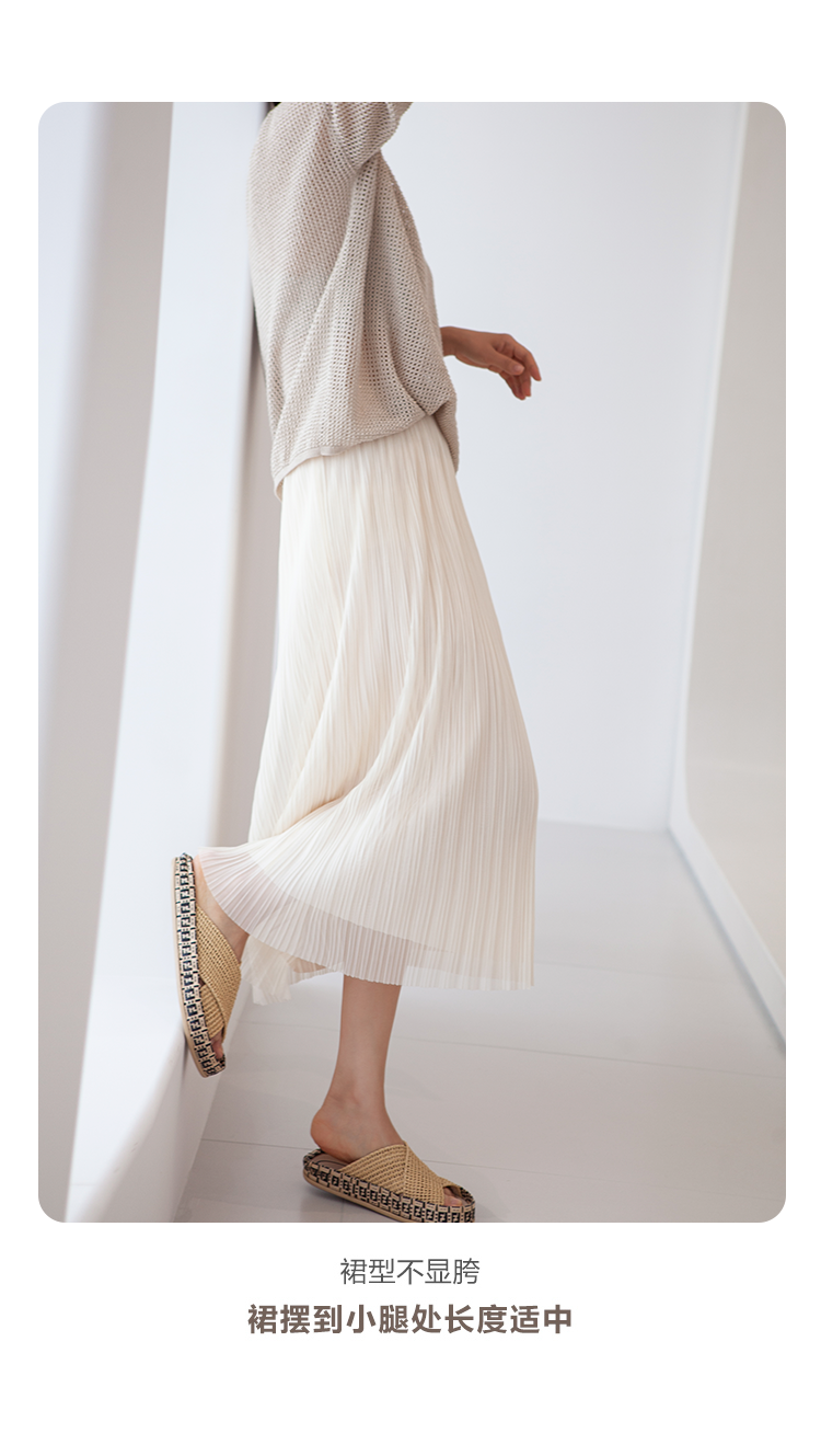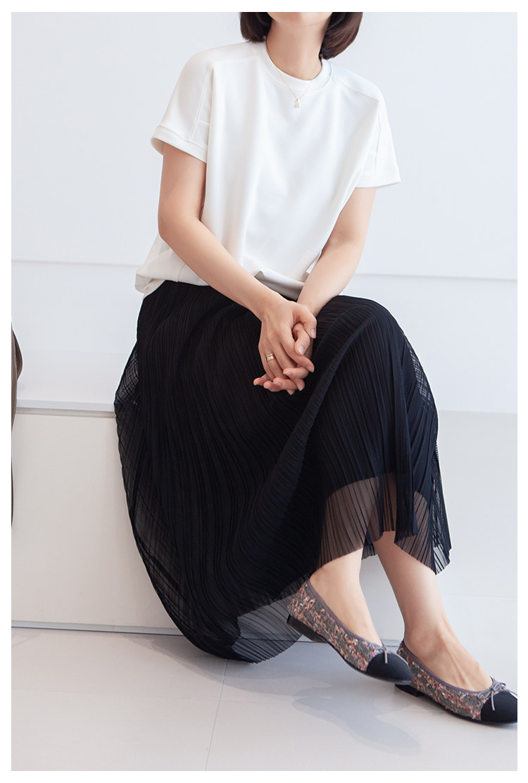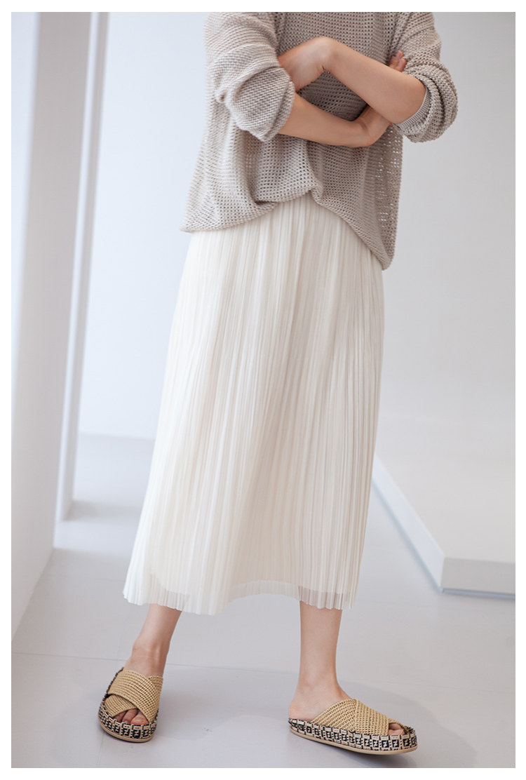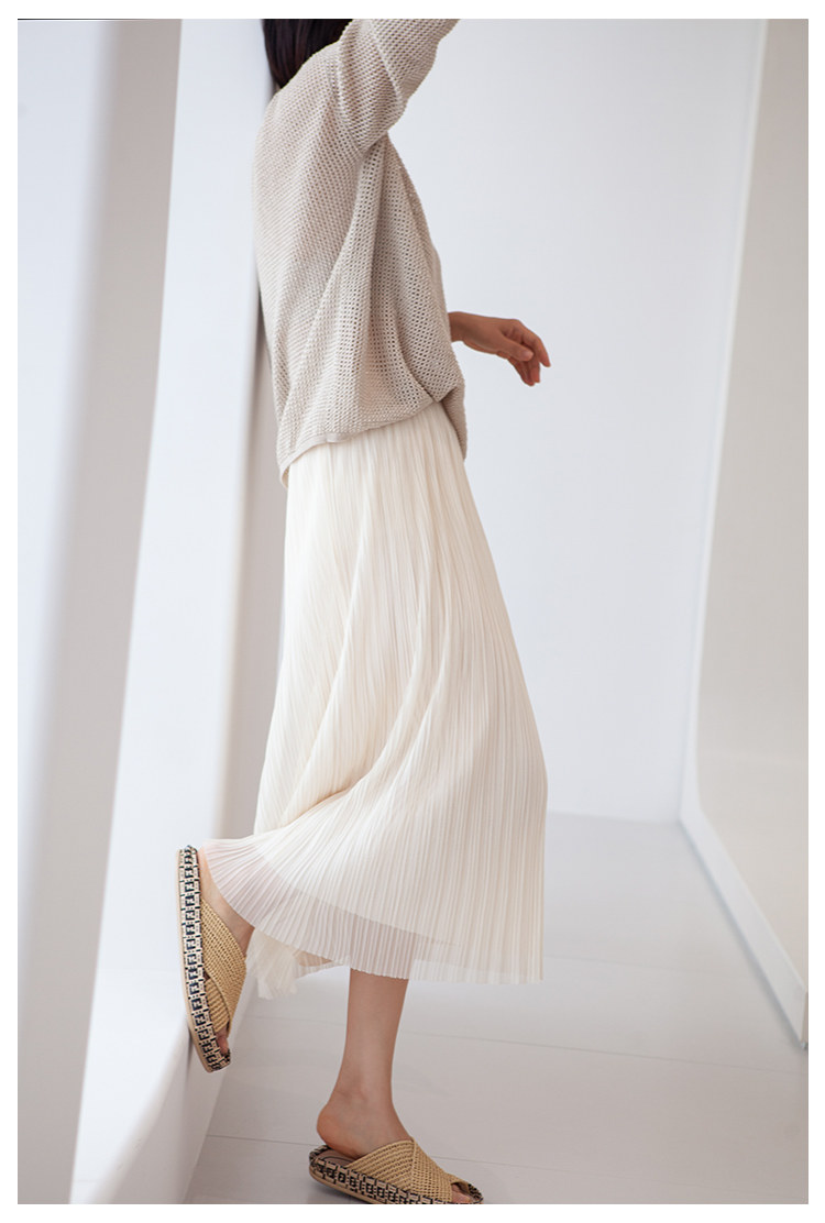 三時光4008*垂感優雅風琴折!百褶裙雙層網紗半身裙女秋中長裙