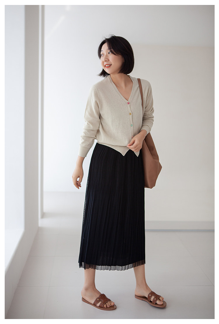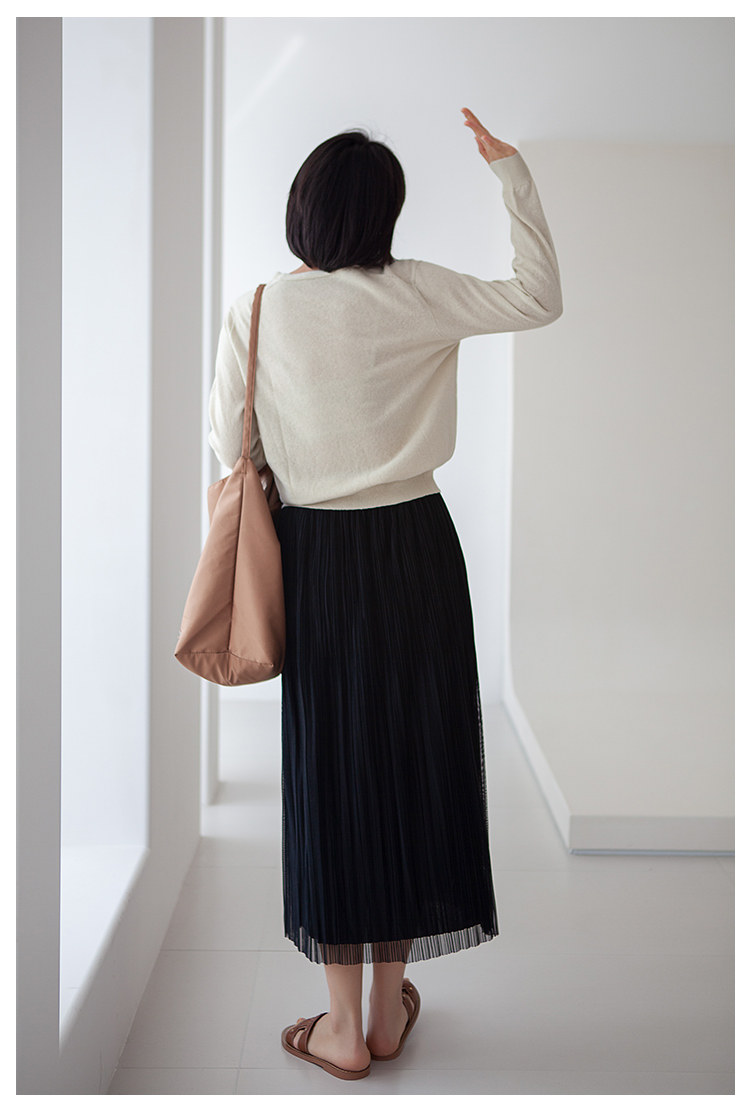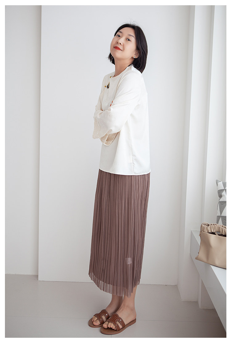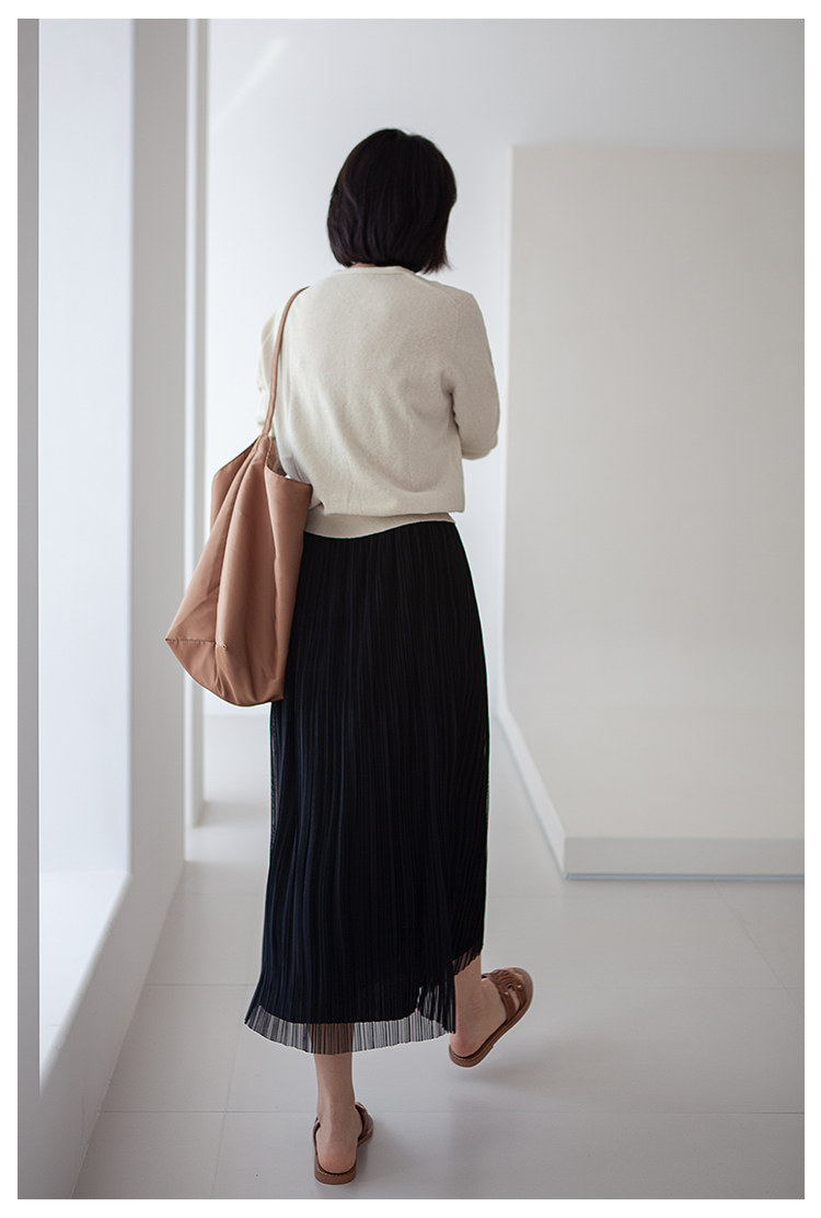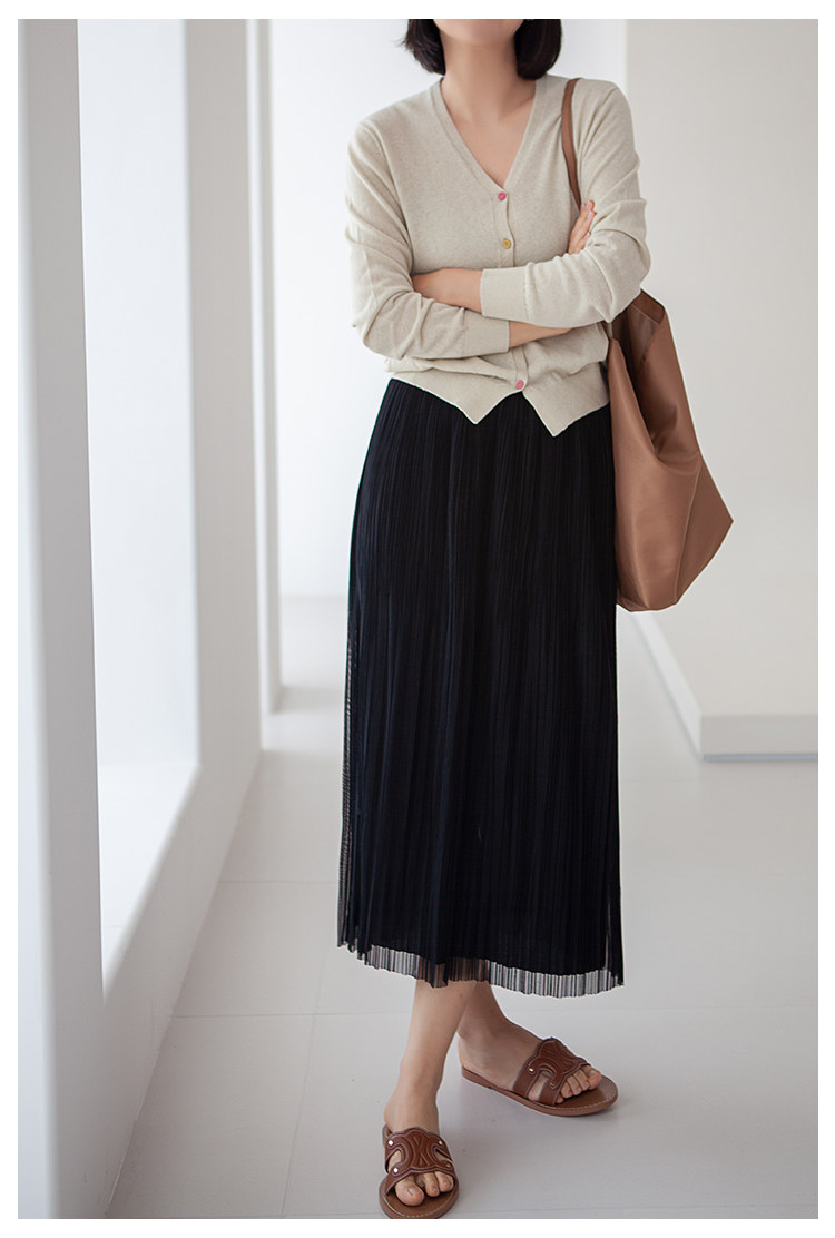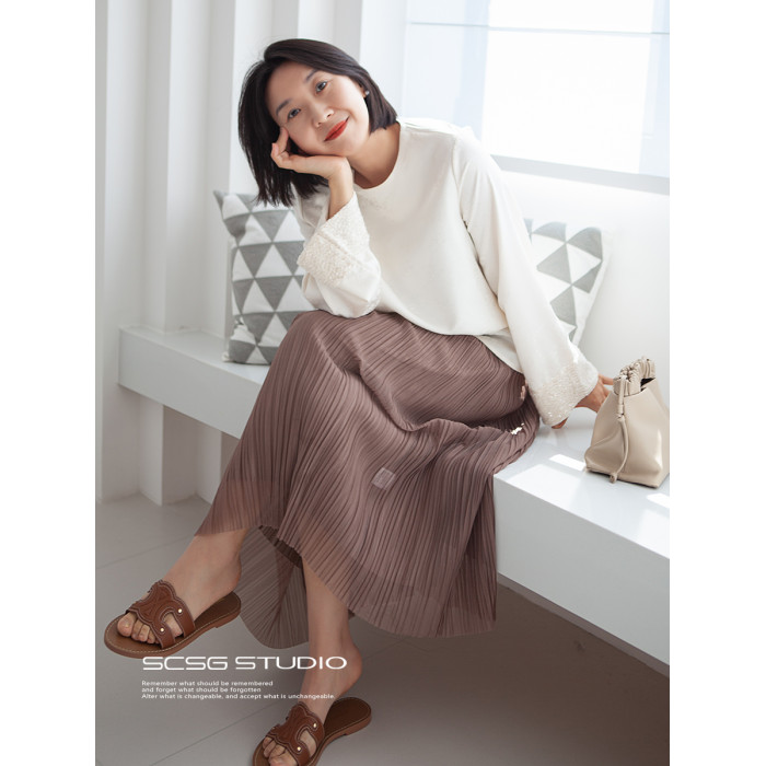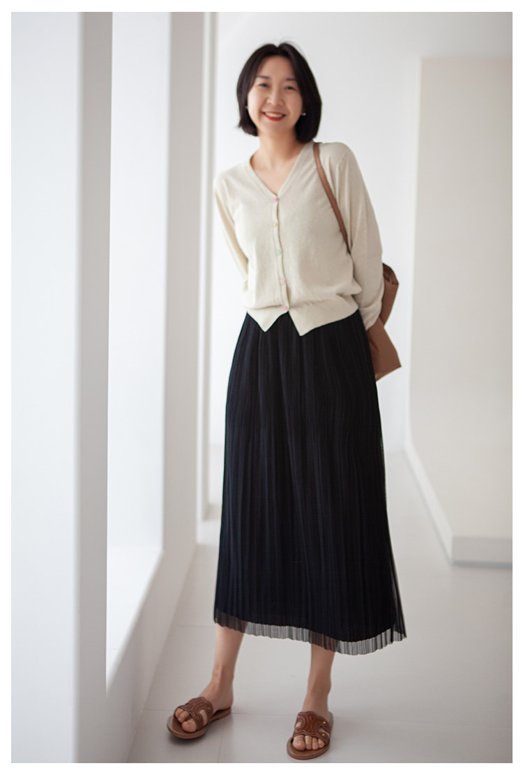 三時光4008*垂感優雅風琴折!百褶裙雙層網紗半身裙女秋中長裙