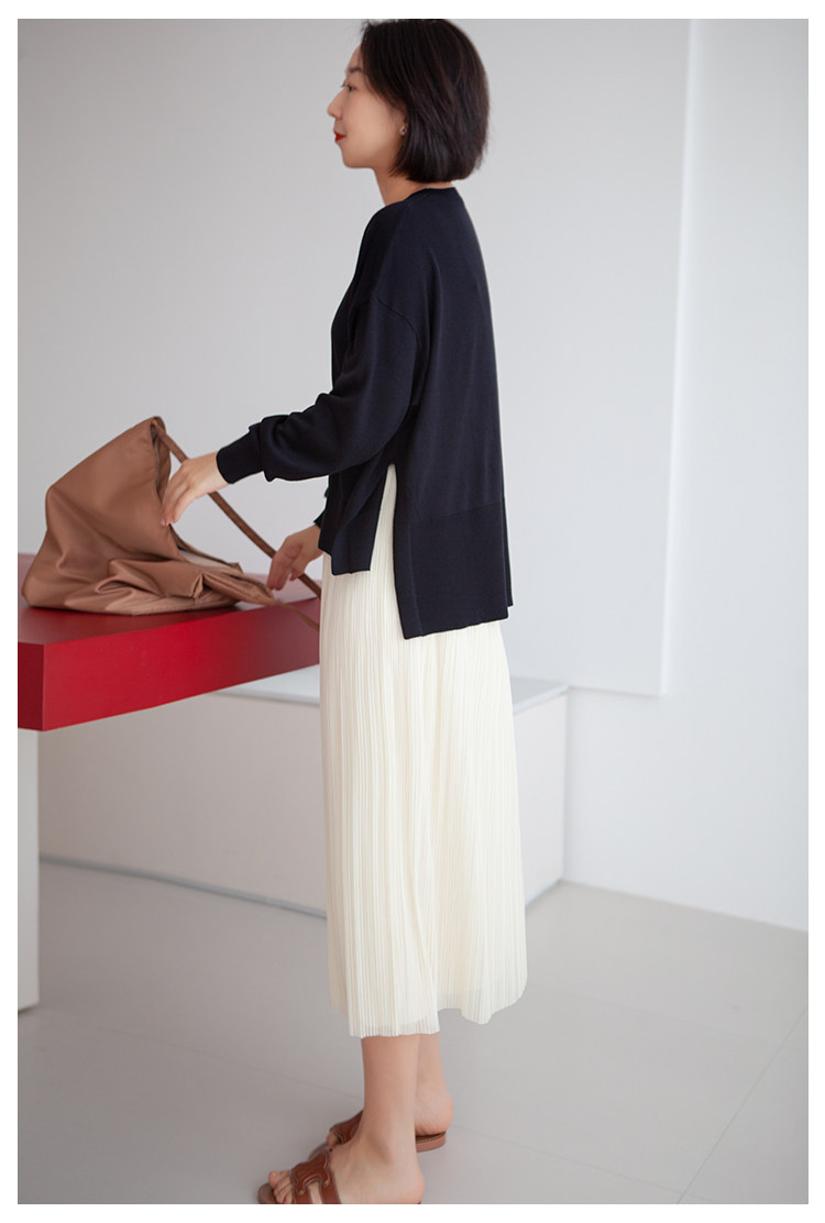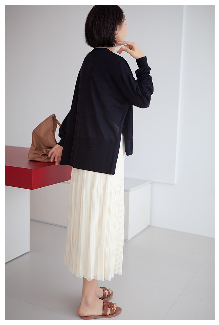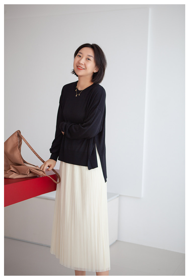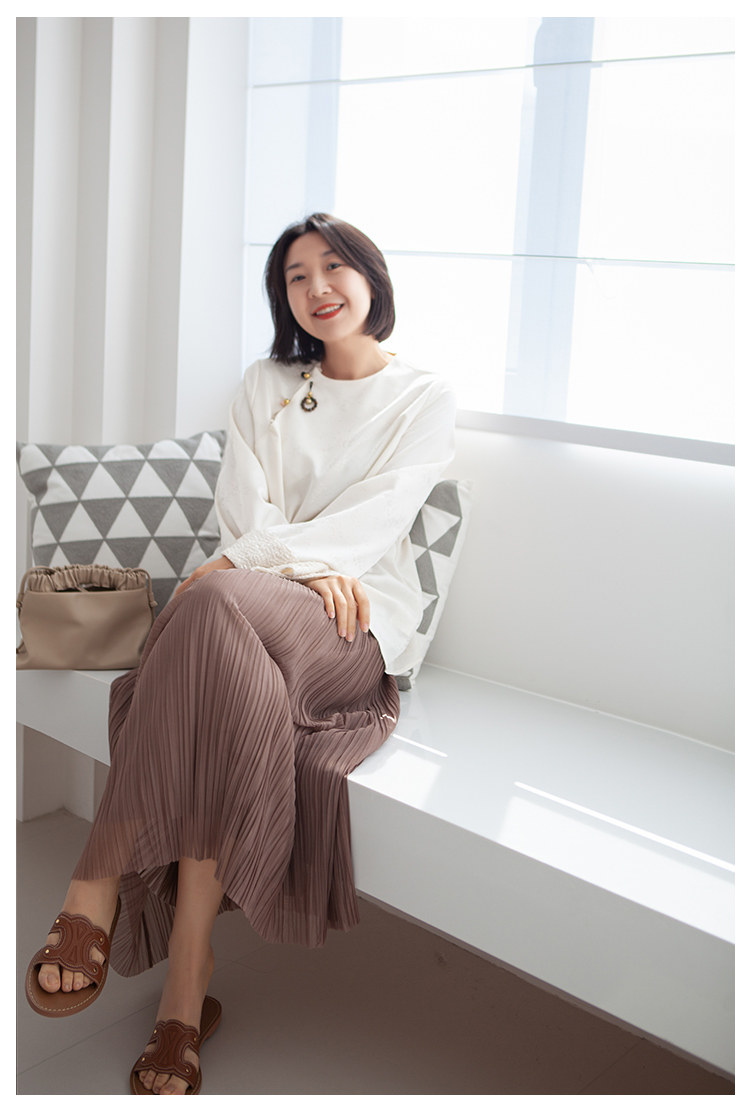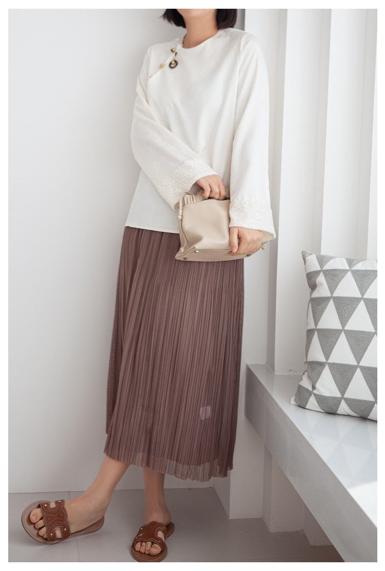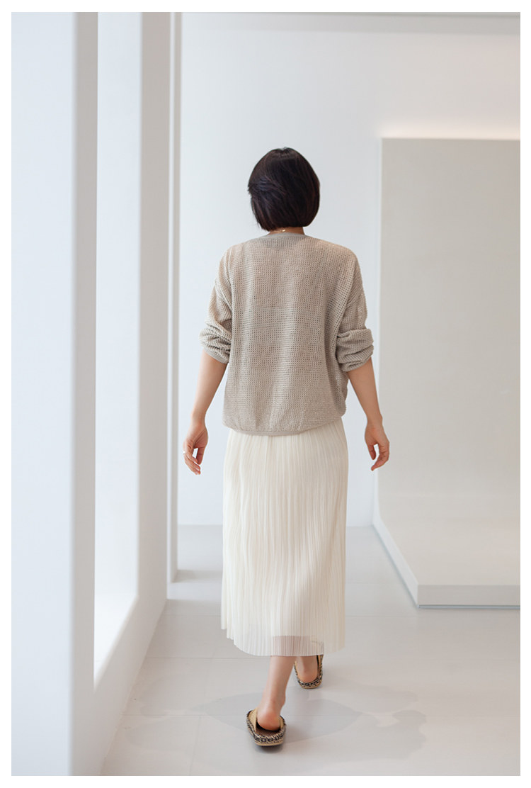三時光4008*垂感優雅風琴折!百褶裙雙層網紗半身裙女秋中長裙