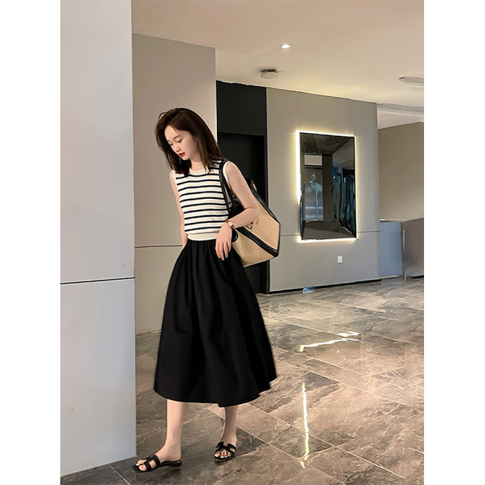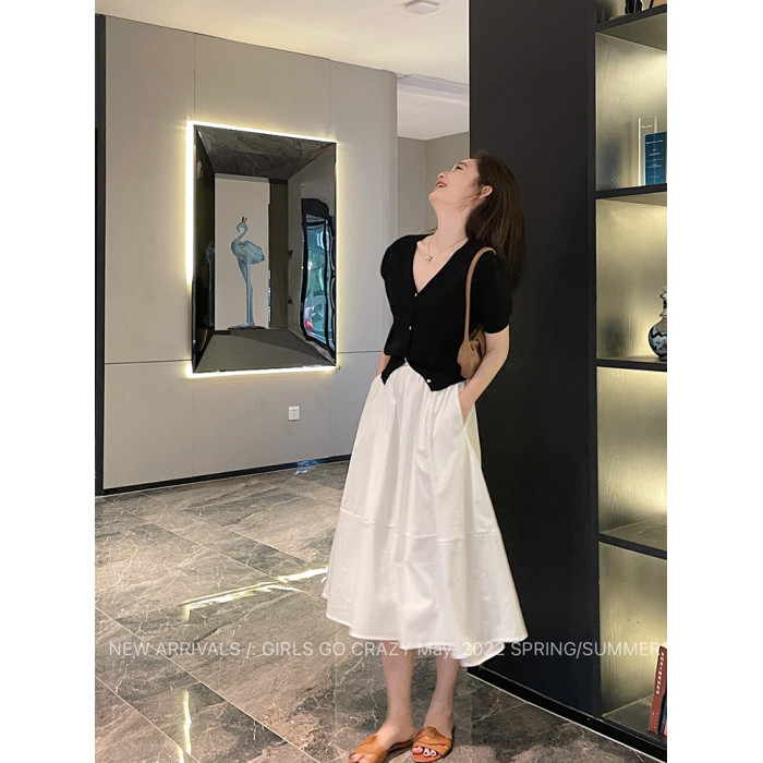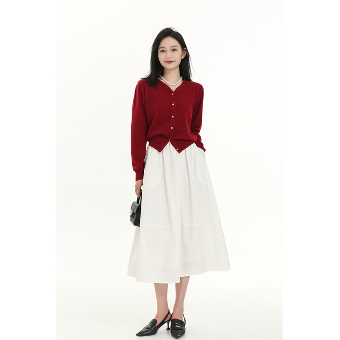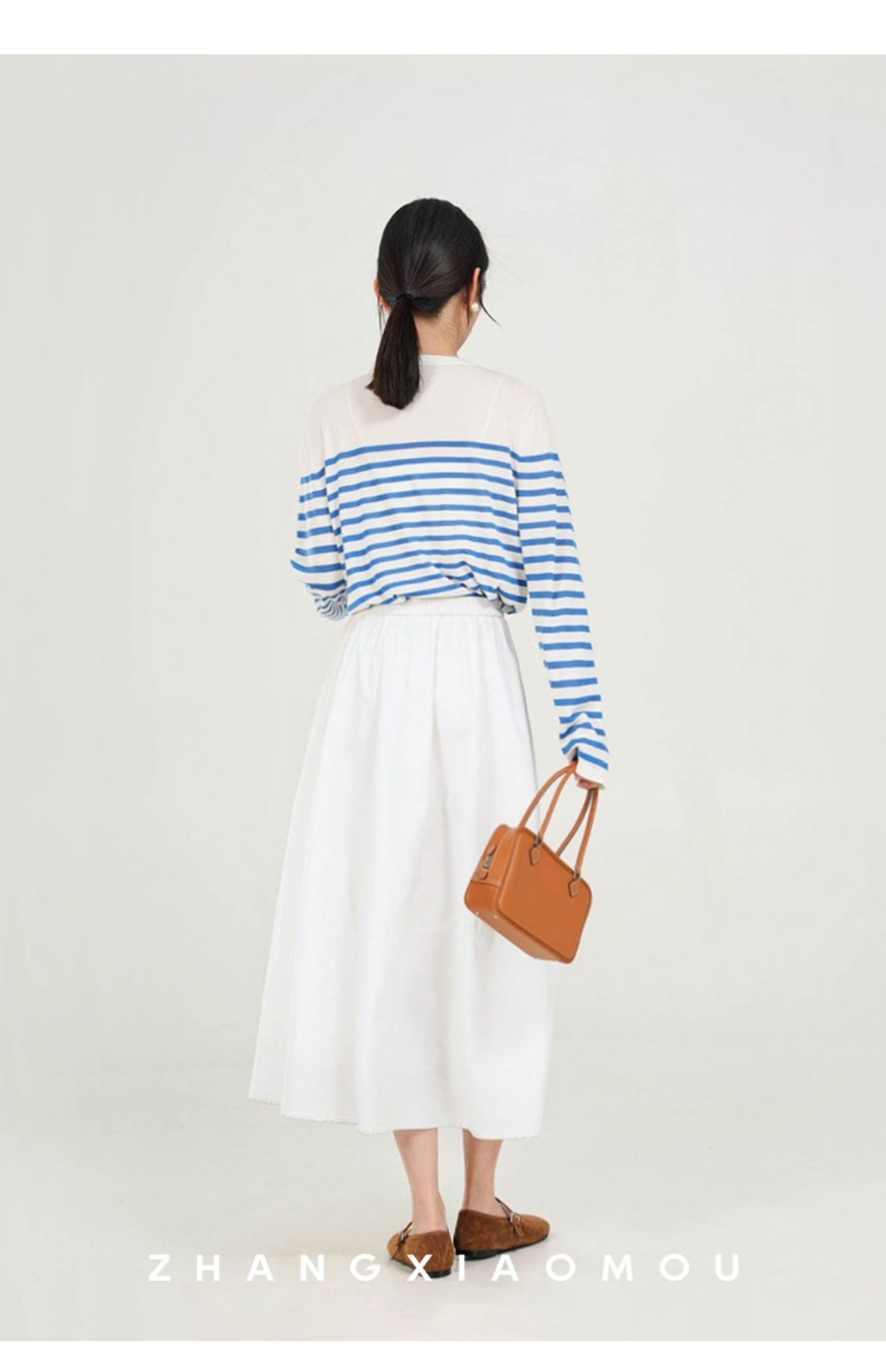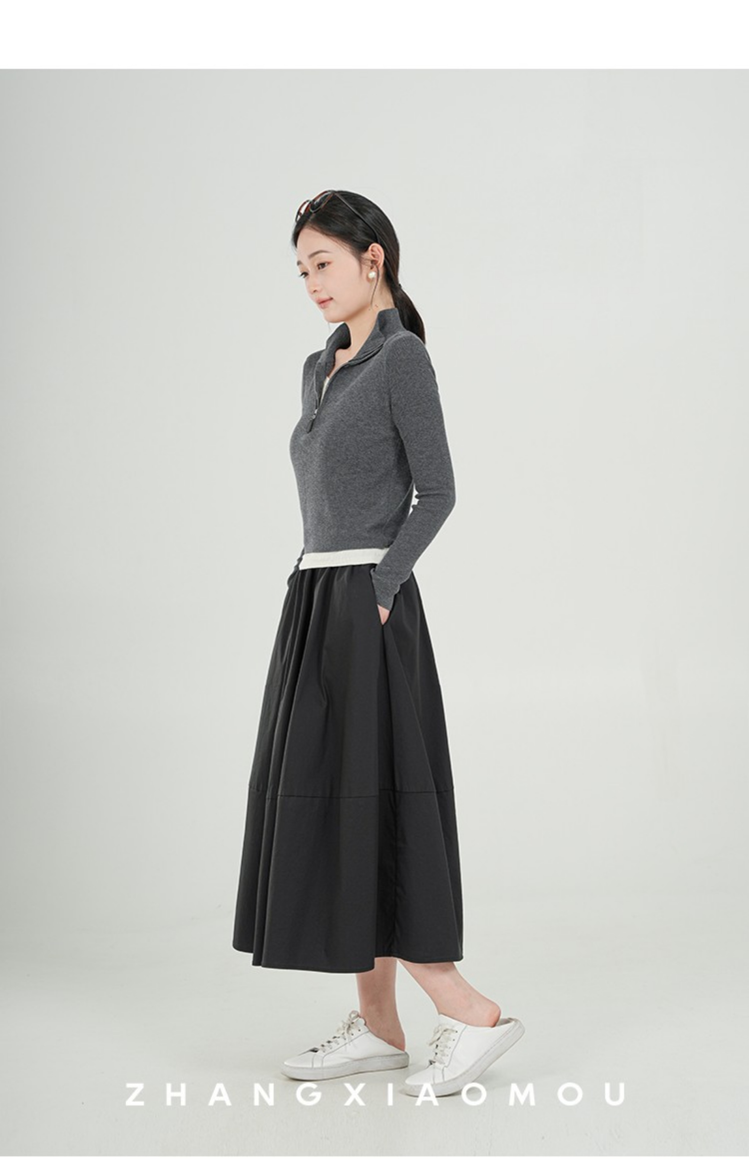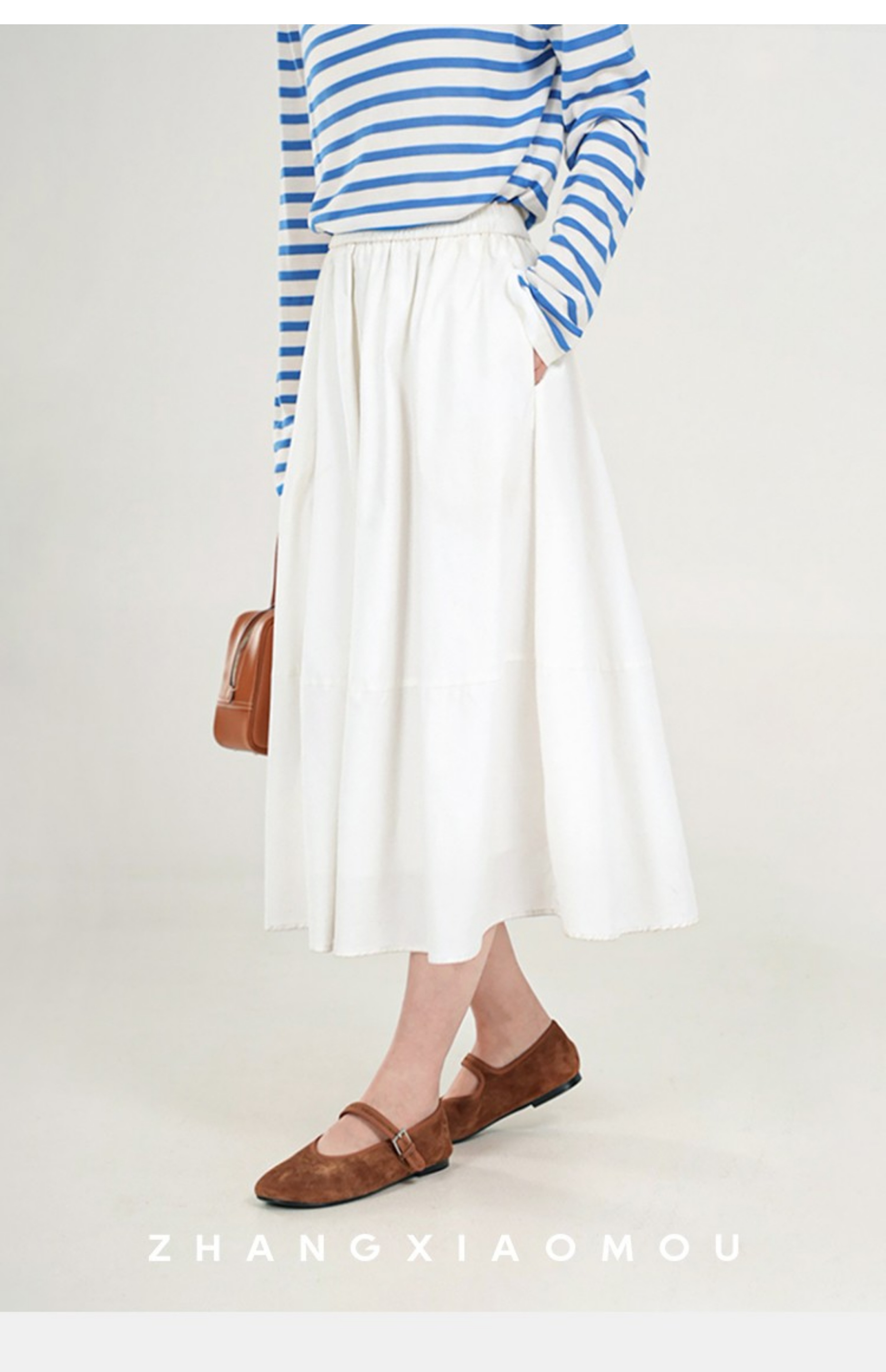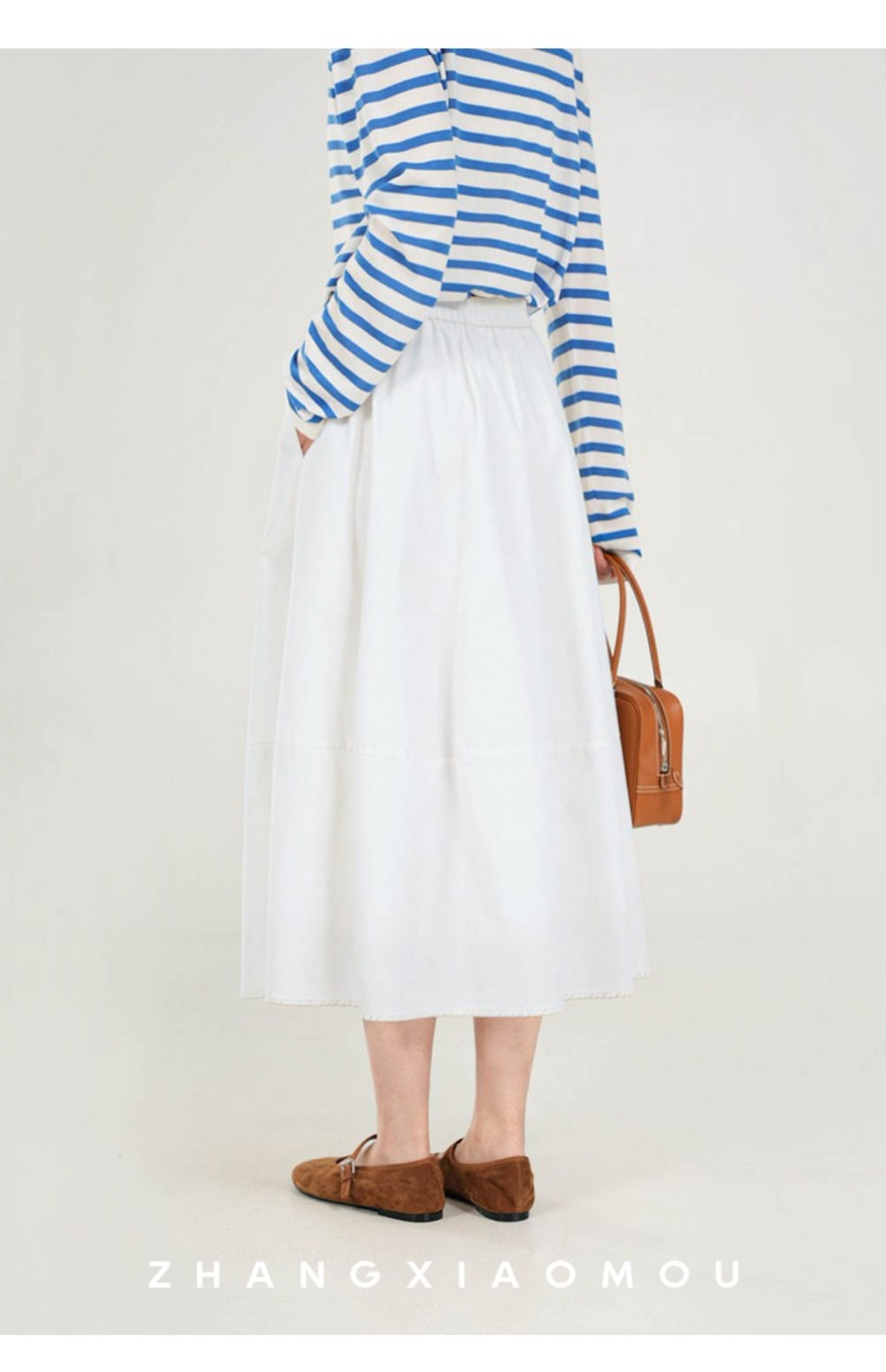 張小某【月光白】a字半身裙女秋季新款高腰中長款大擺繖裙子Q8324